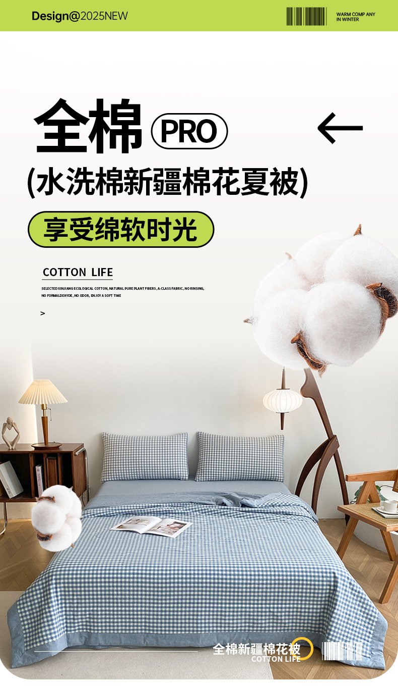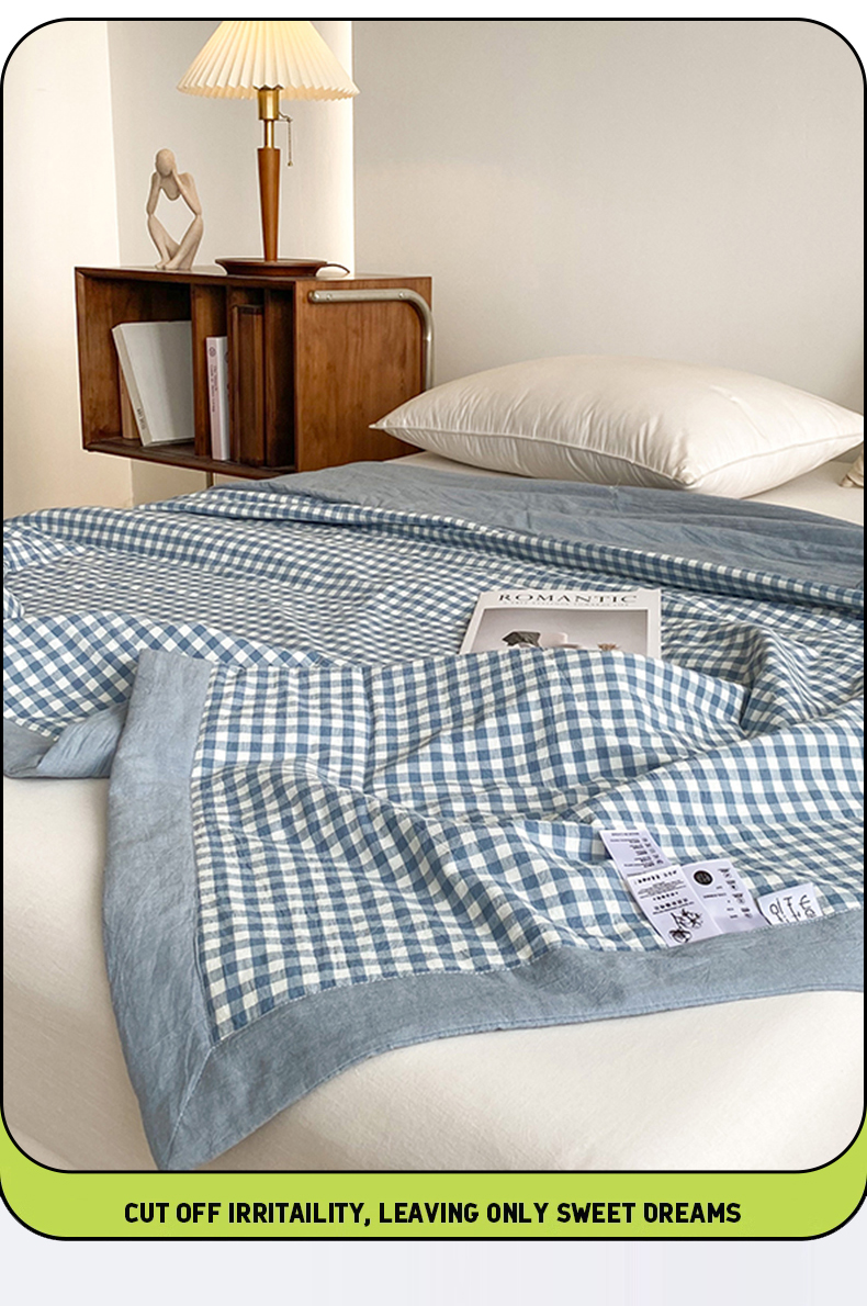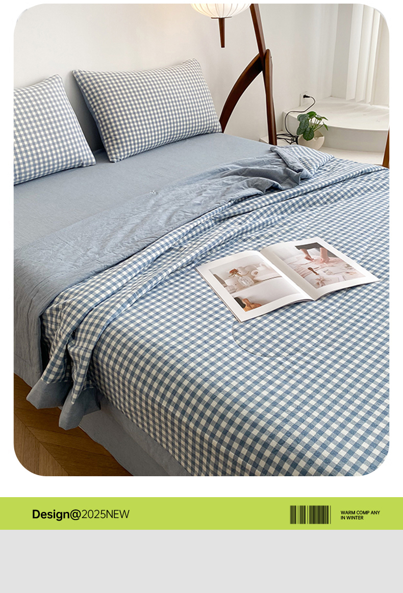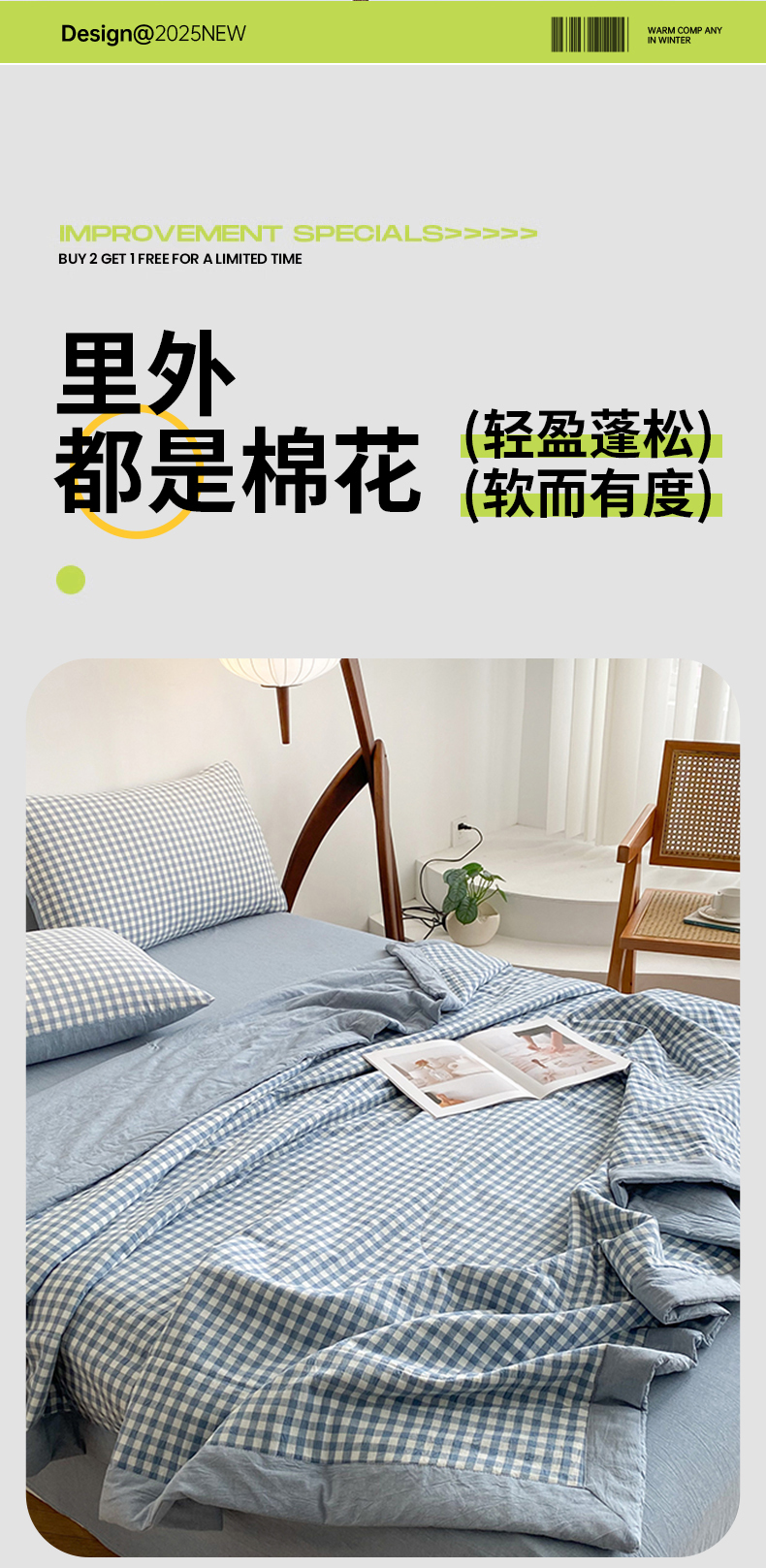 青螺家纺 2025全棉水洗棉格子双面色织新疆棉花被AB版夏凉空调被 小兰格