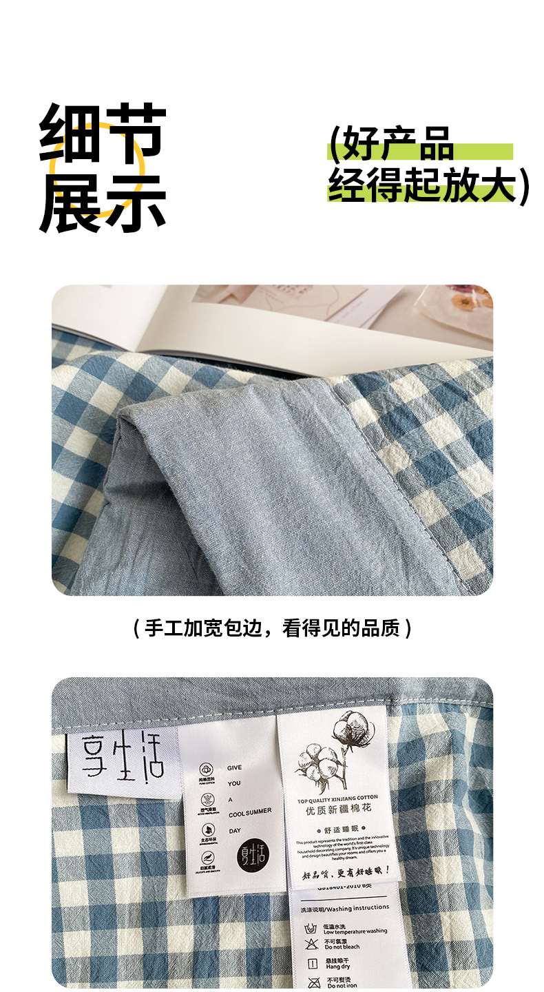 商品名称:青螺家纺 2025全棉水洗棉格子双面色织新疆棉花被AB版夏凉空调被 小兰格