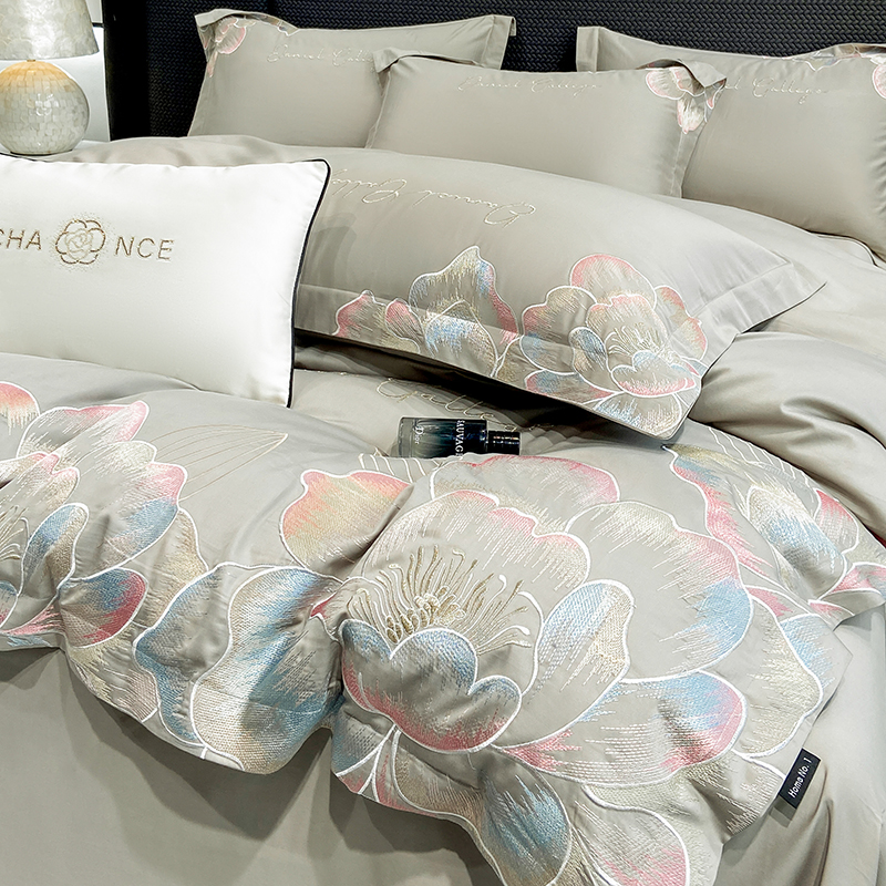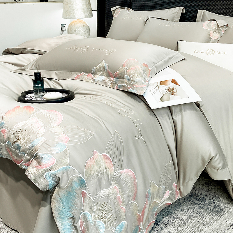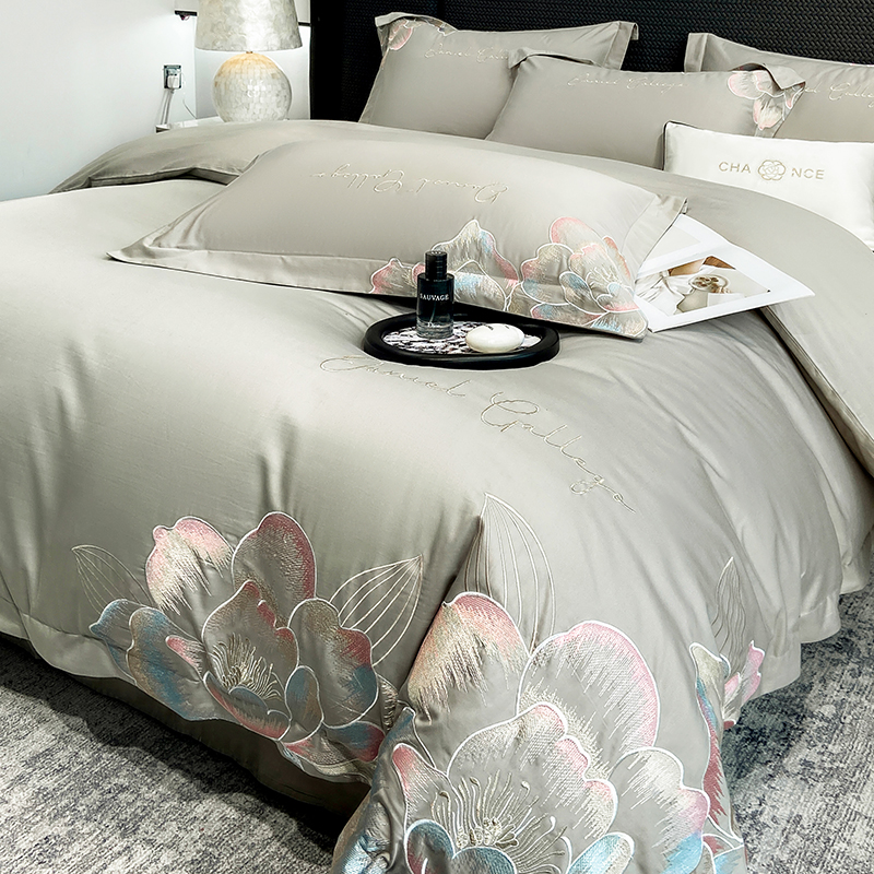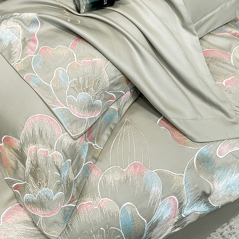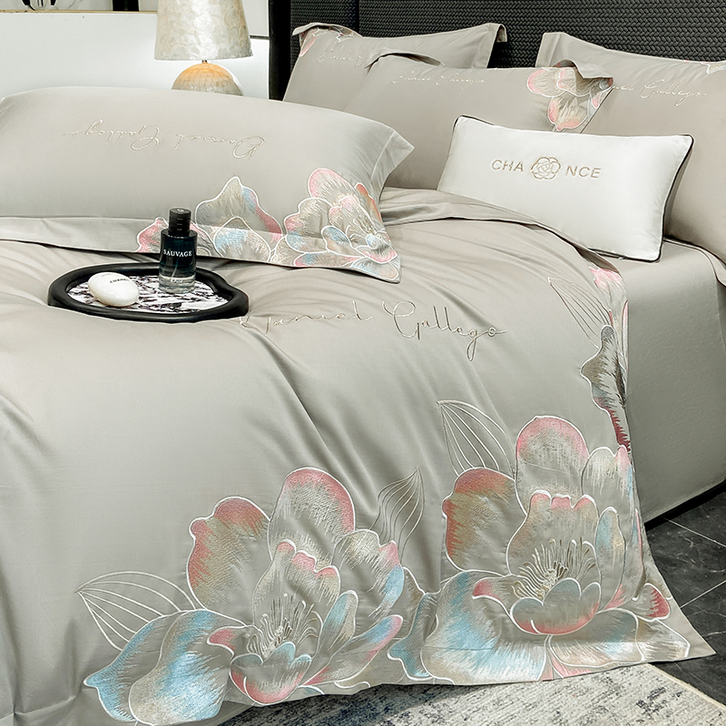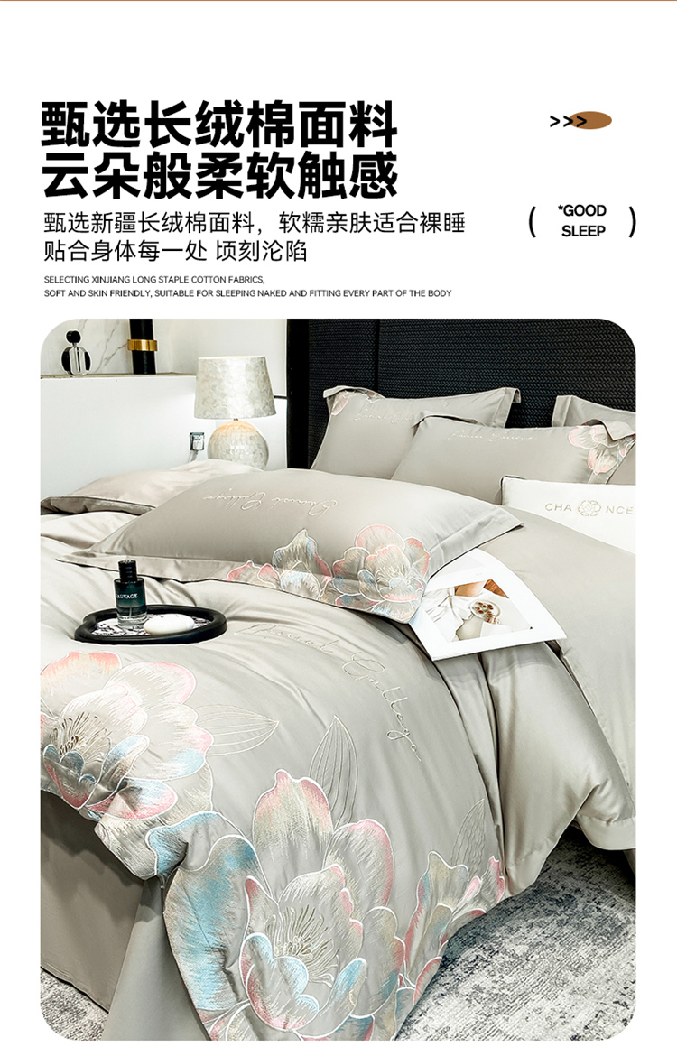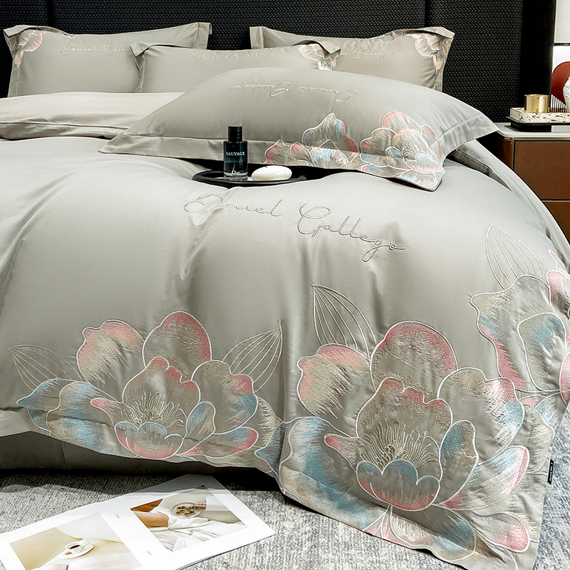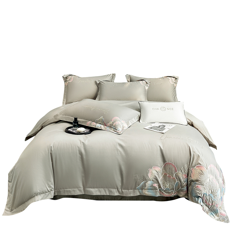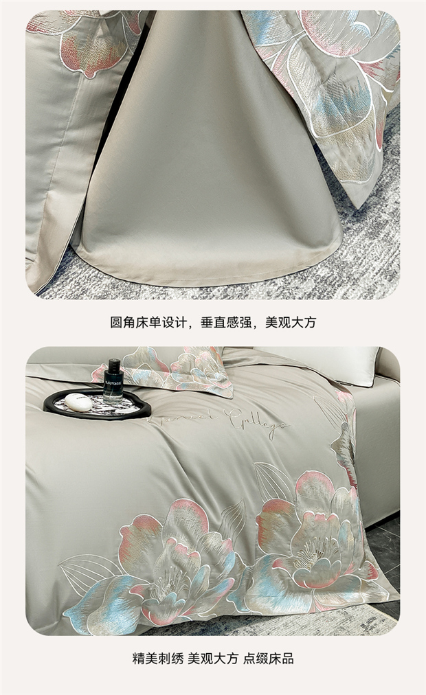 当前位置: 91家纺网 > 商品网购 > 床品套件 > 四件套 > 全棉普通四件套 > 家居1号家纺 2025新款花韵长绒棉四件套 花韵-淡雅灰