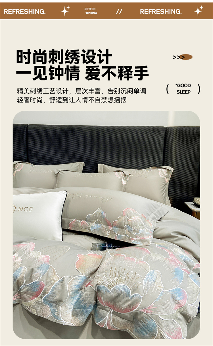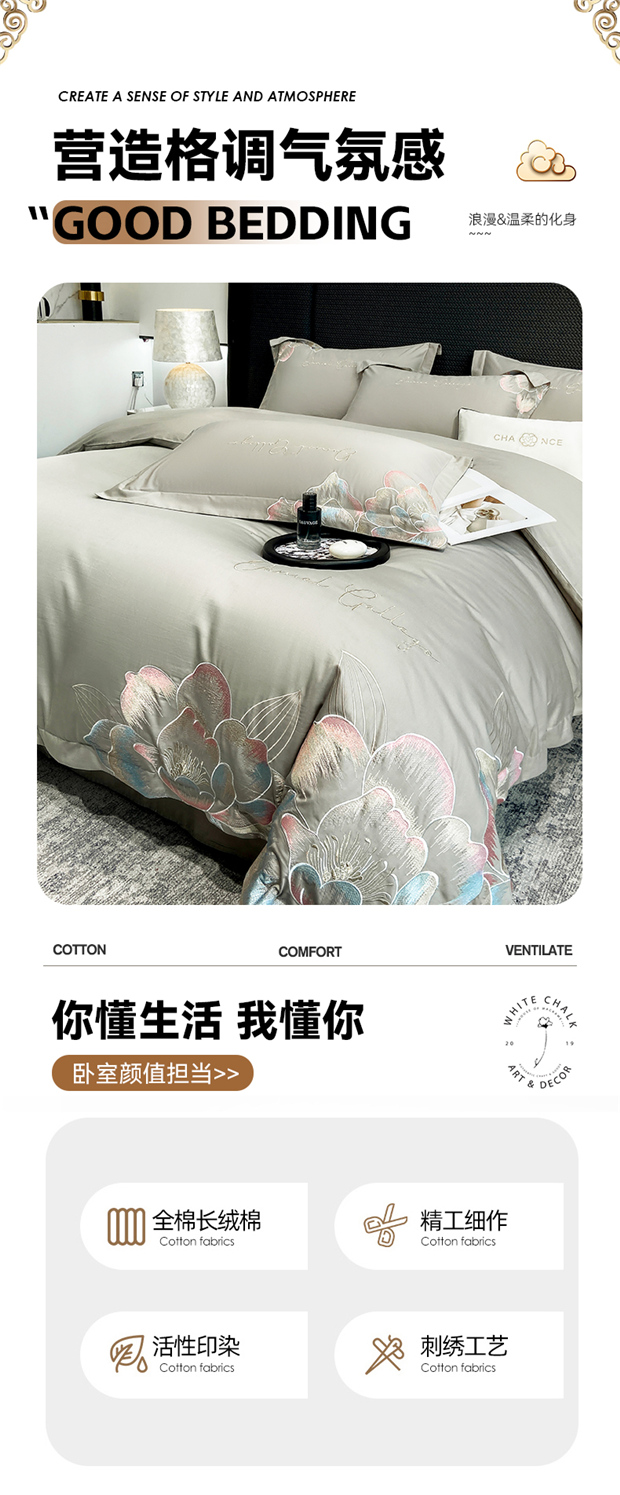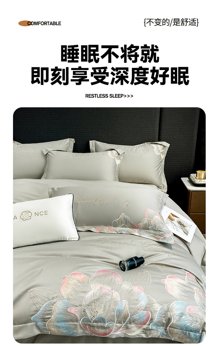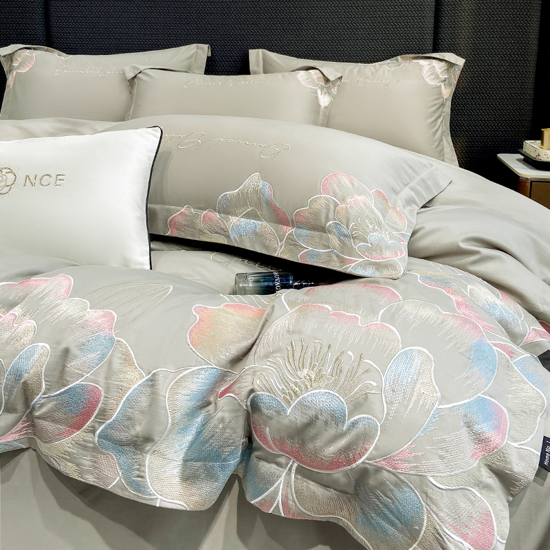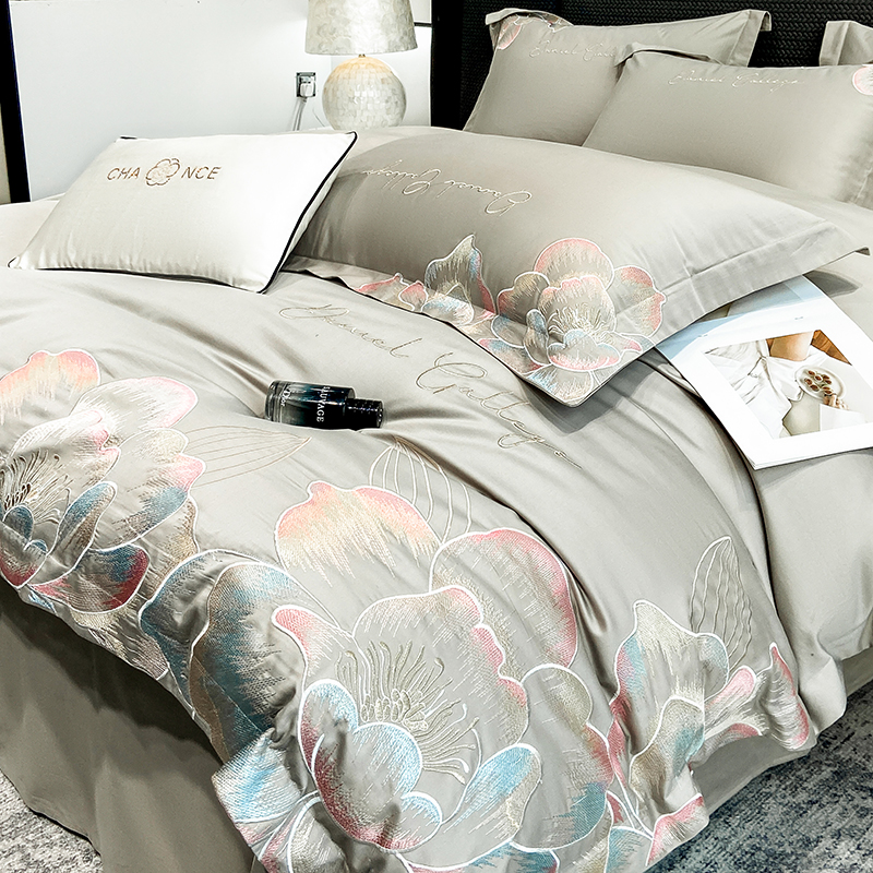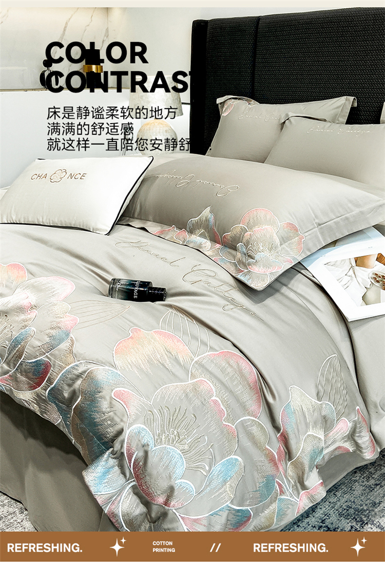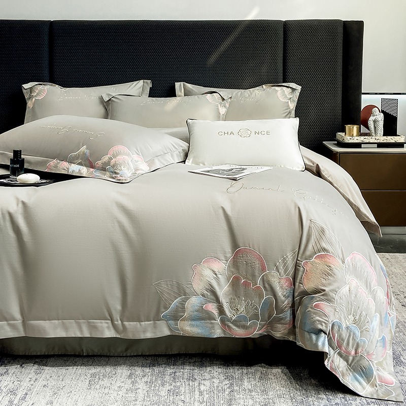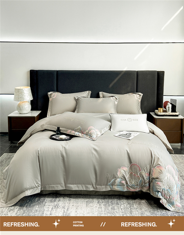 当前位置: 91家纺网 > 商品网购 > 床品套件 > 四件套 > 全棉普通四件套 > 家居1号家纺 2025新款花韵长绒棉四件套 花韵-淡雅灰