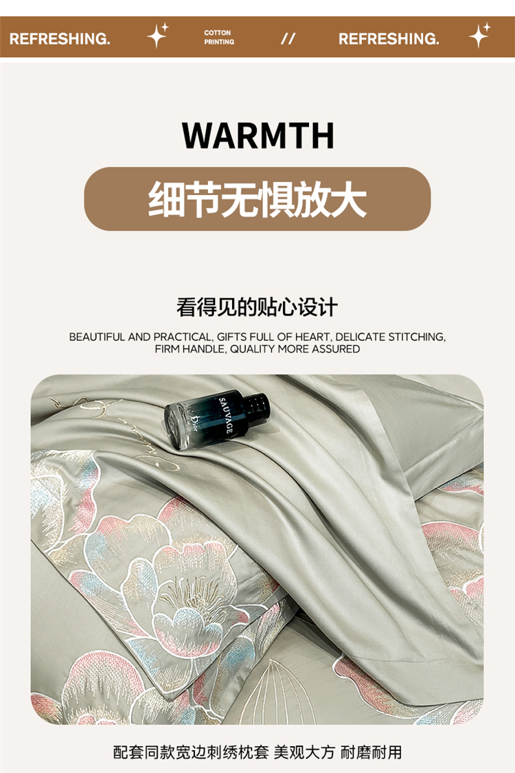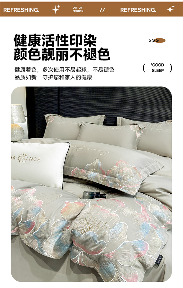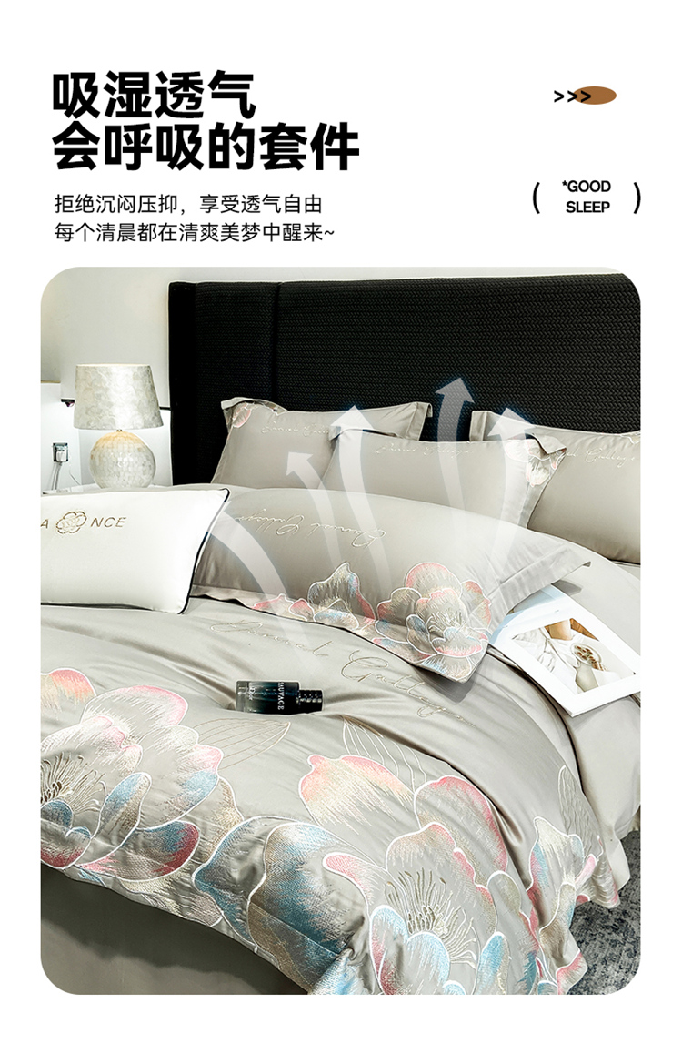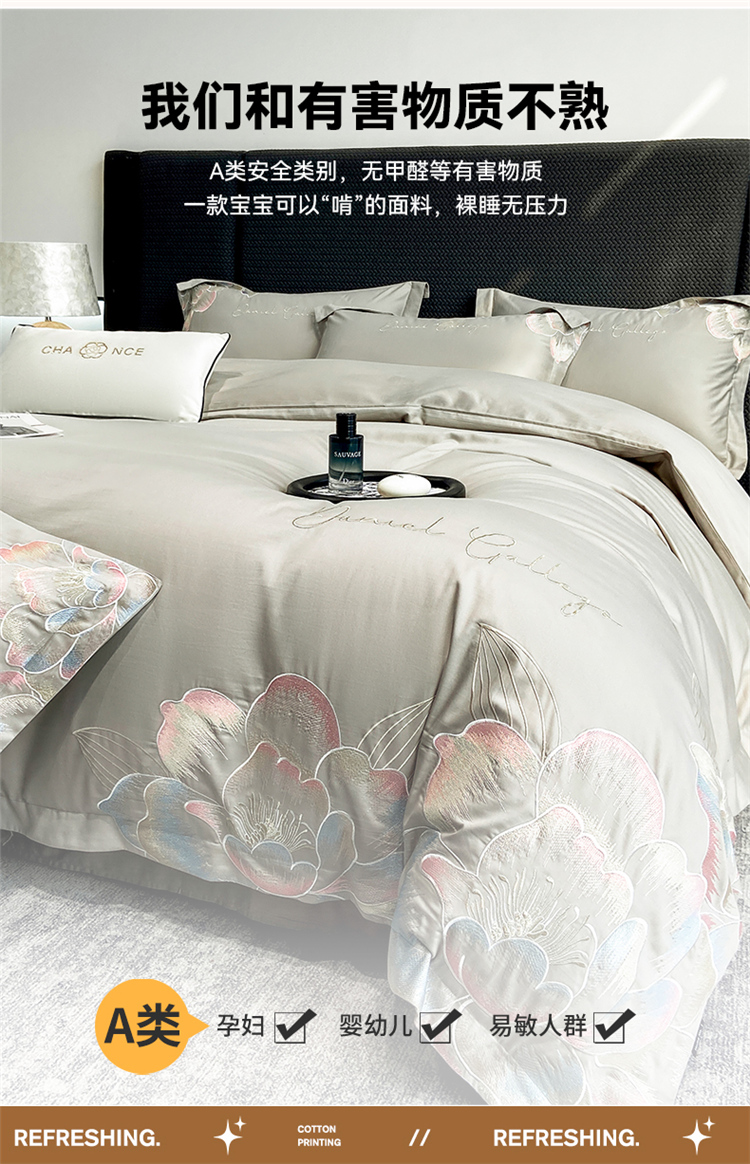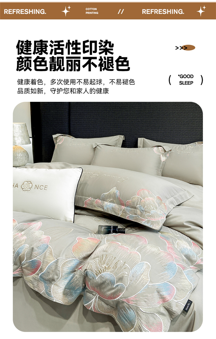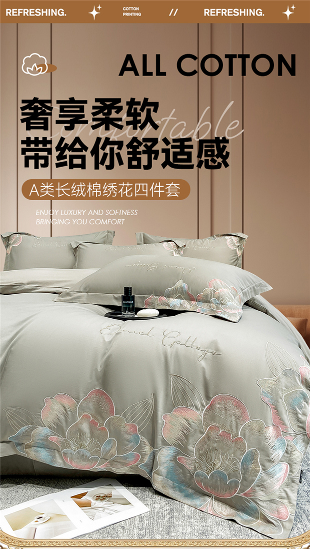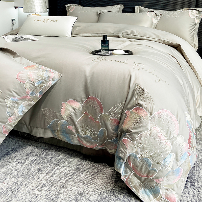 当前位置: 91家纺网 > 商品网购 > 床品套件 > 四件套 > 全棉普通四件套 > 家居1号家纺 2025新款花韵长绒棉四件套 花韵-淡雅灰