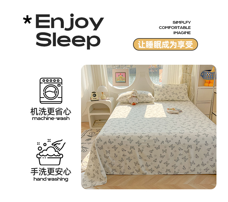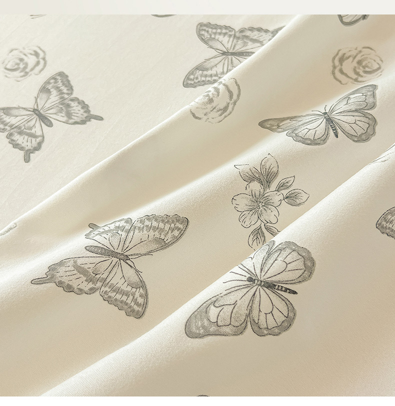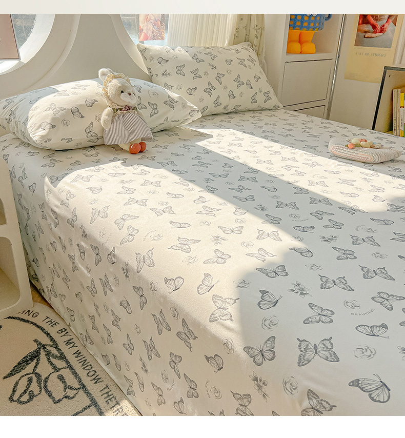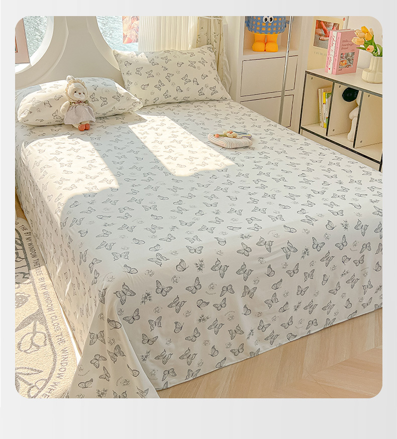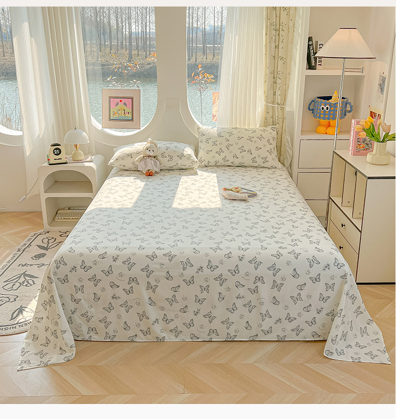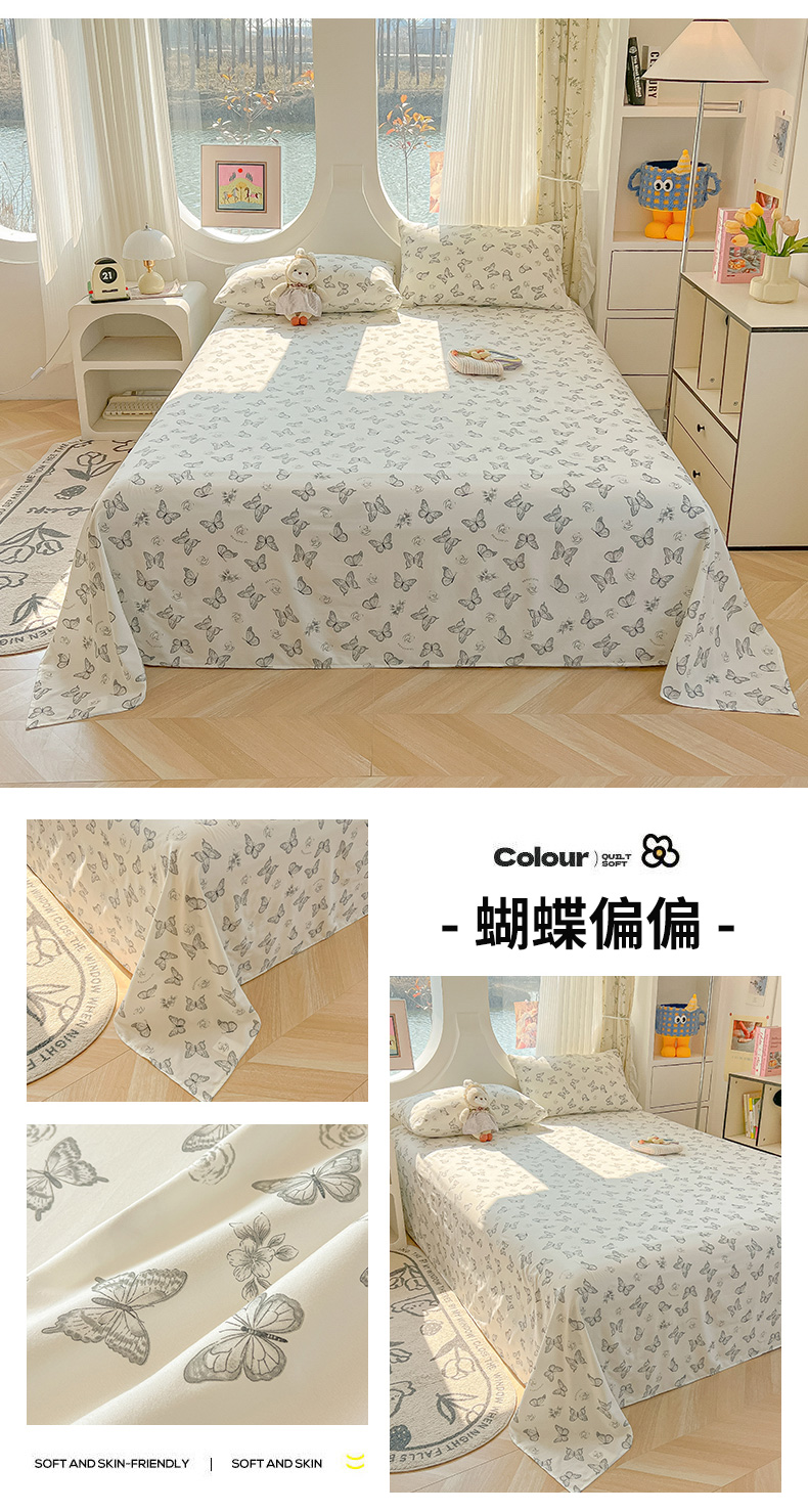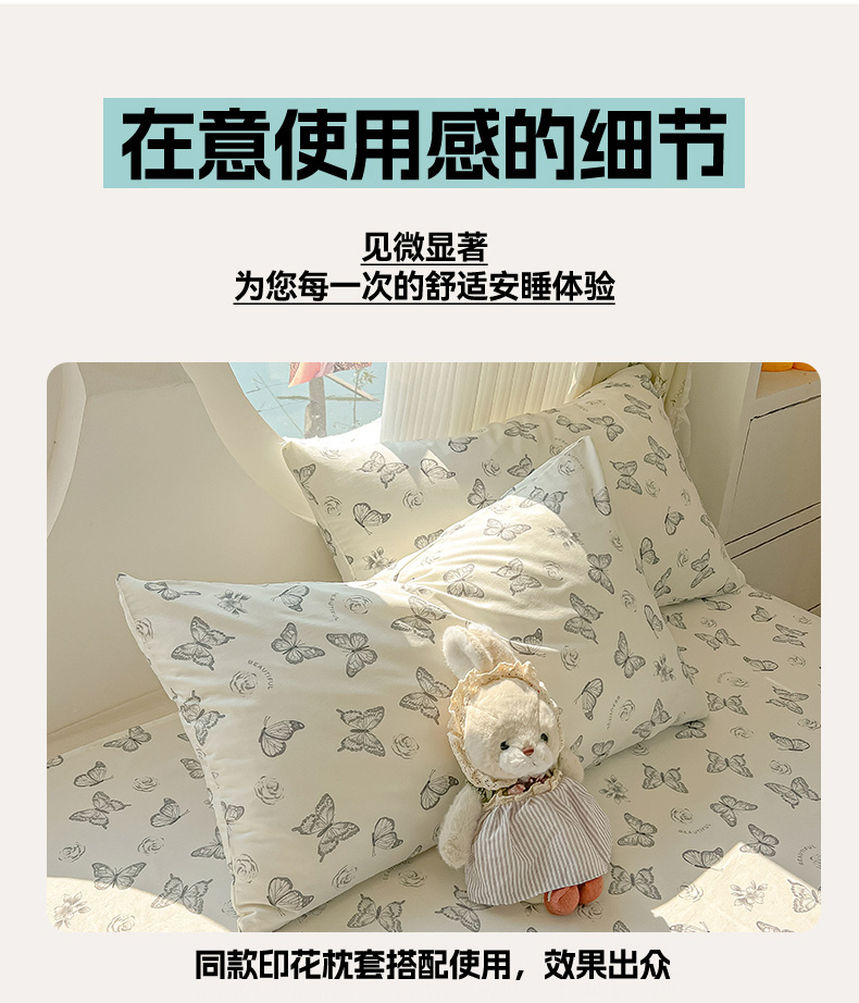 眠帛家居 2025新款A类水洗皱皱纱印花床单 蝴蝶偏偏