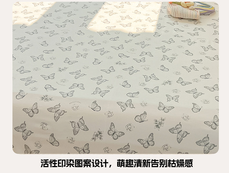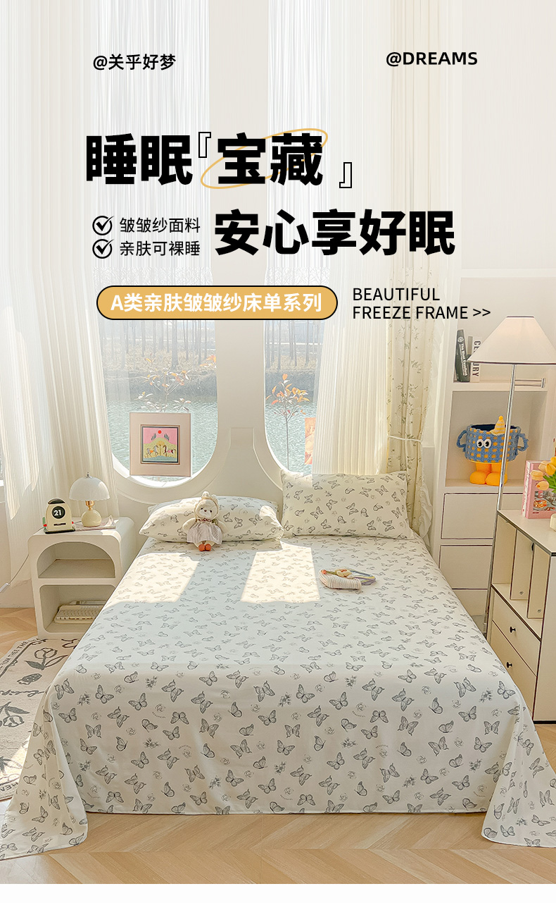 • 91家纺网 家纺一手货源 找家纺 眠帛家居 2025新款A类水洗皱皱纱印花床单 蝴蝶偏偏