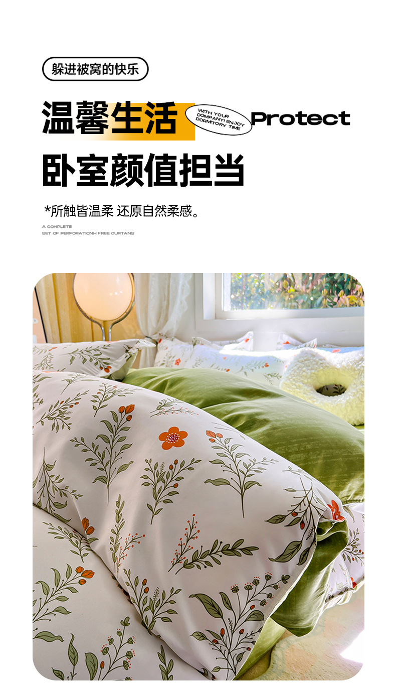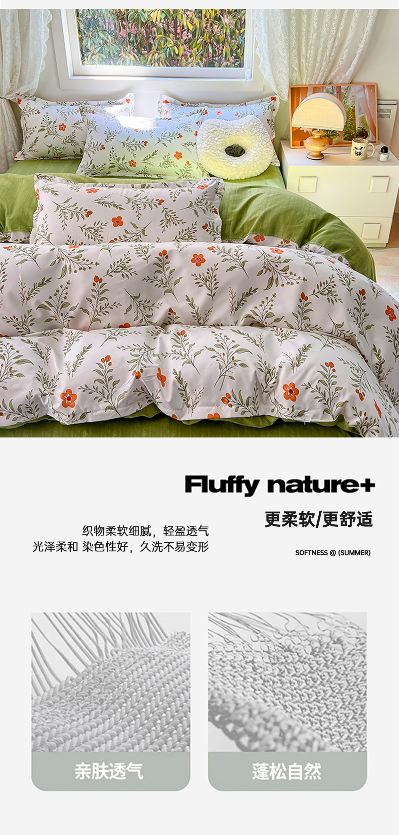 (总)曼璐家纺 2025新款小清新芦荟棉印花四件套,朝花夕拾,初夏,可可西里,喵星人,叶雨,初夏