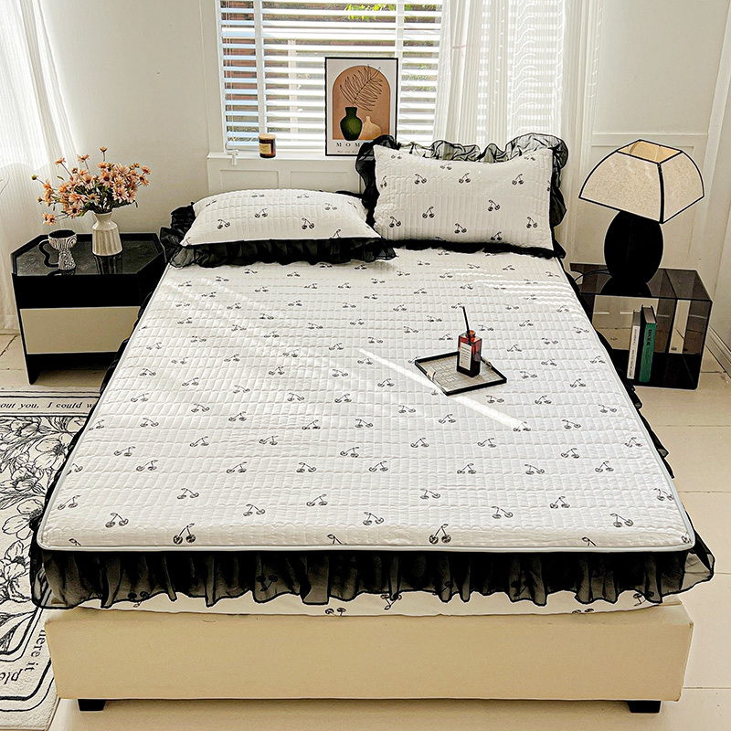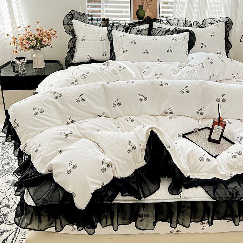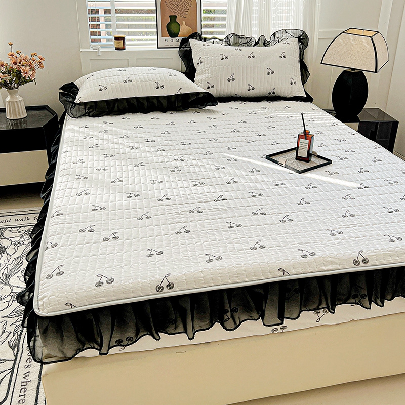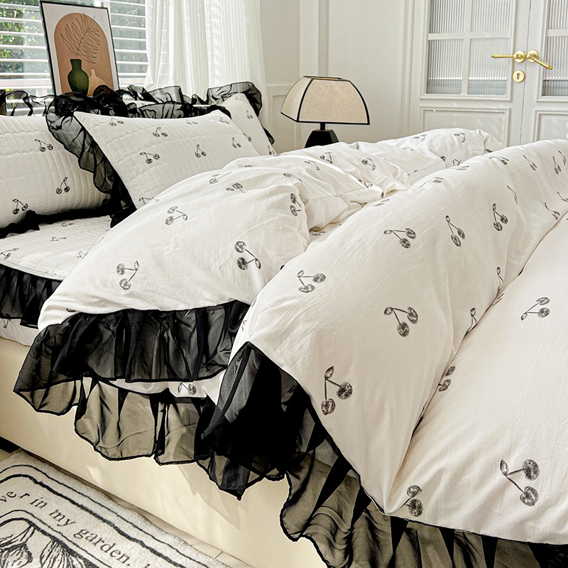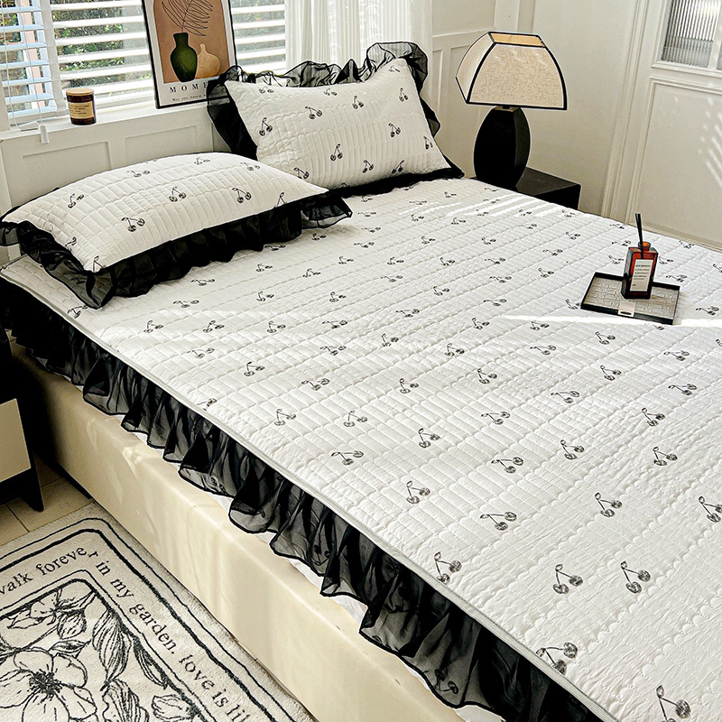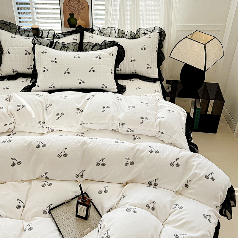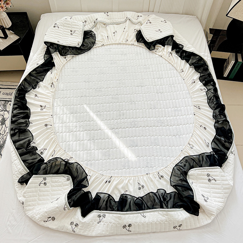 艾橙家纺2025新款法式赫本风水洗棉印花雪纺花边单床笠 美味樱桃