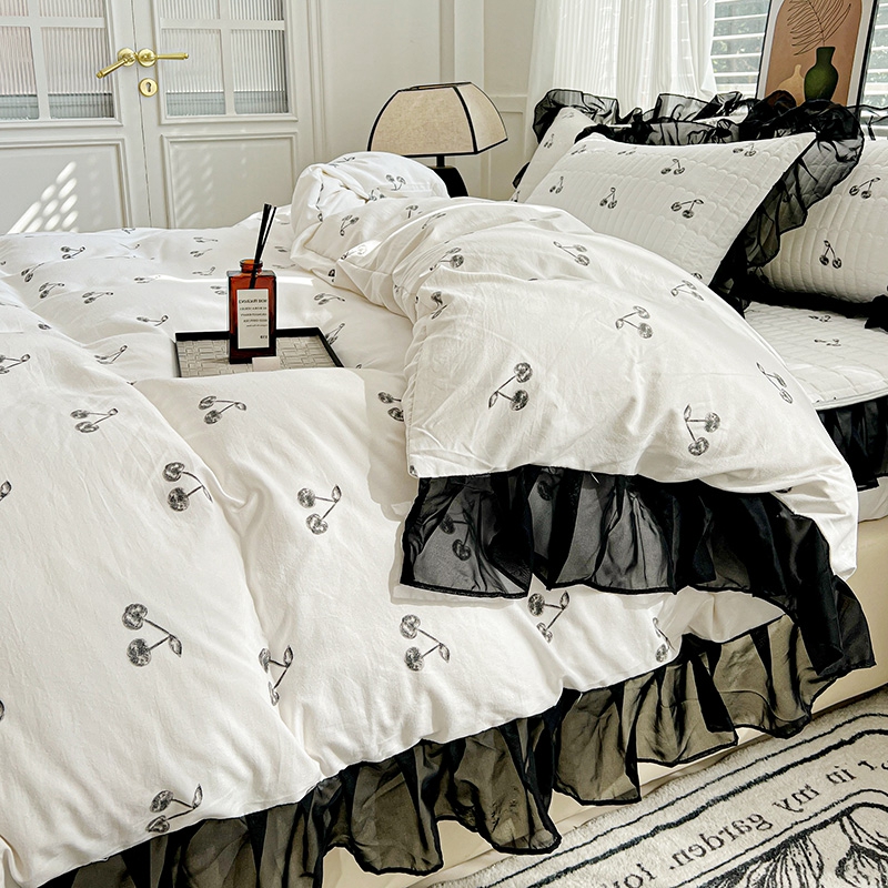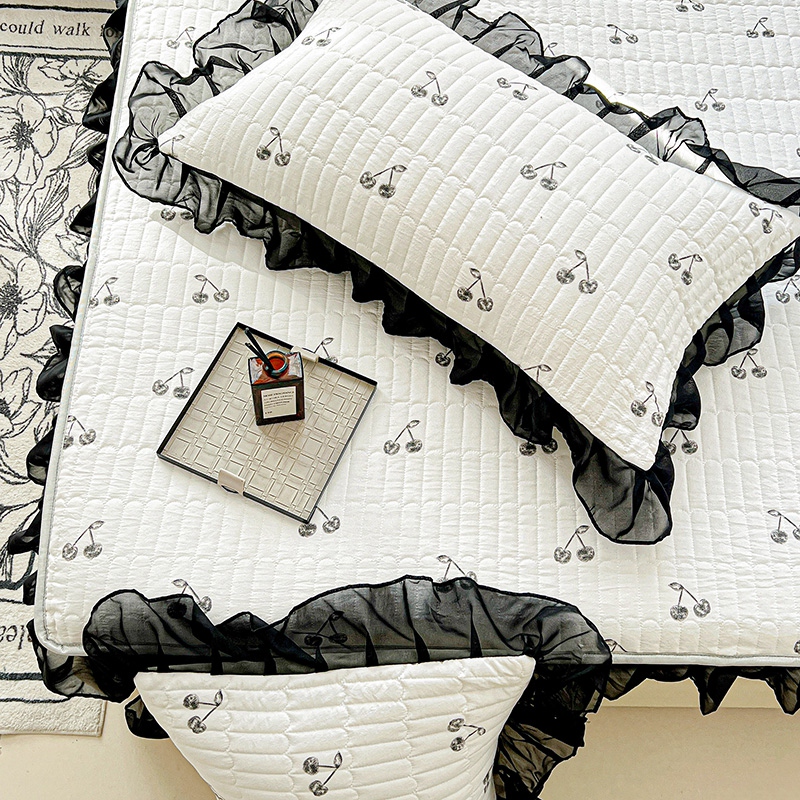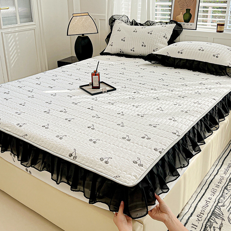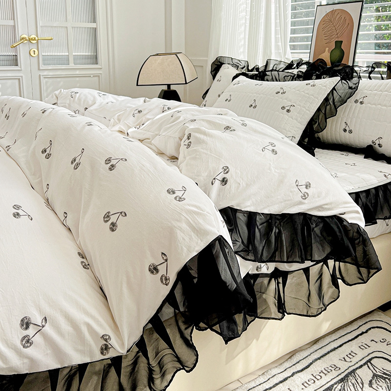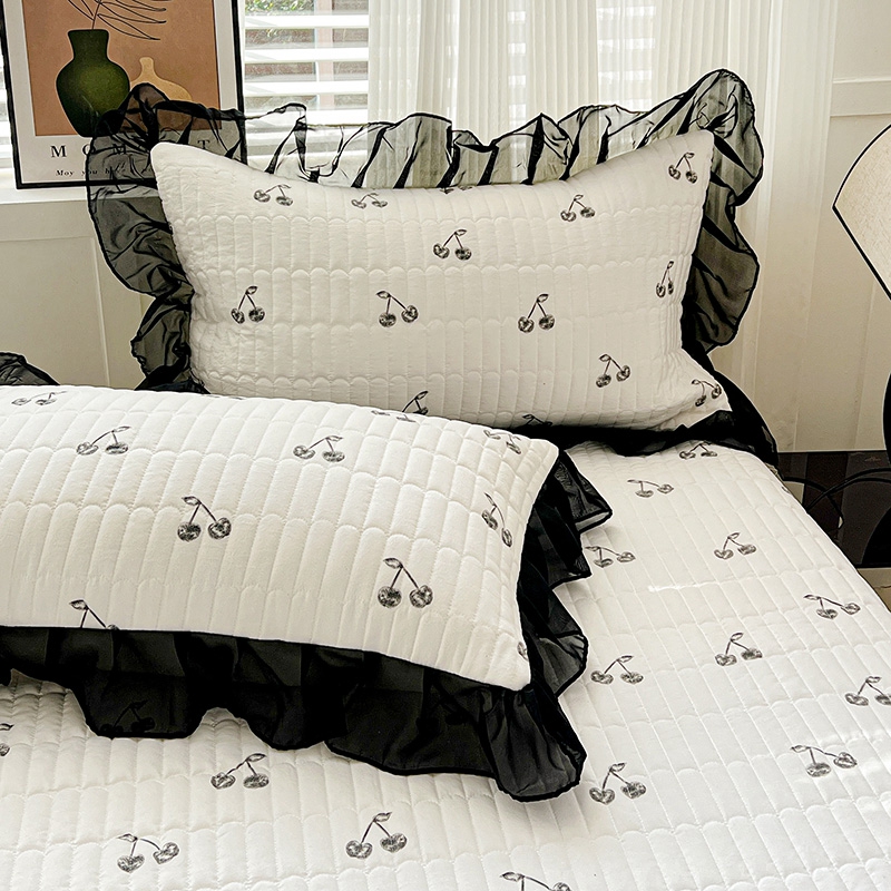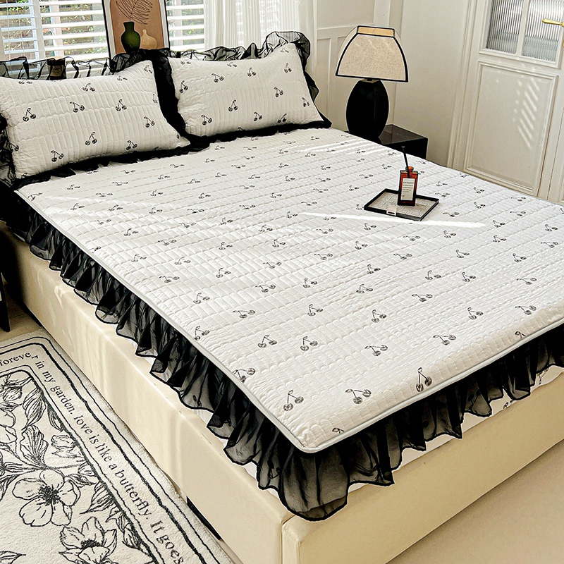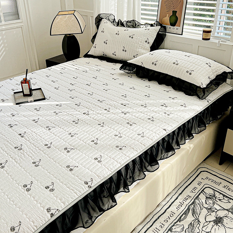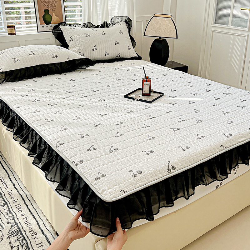 艾橙家纺2025新款法式赫本风水洗棉印花雪纺花边单床笠 美味樱桃