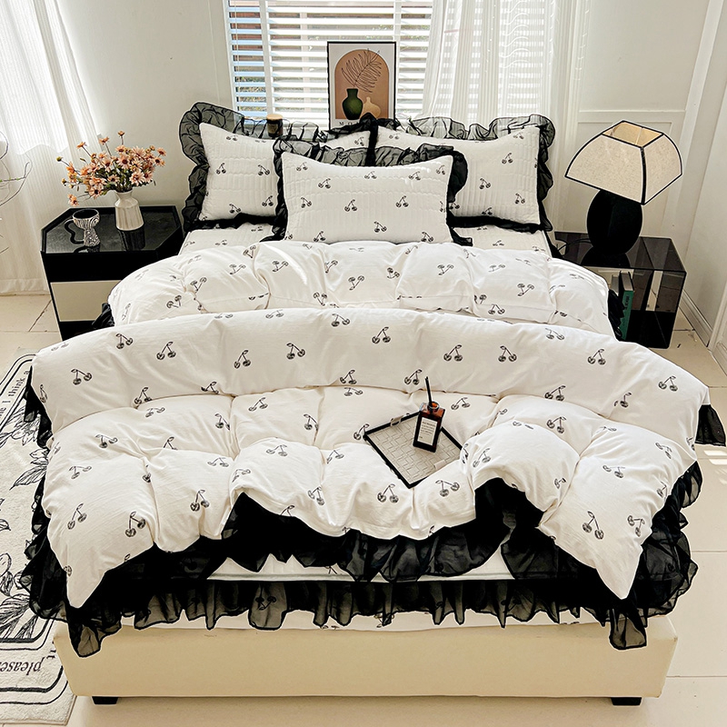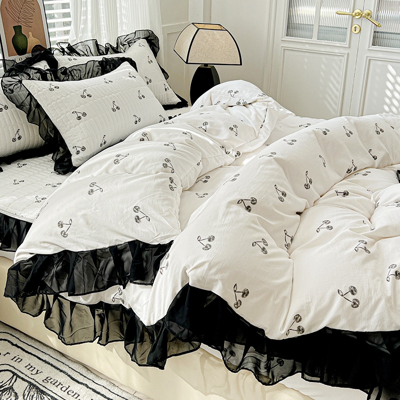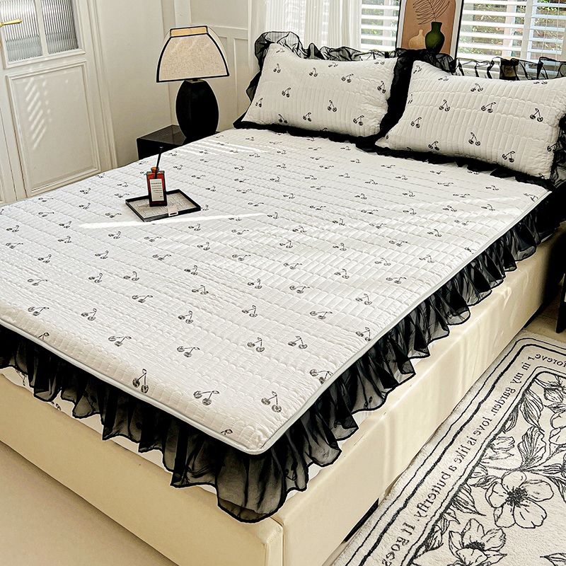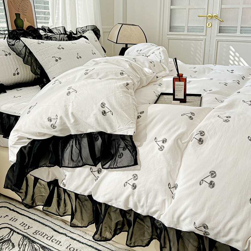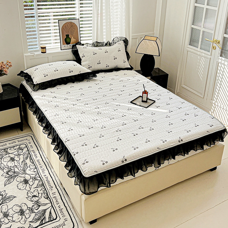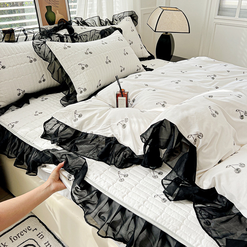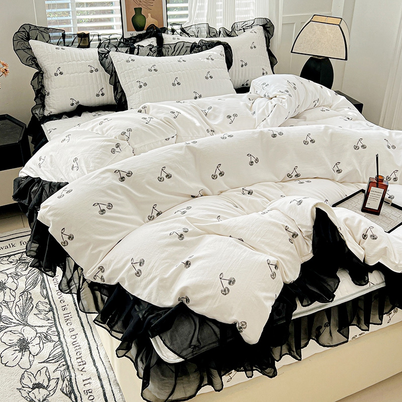 艾橙家纺2025新款法式赫本风水洗棉印花雪纺花边单床笠 美味樱桃