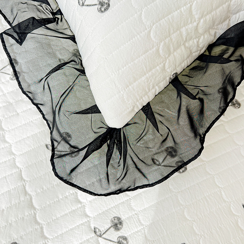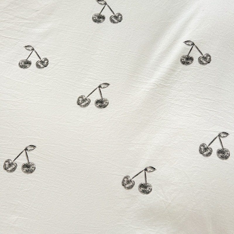 商品名称:艾橙家纺2025新款法式赫本风水洗棉印花雪纺花边单床笠 美味樱桃