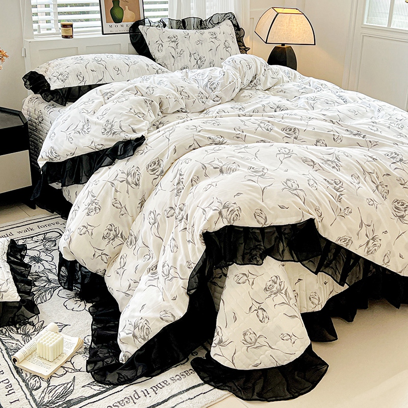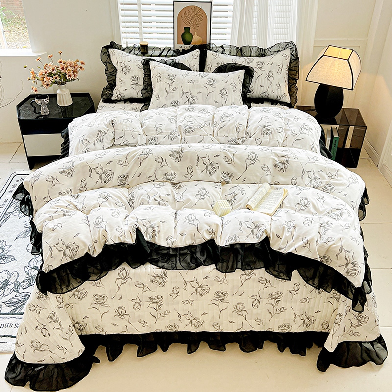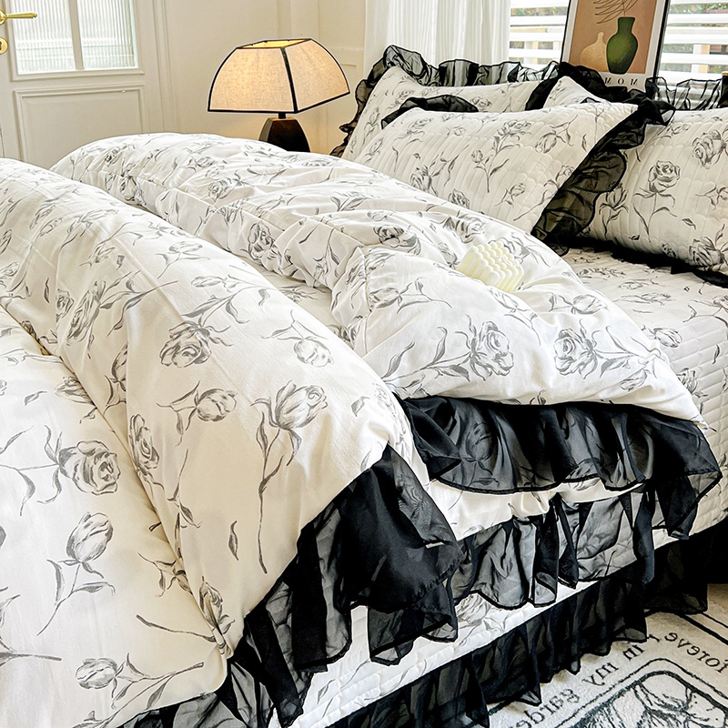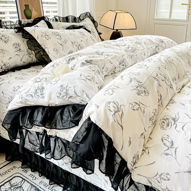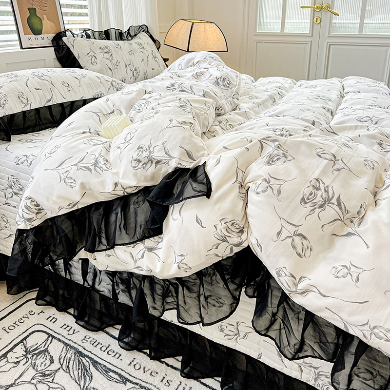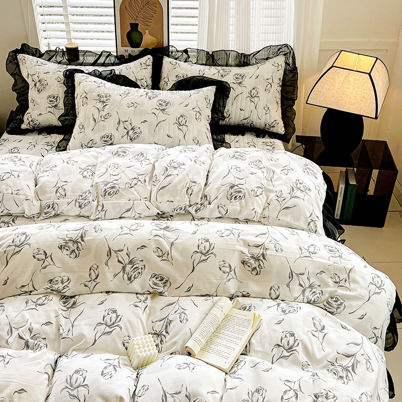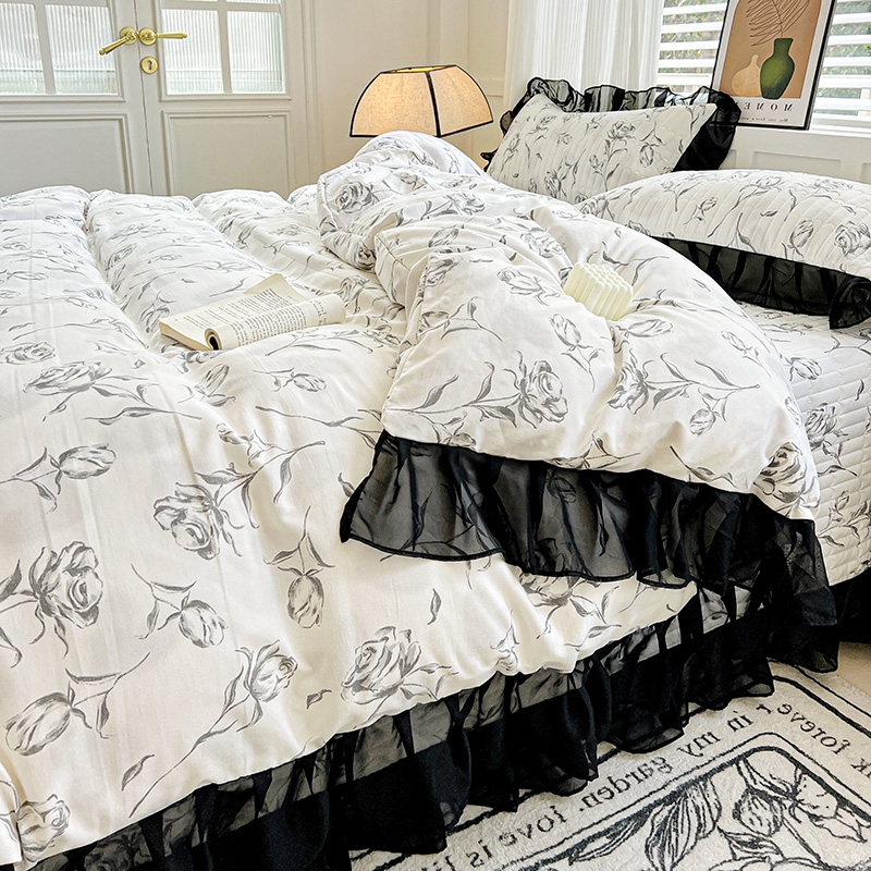 当前位置: 91家纺网 > 商品网购 > 床品套件 > 四件套 > 其它四件套 > 艾橙家纺2025新款法式赫本风水洗棉印花雪纺花边四件套 水墨玫瑰