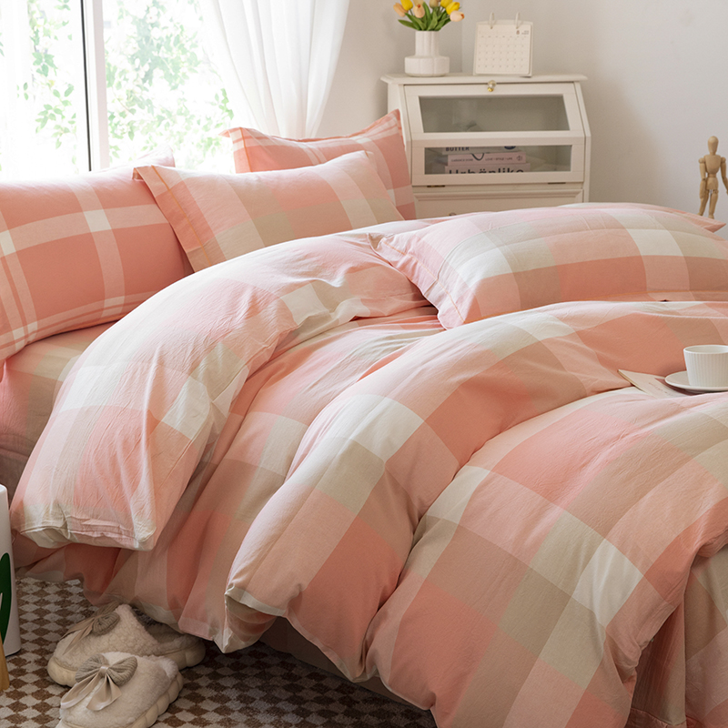 商品名称:木易家居 2025新款全棉色织水洗棉四件套 米夕玉大格
