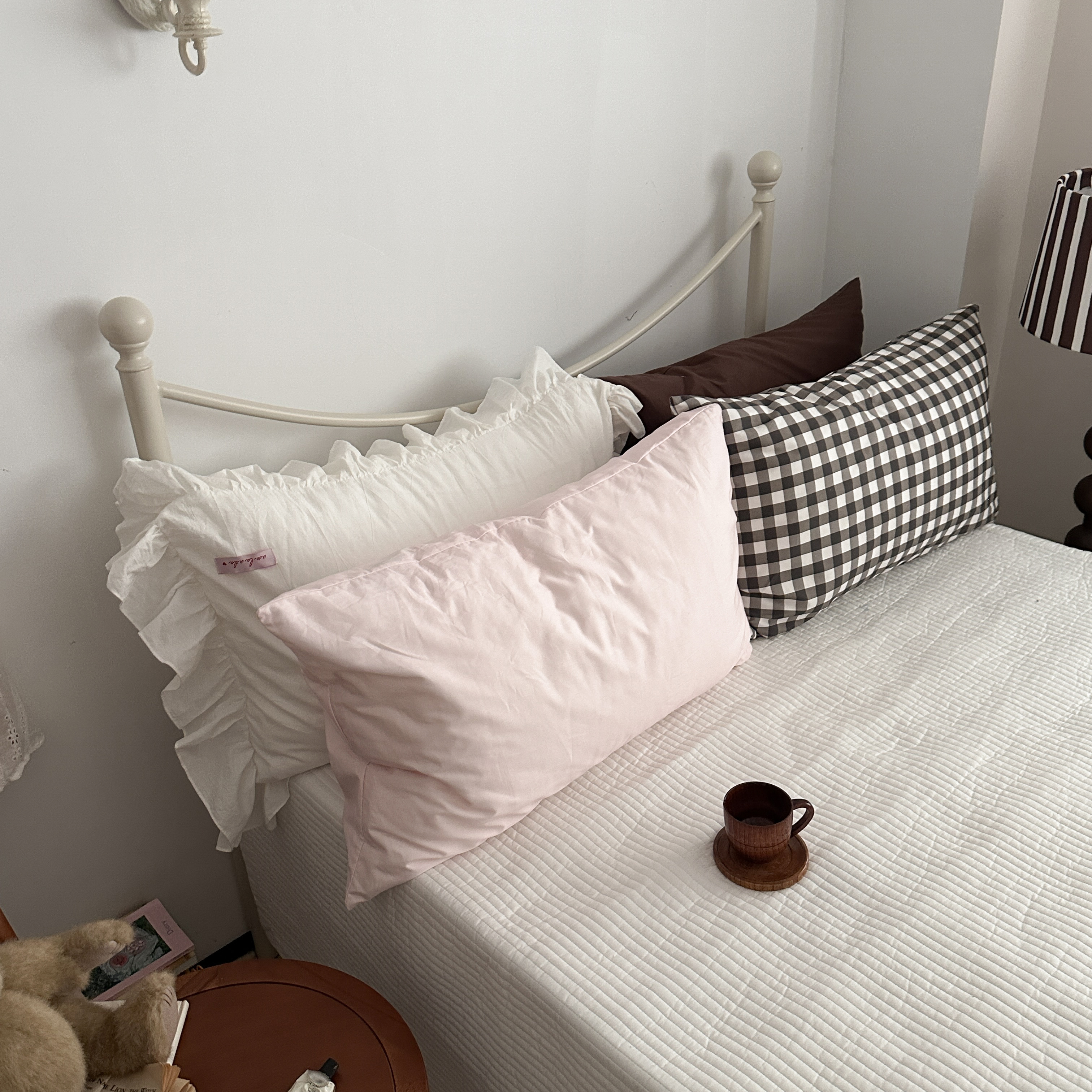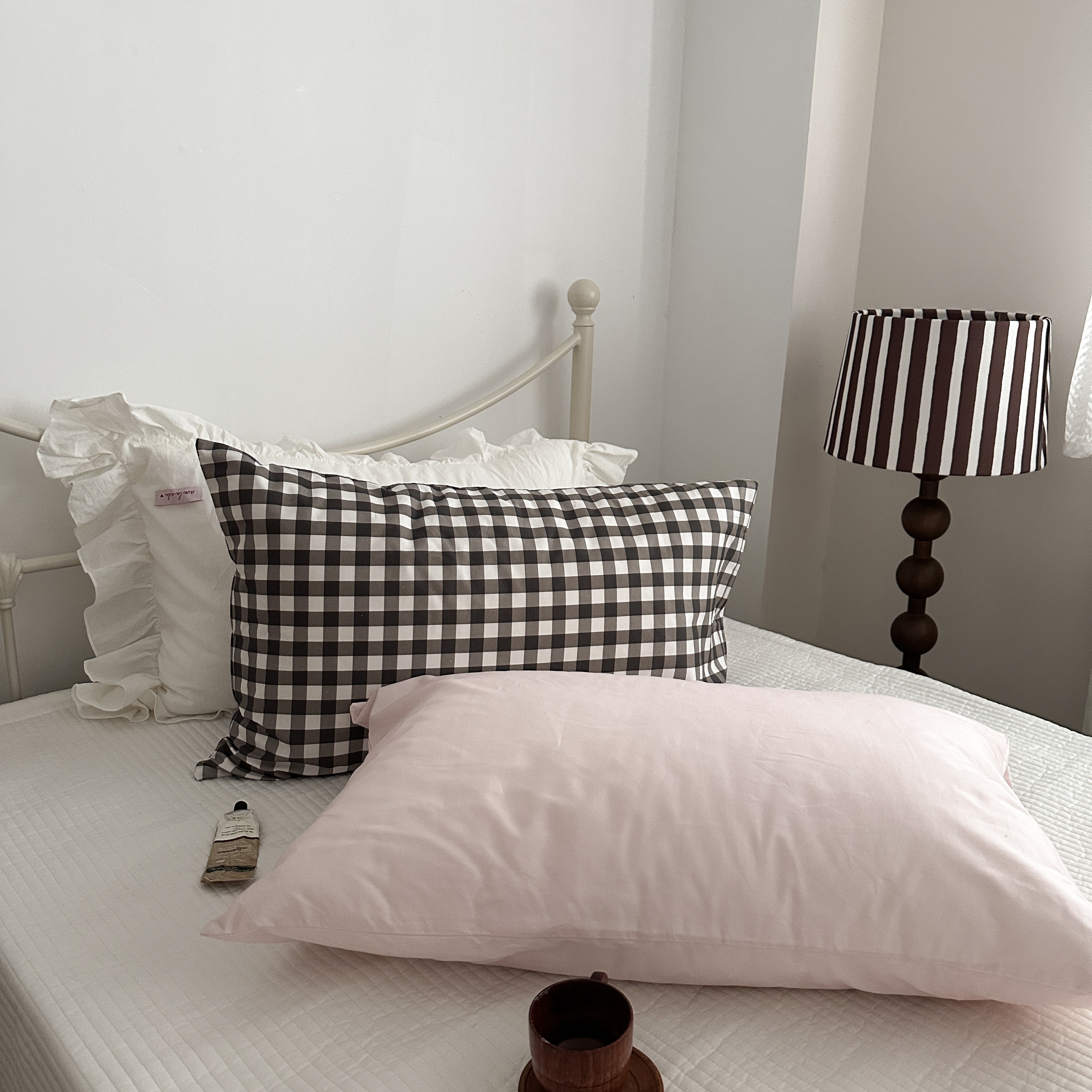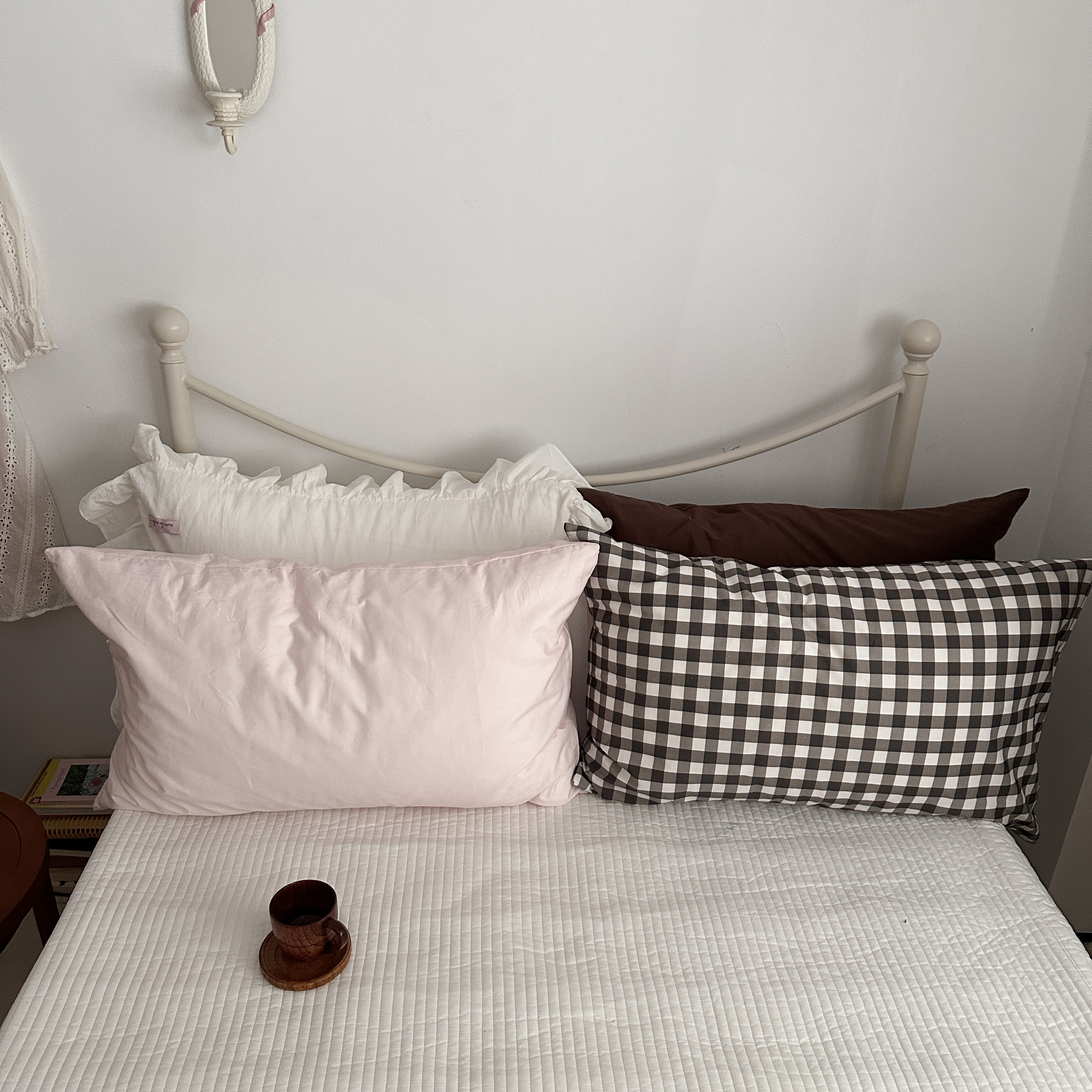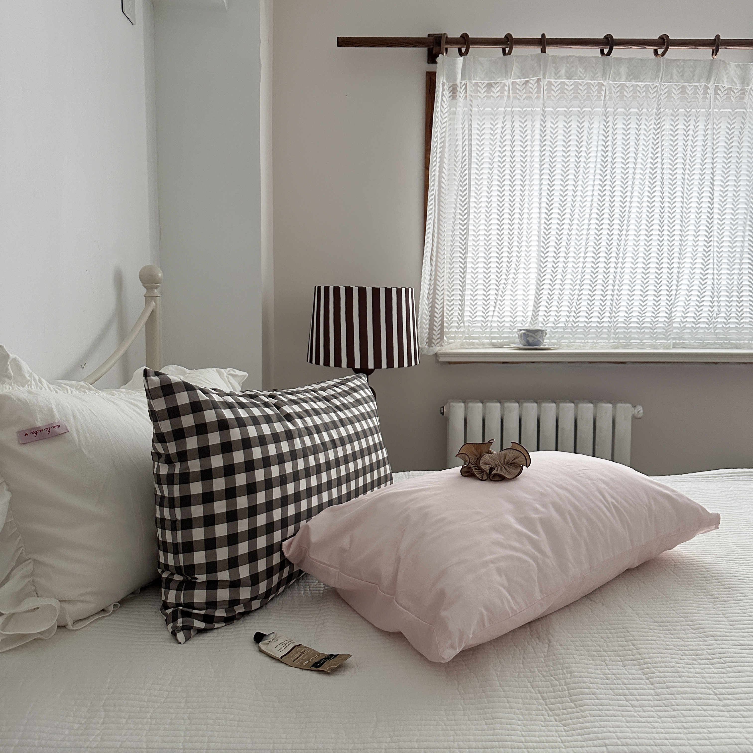 (总)恋恋三季 2024新款纯棉印花韩式田园枕套-格子铃兰,格子铃兰一只,香芋紫一只