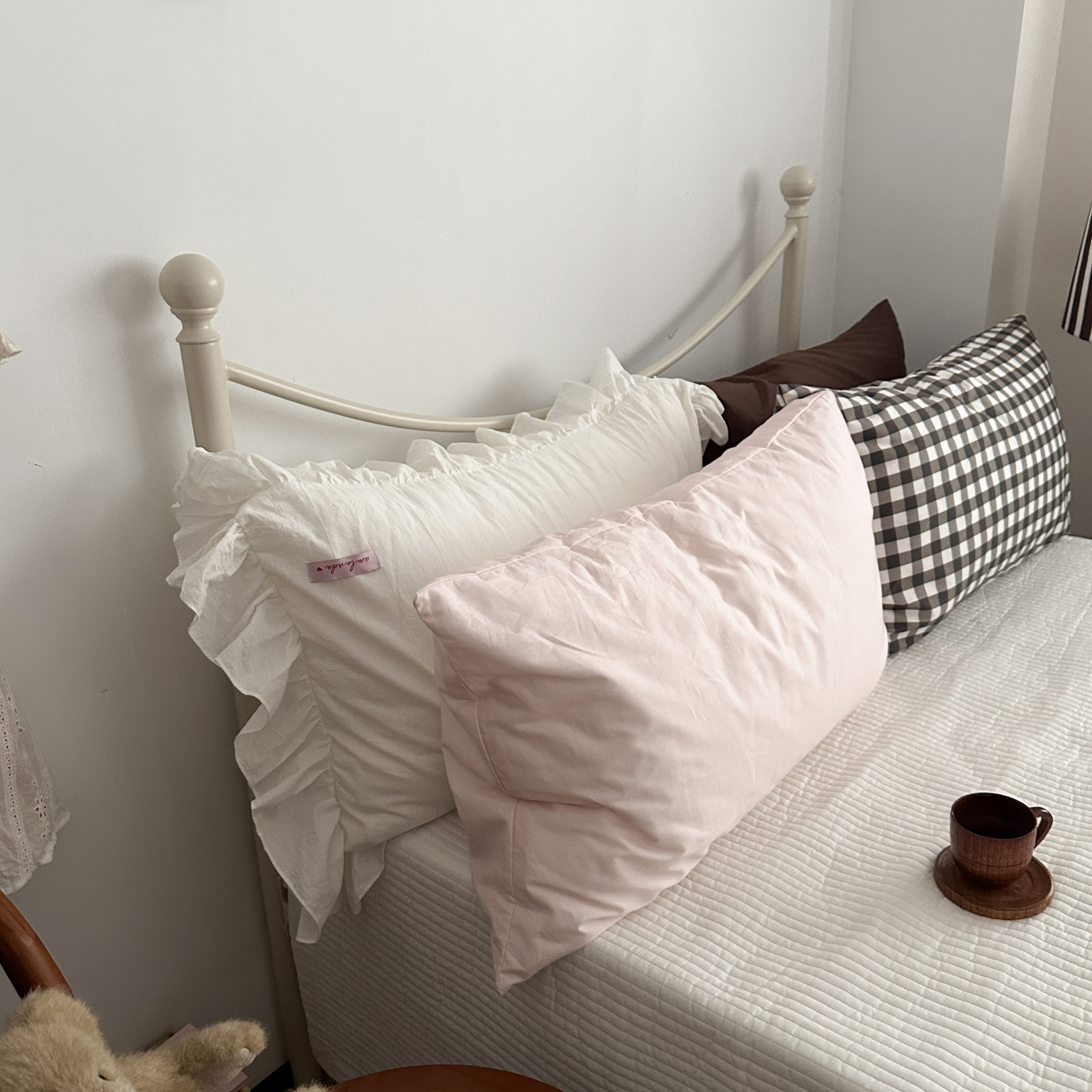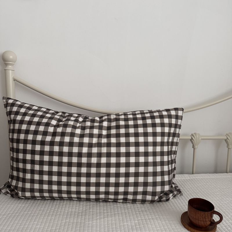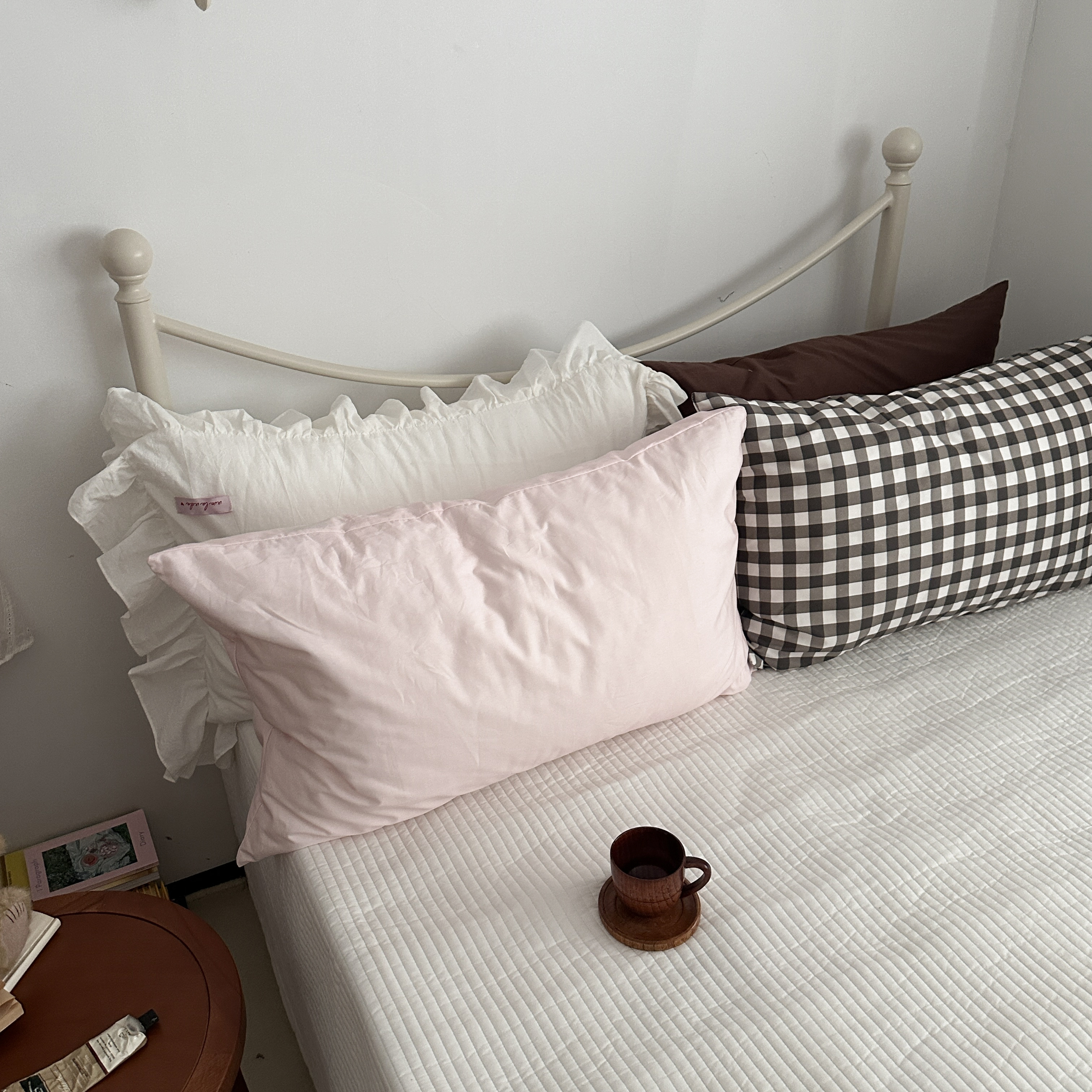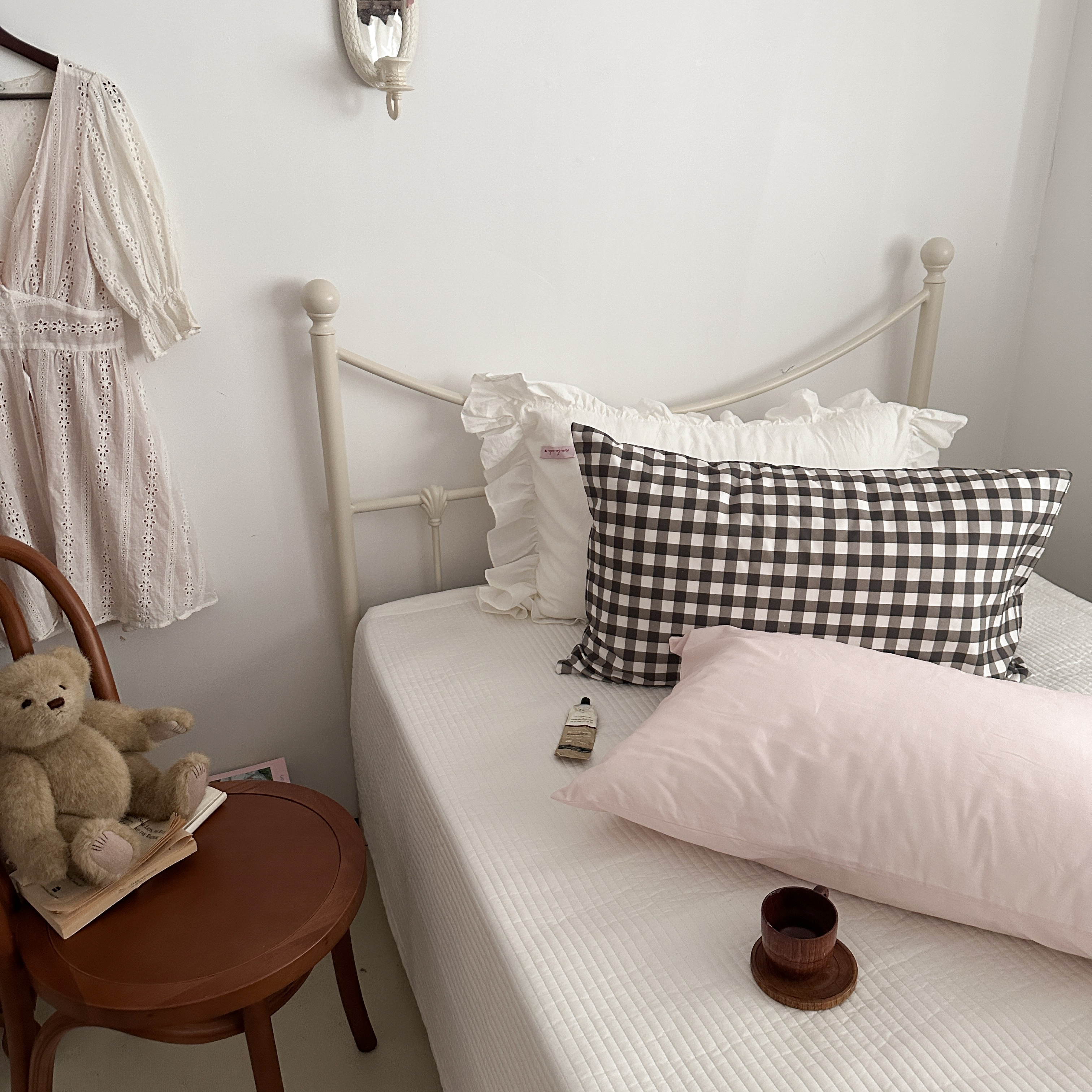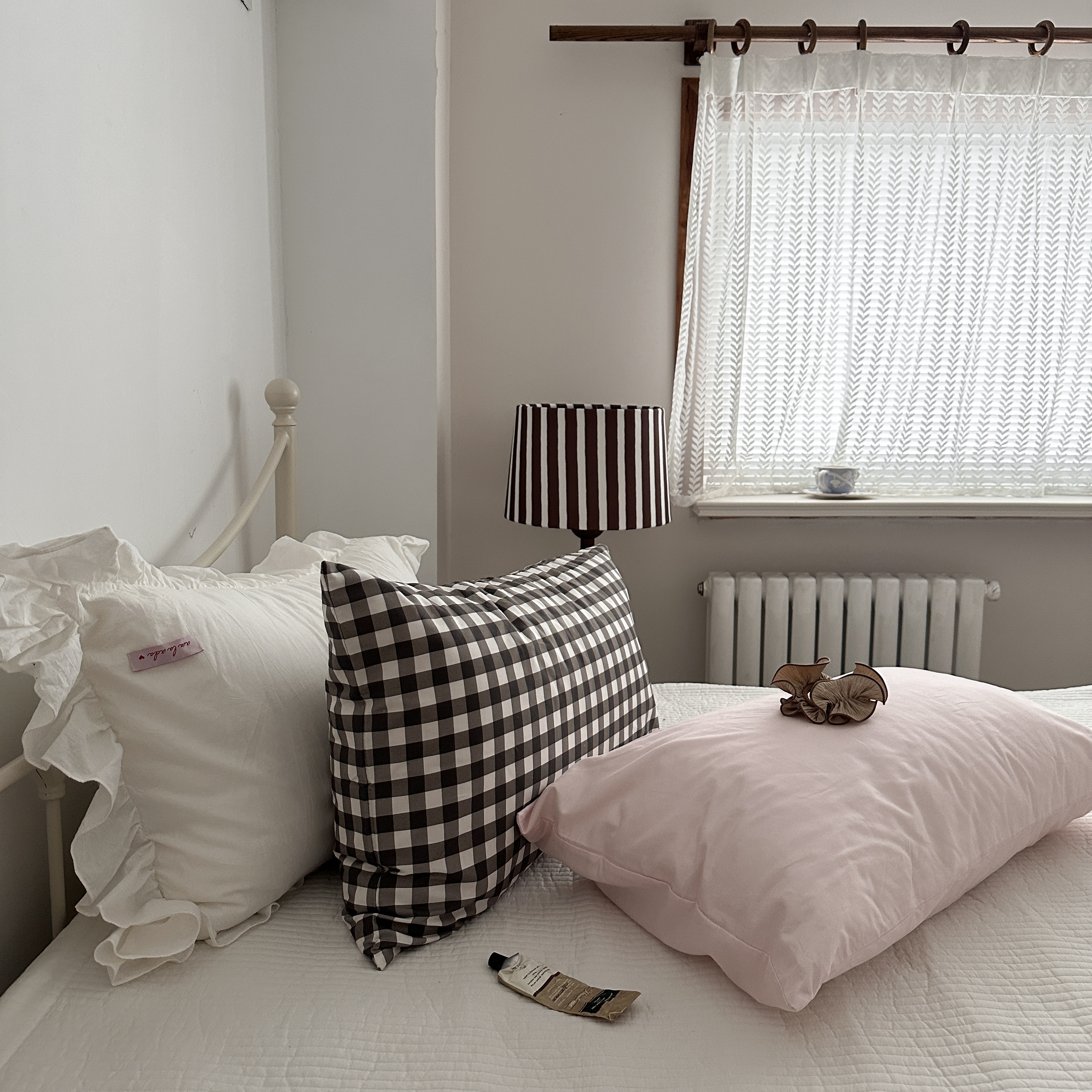 (总)恋恋三季 2024新款纯棉印花韩式田园枕套-格子铃兰,格子铃兰一只,香芋紫一只