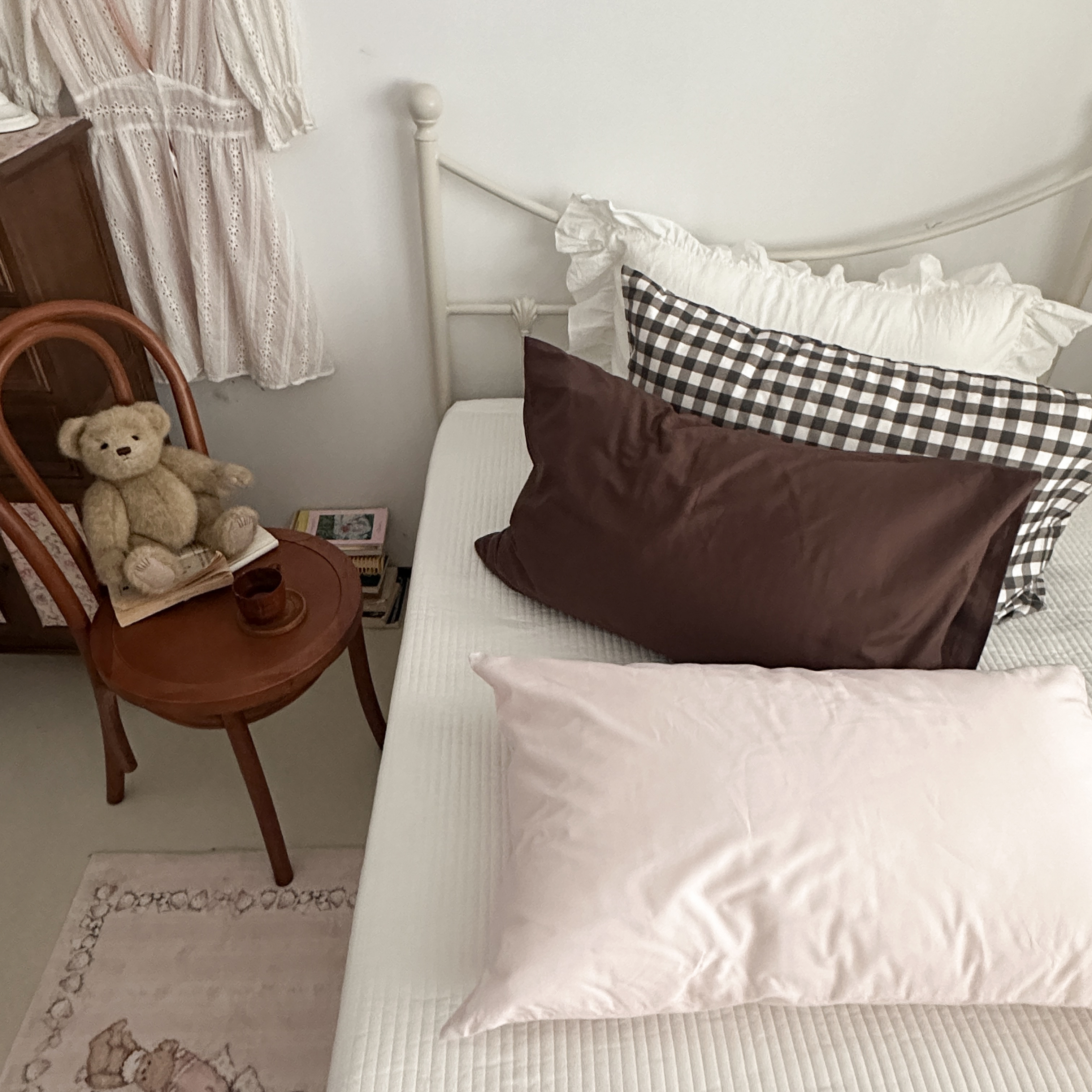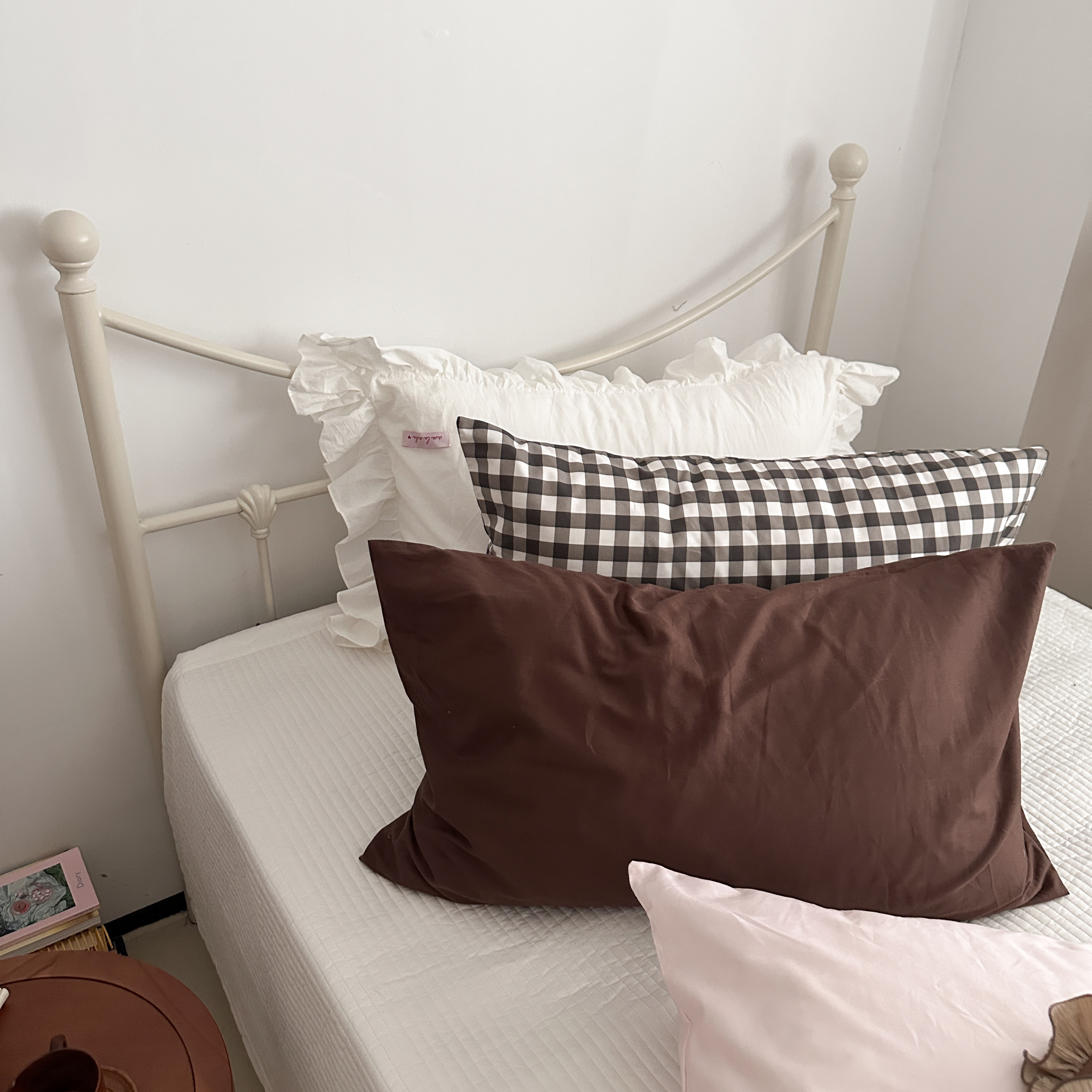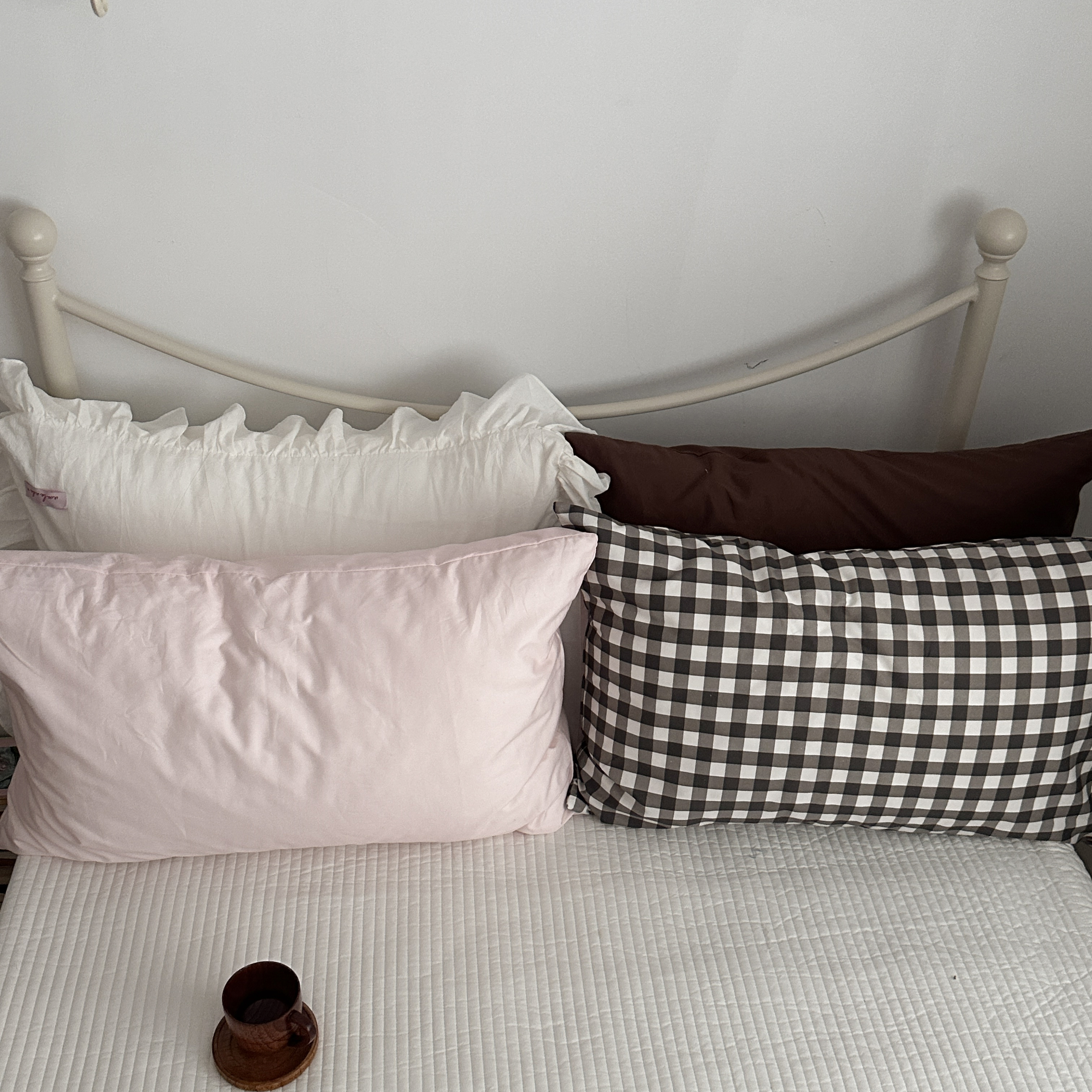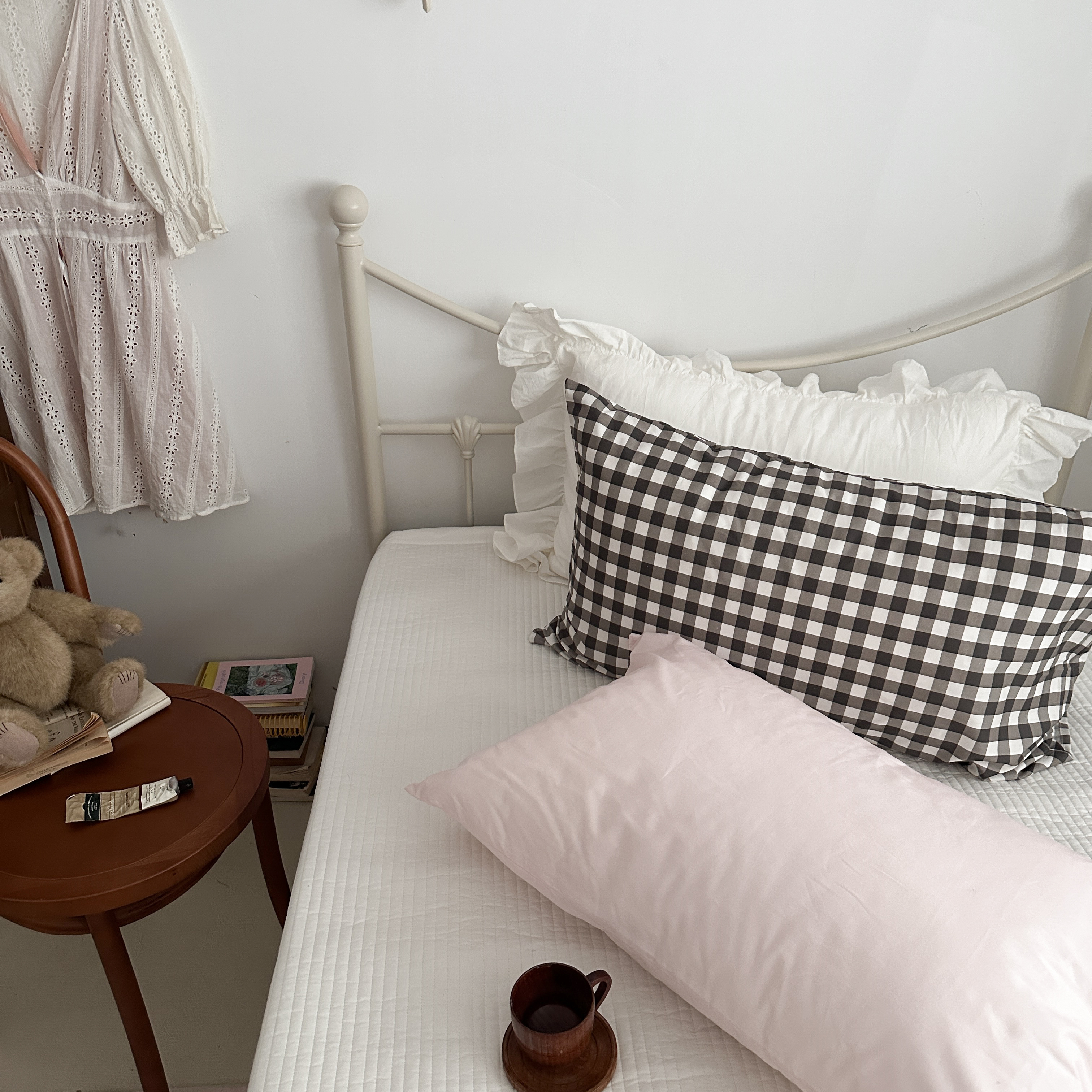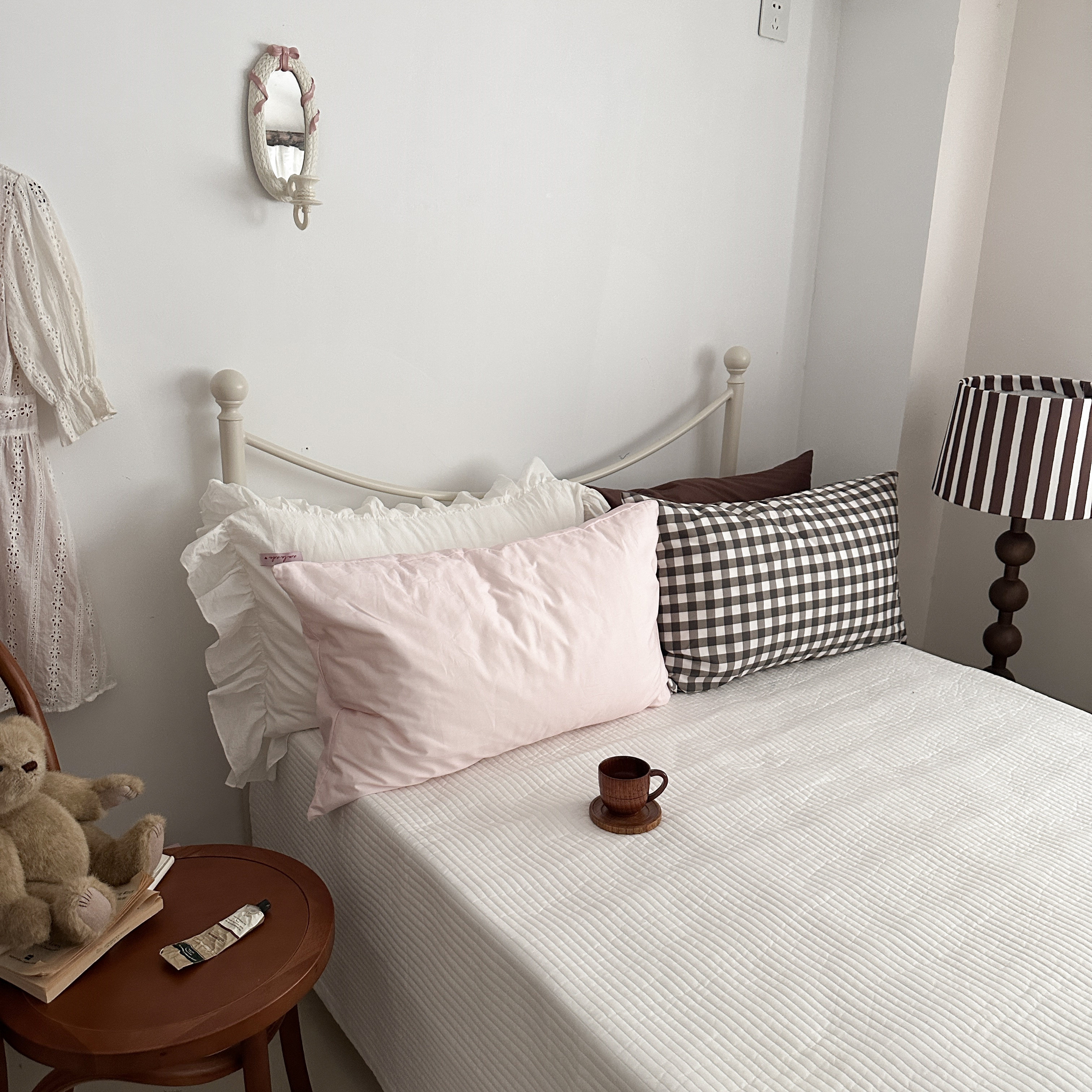 (总)恋恋三季 2024新款纯棉印花韩式田园枕套-格子铃兰,格子铃兰一只,香芋紫一只