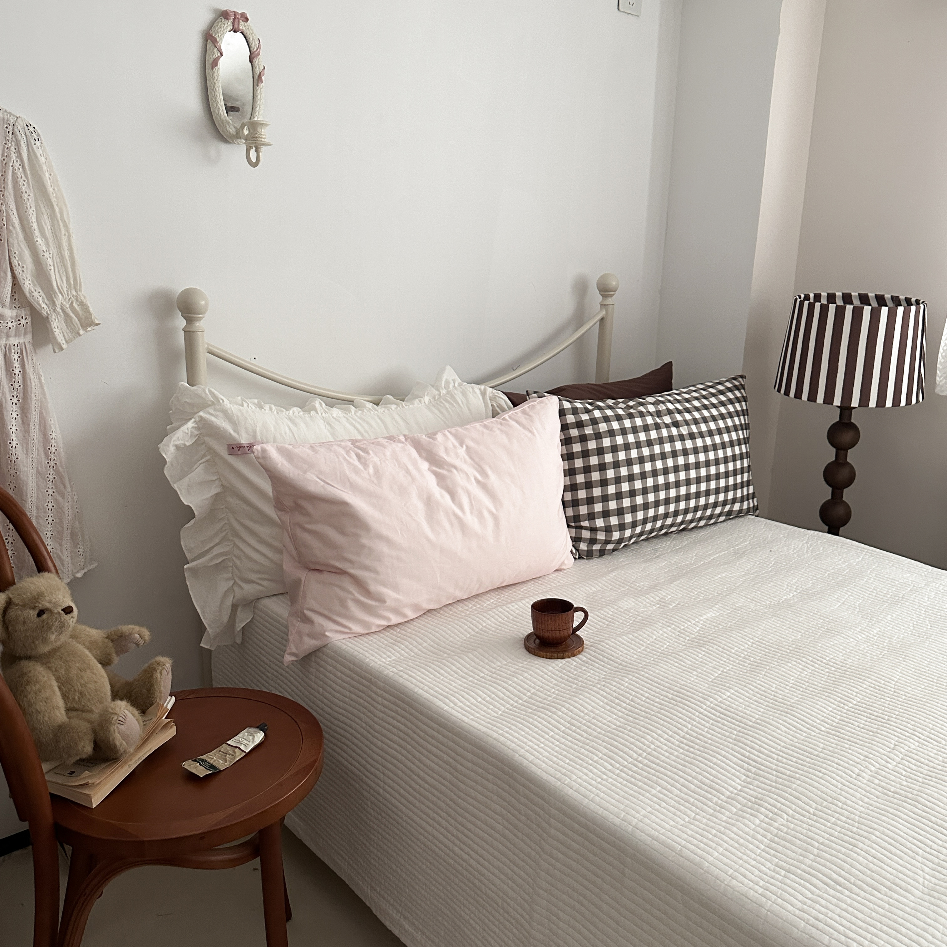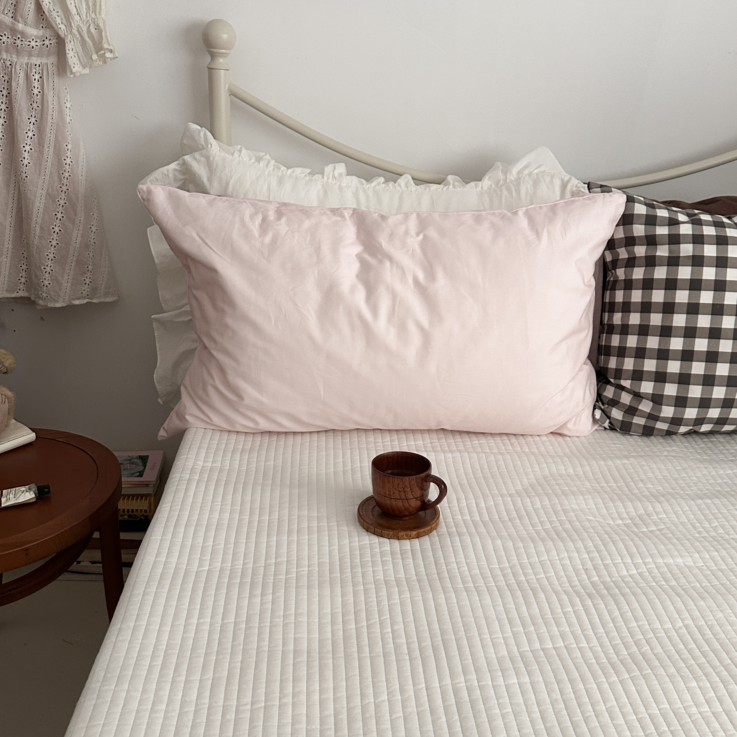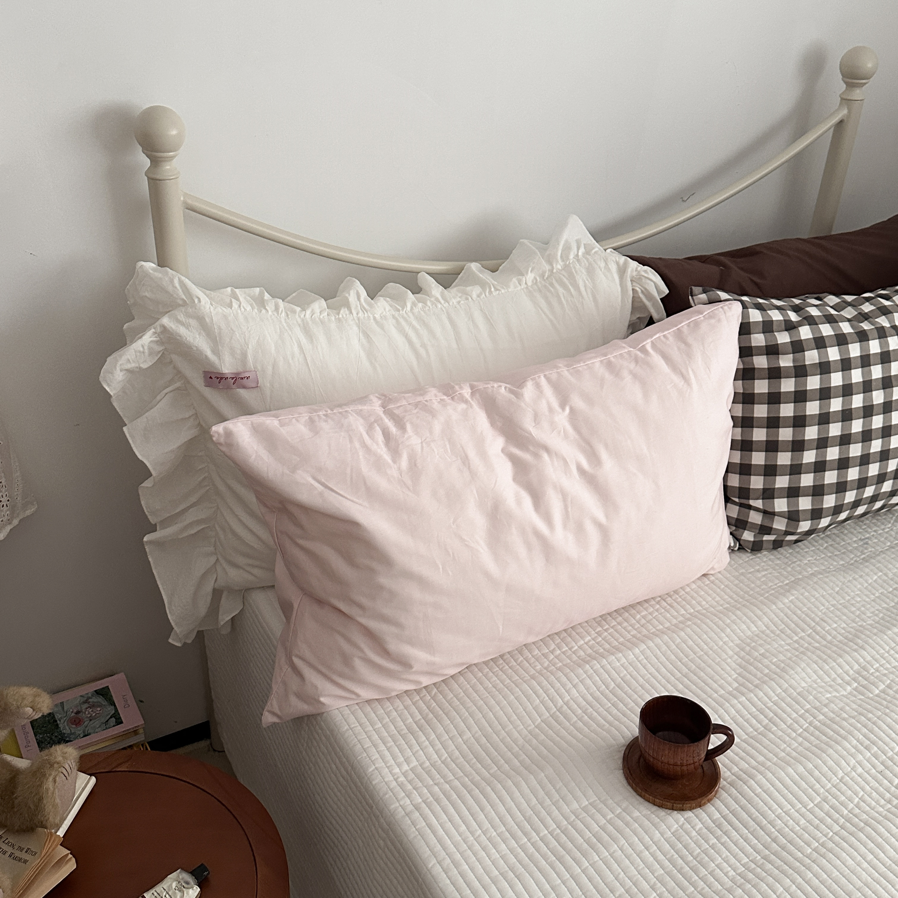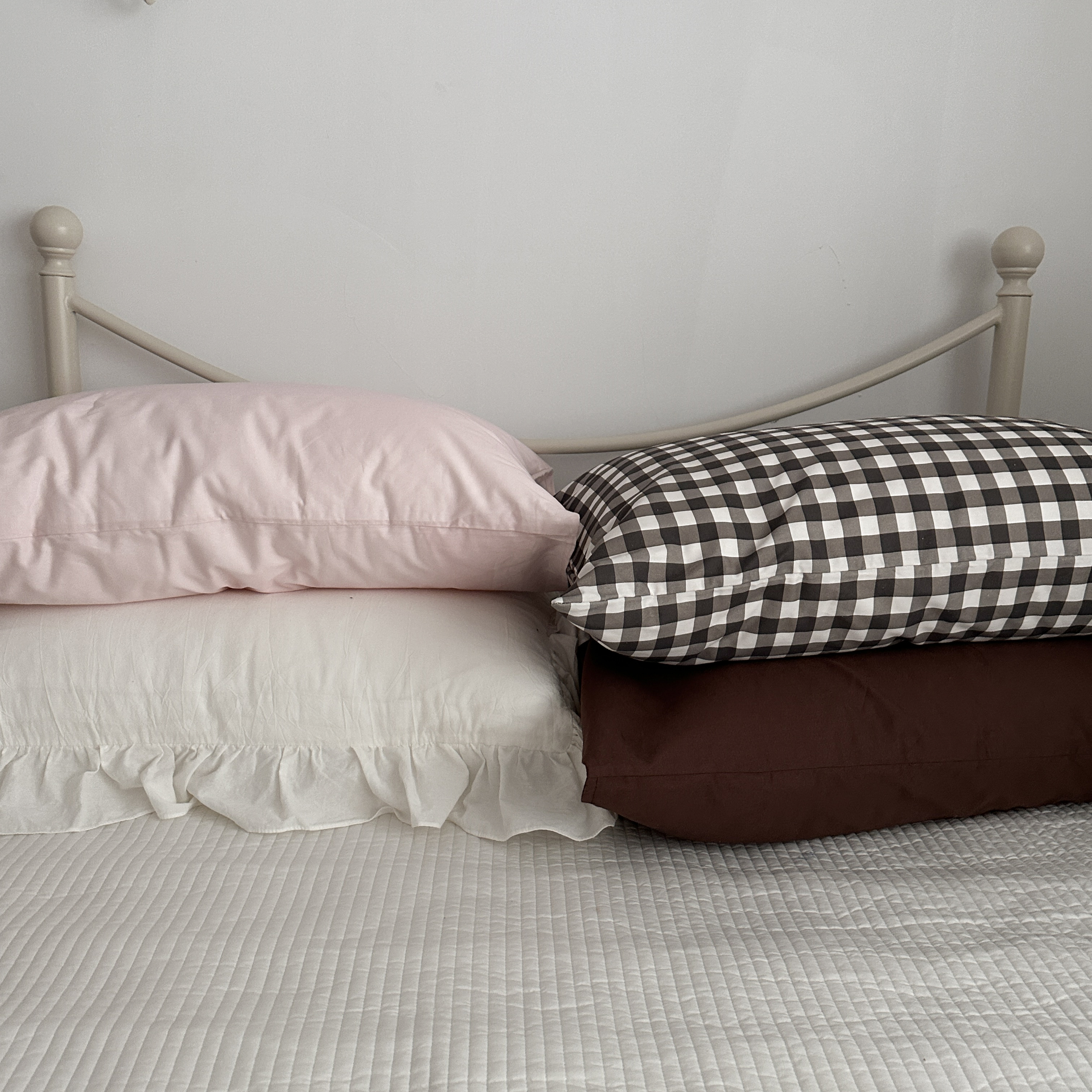 (总)恋恋三季 2024新款纯棉印花韩式田园枕套-格子铃兰,格子铃兰一只,香芋紫一只