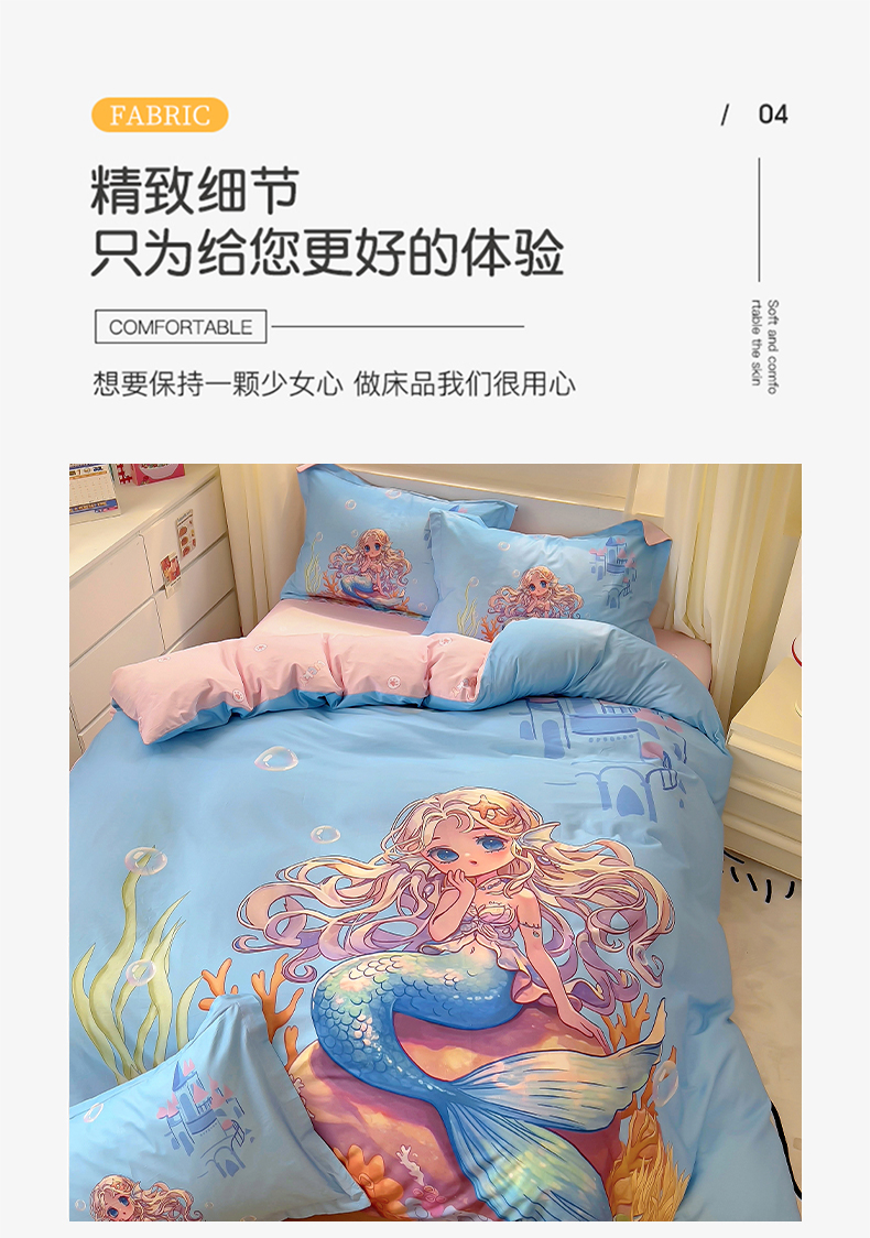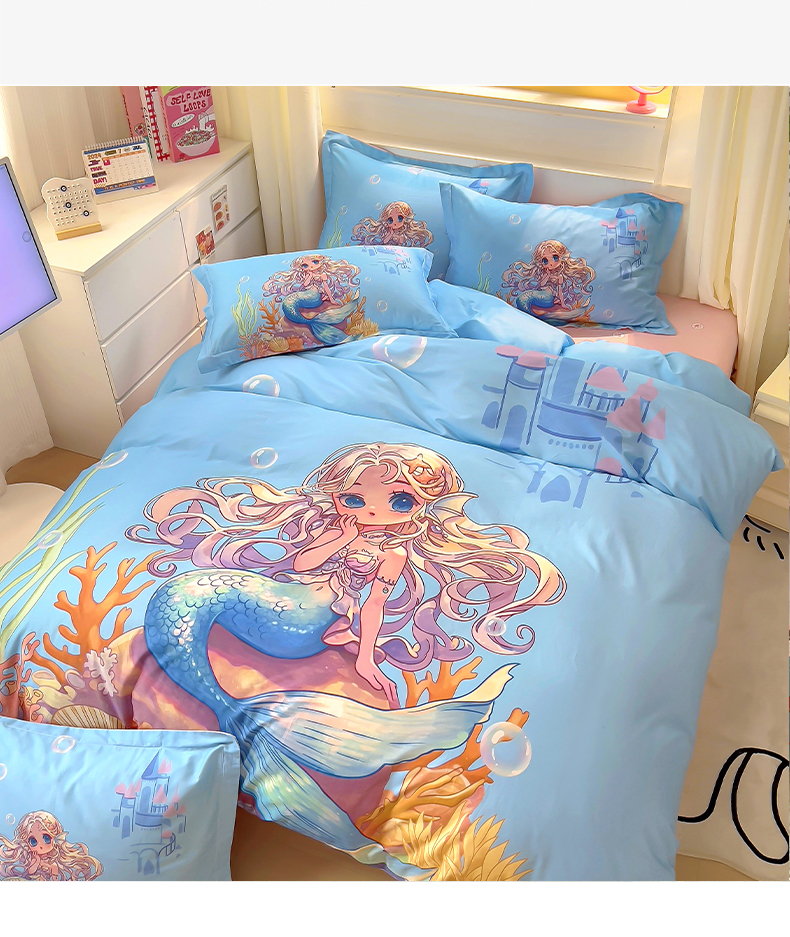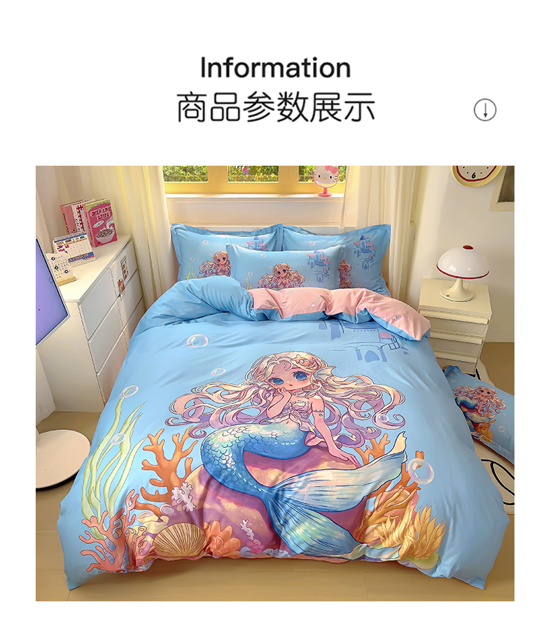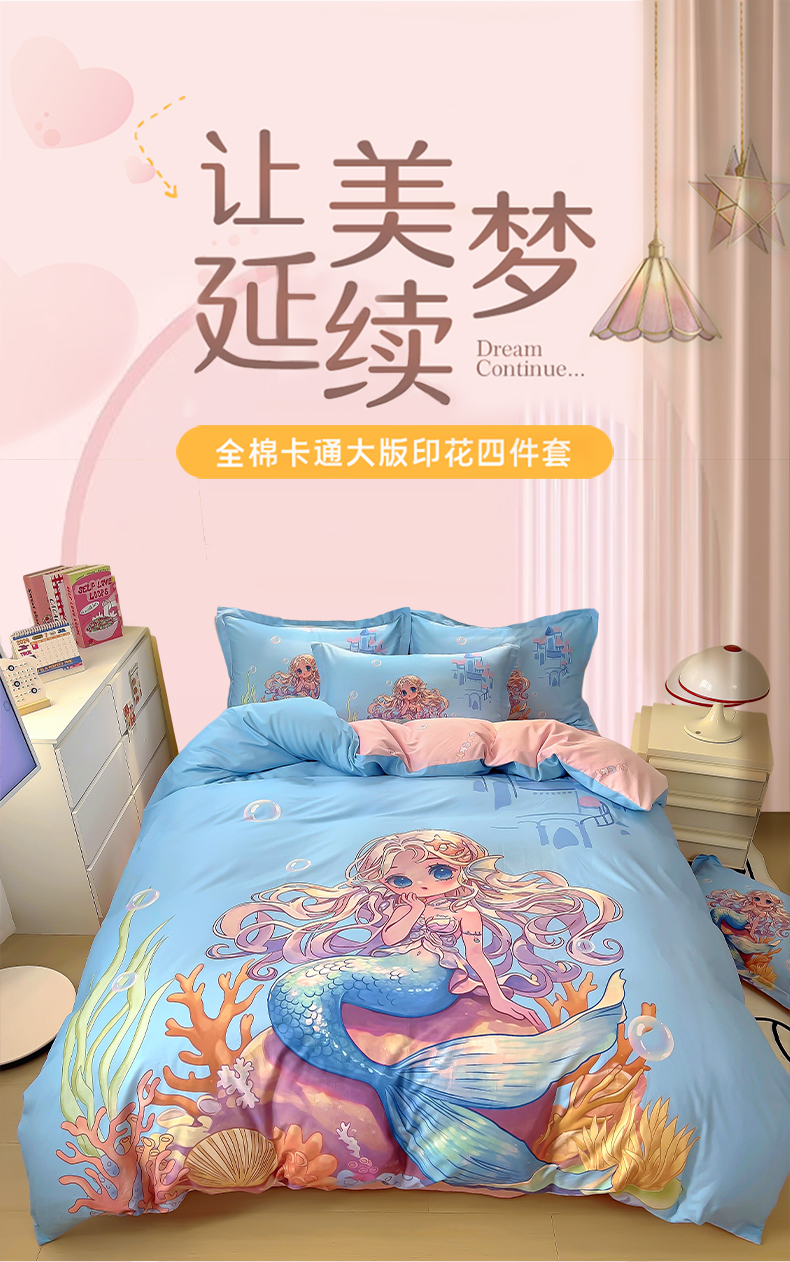 当前位置: 91家纺网 > 商品网购 > 床品套件 > 四件套 > 全棉普通四件套 > 浩诚 2025新款原创设计女孩全棉四件套 美人鱼