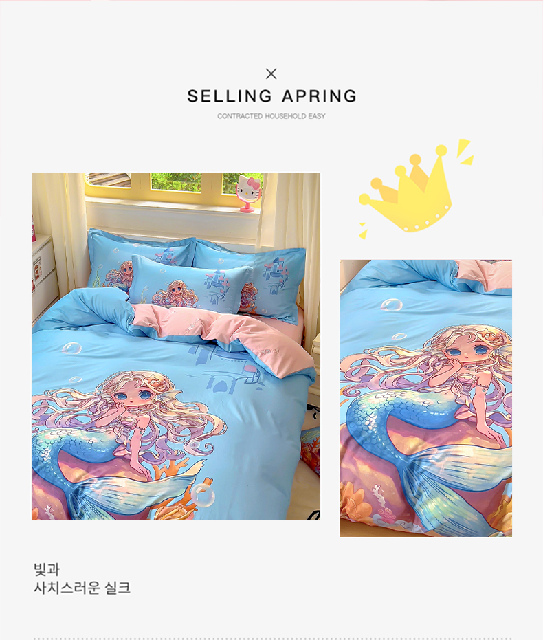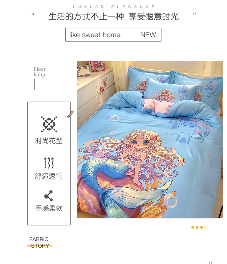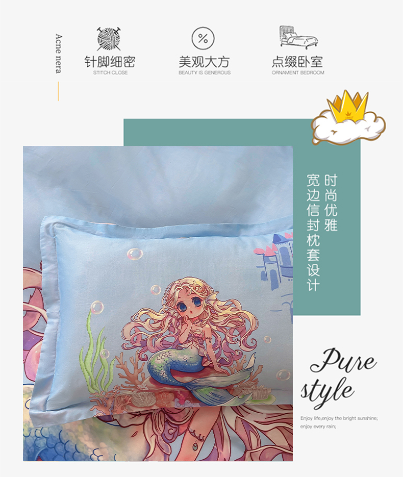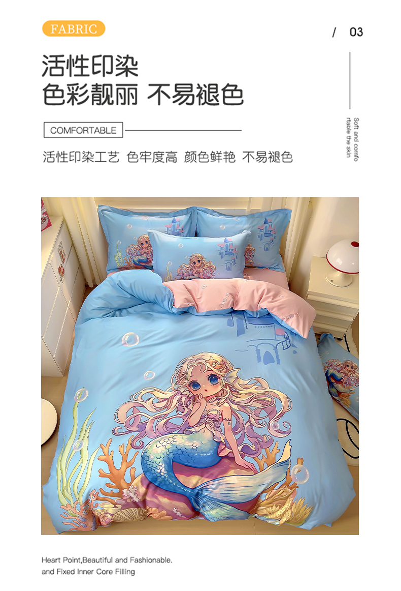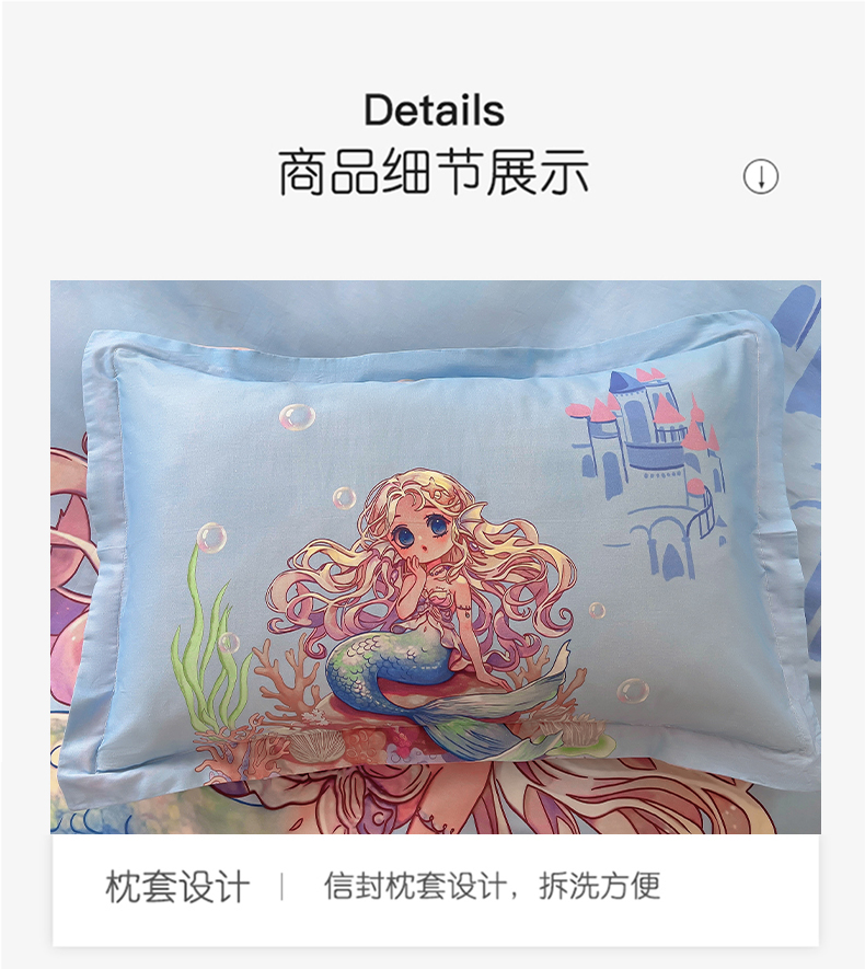 当前位置: 91家纺网 > 商品网购 > 床品套件 > 四件套 > 全棉普通四件套 > 浩诚 2025新款原创设计女孩全棉四件套 美人鱼