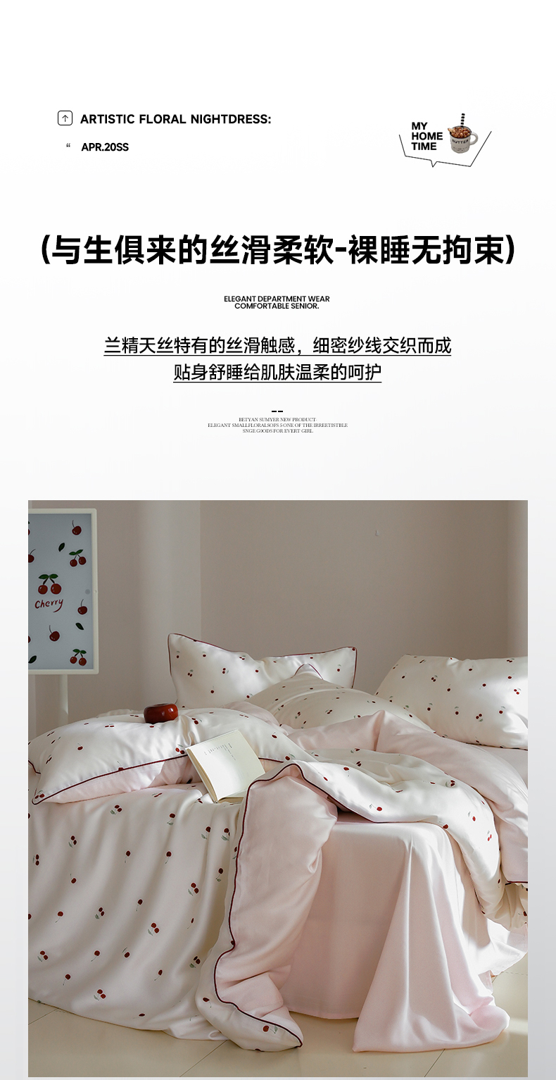当前位置: 91家纺网 > 商品网购 > 床品套件 > 四件套 > 莱赛尔四件套 > 简纯主义 2025新款兰精天丝印花四件套 樱桃粉