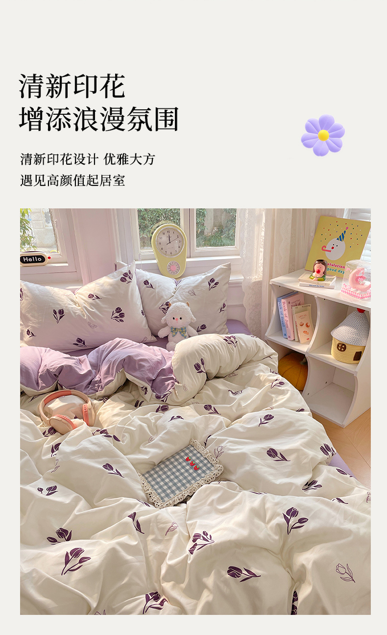 当前位置: 91家纺网 > 商品网购 > 床品套件 > 四件套 > 水洗棉四件套 > 思诺羽床笠 2025春夏新款小清新105克高克重水洗棉印花四件套 锦夏