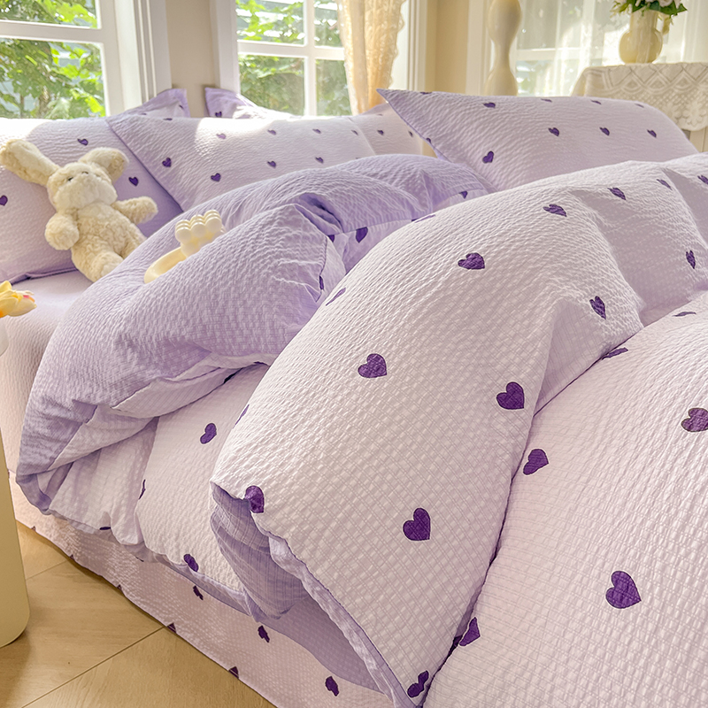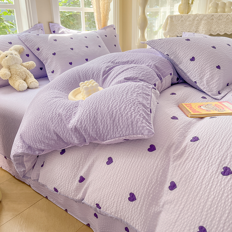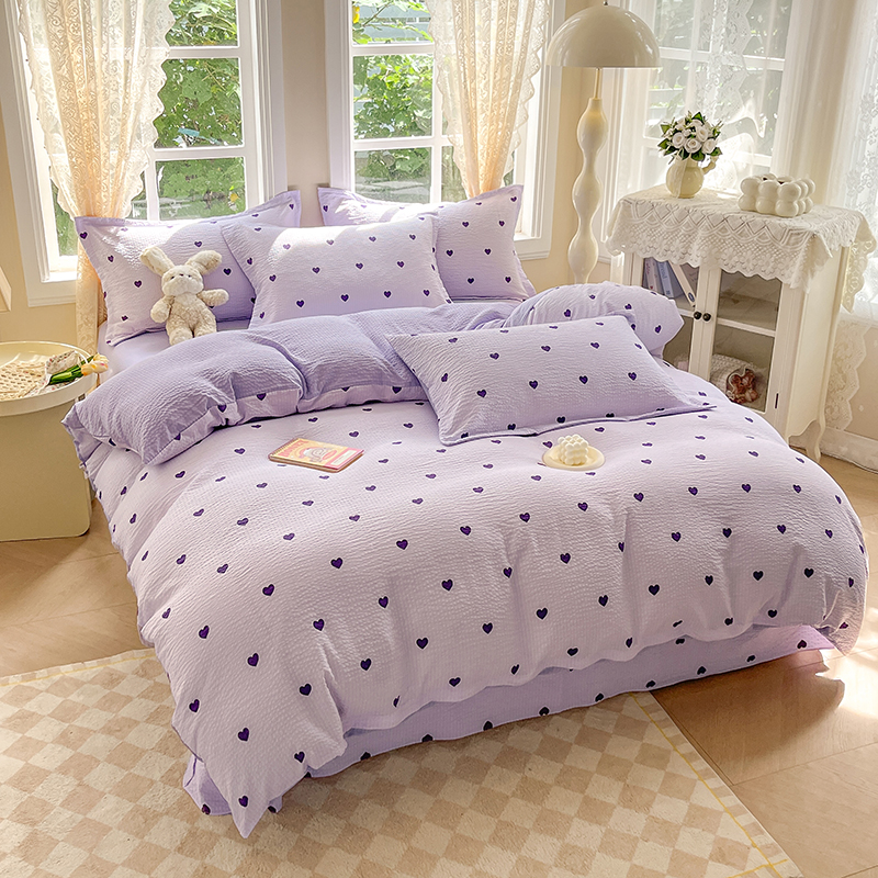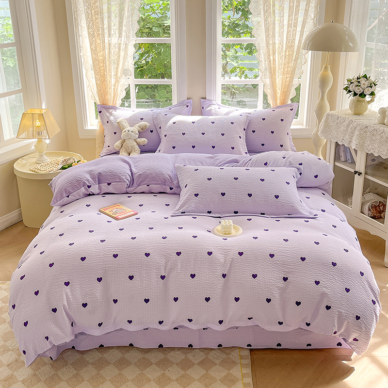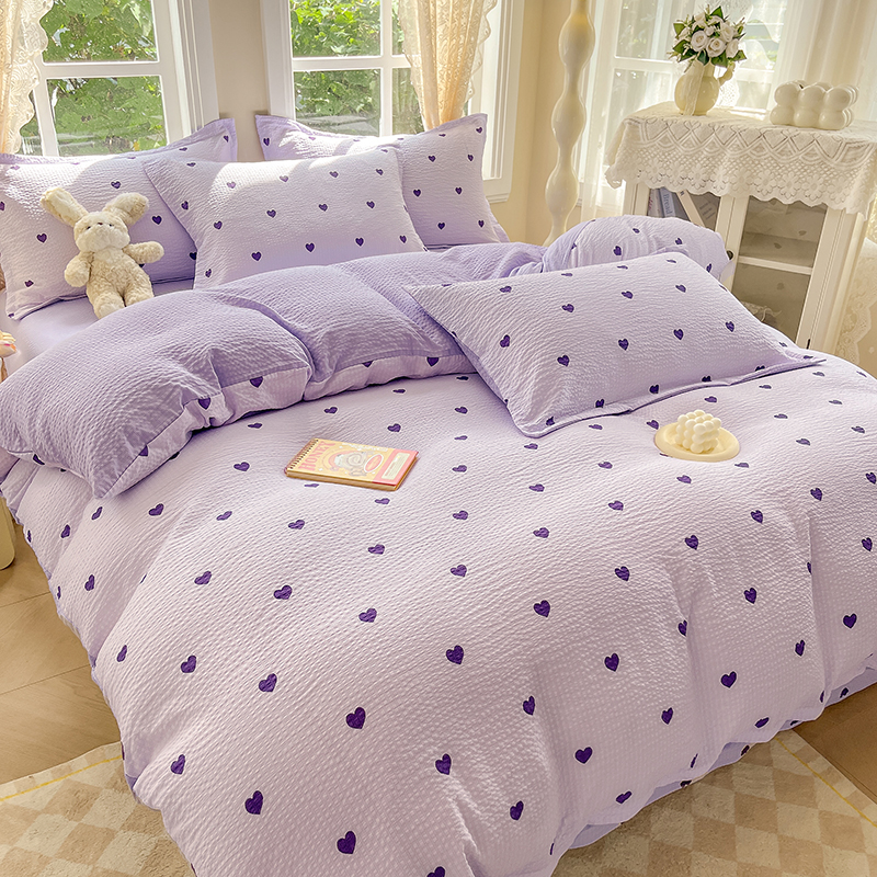 当前位置: 91家纺网 > 商品网购 > 床品套件 > 四件套 > 全棉普通四件套 > 壹号库 2025新款A类提花有氧彩竺绵四件套 紫爱心