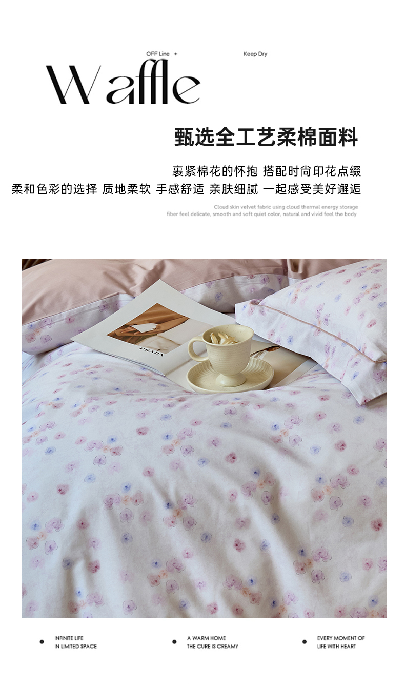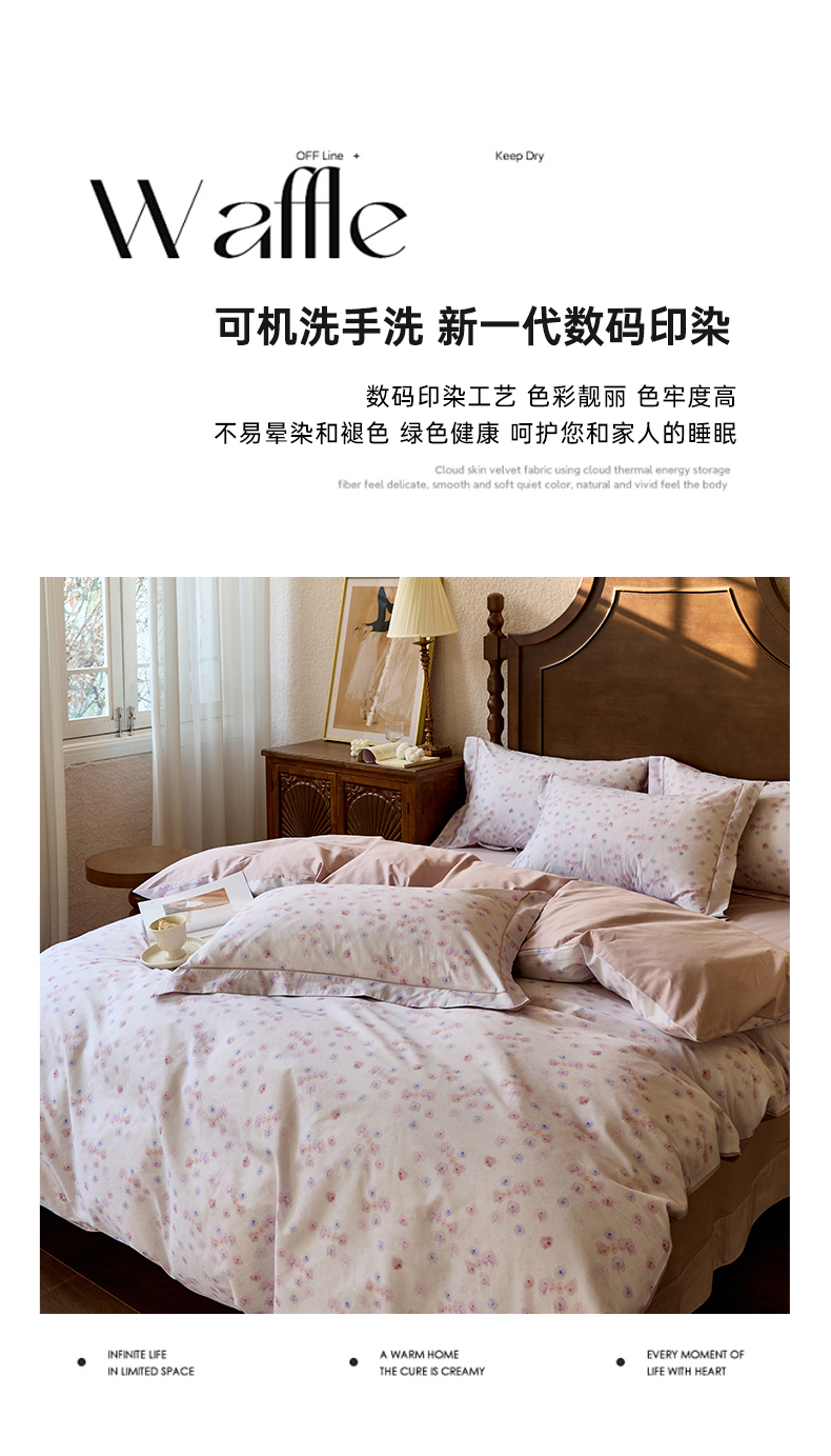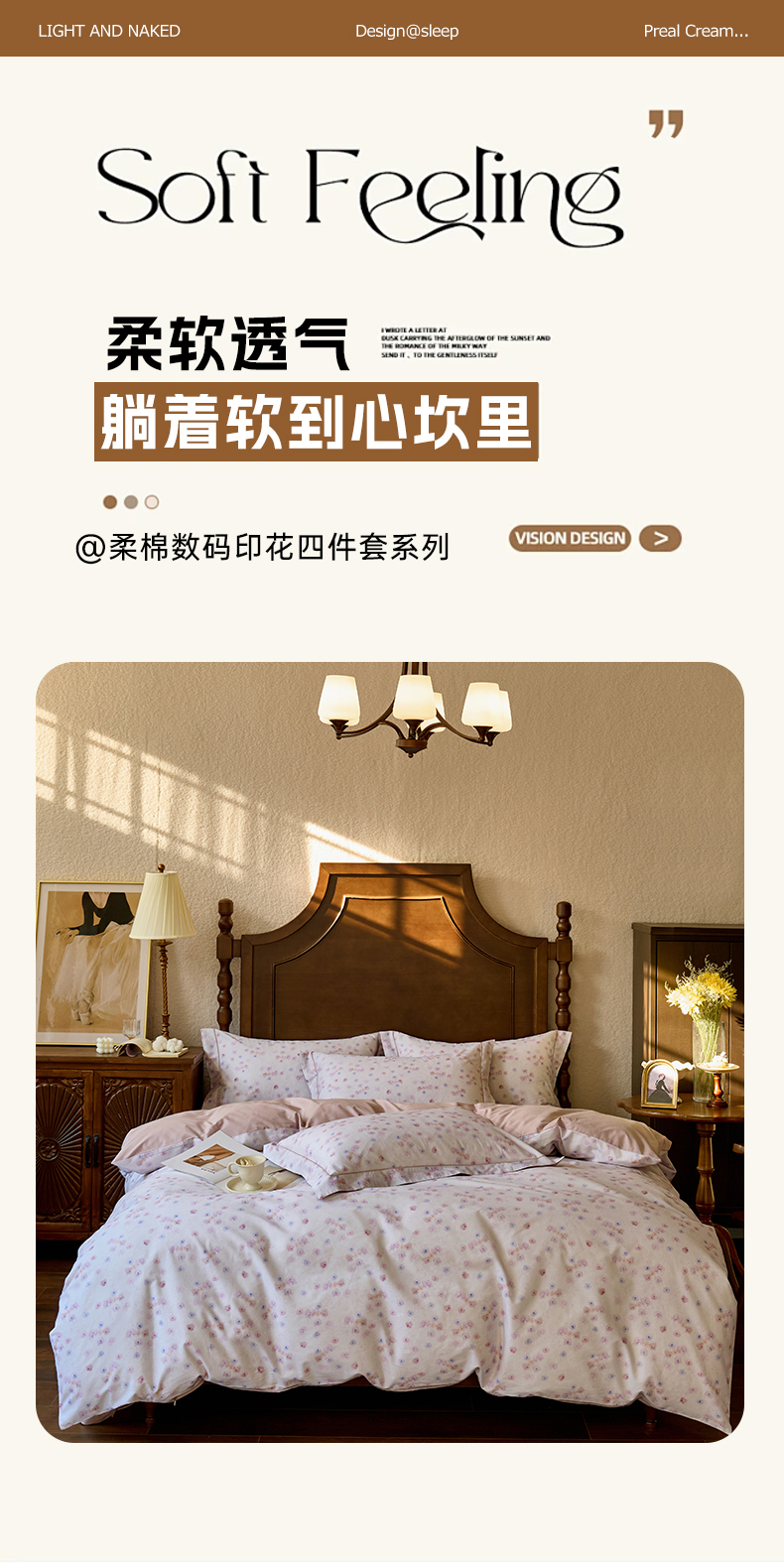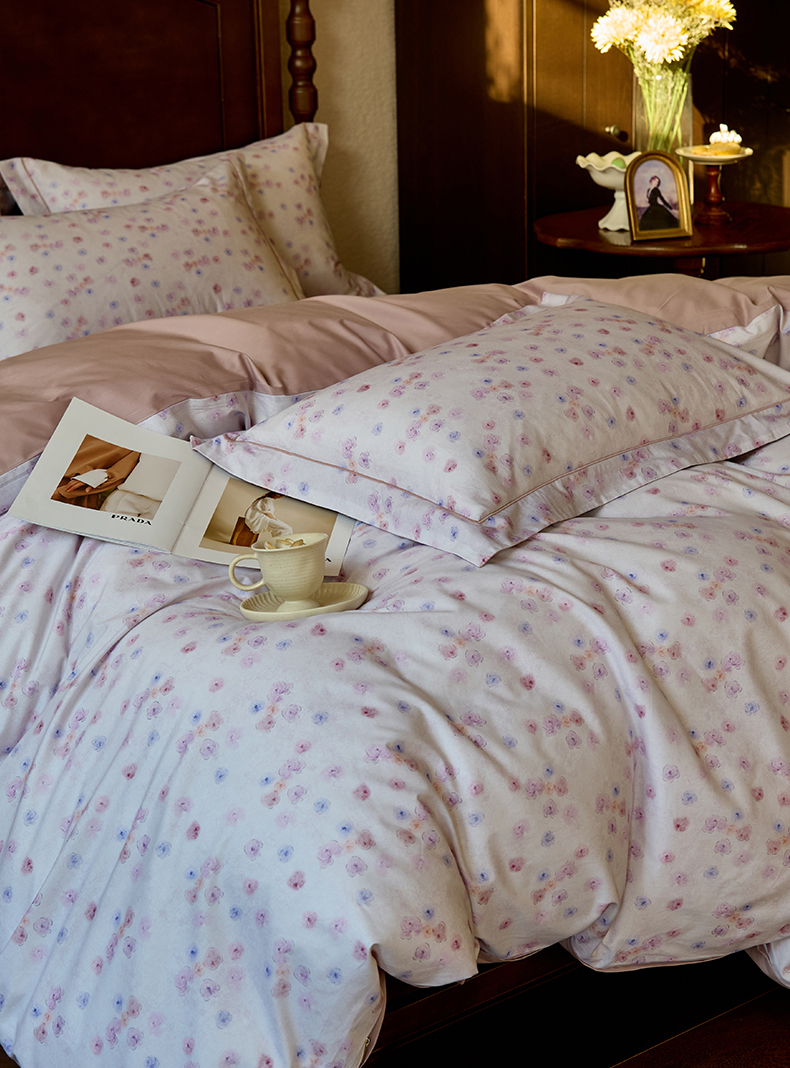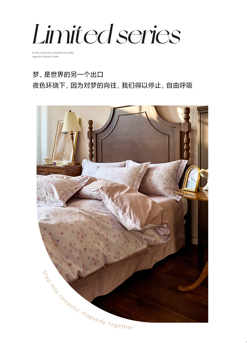 (总)由丽家纺 2025新款亲肤舒适全棉纯棉臻棉数码印花四件套系列,繁花似锦,感棉-粉,金溪-灰,金溪-咖,茂林-兰,明羽-黄,沐恩-绿,野玫瑰-紫,感棉-绿,玫瑰颂-粉