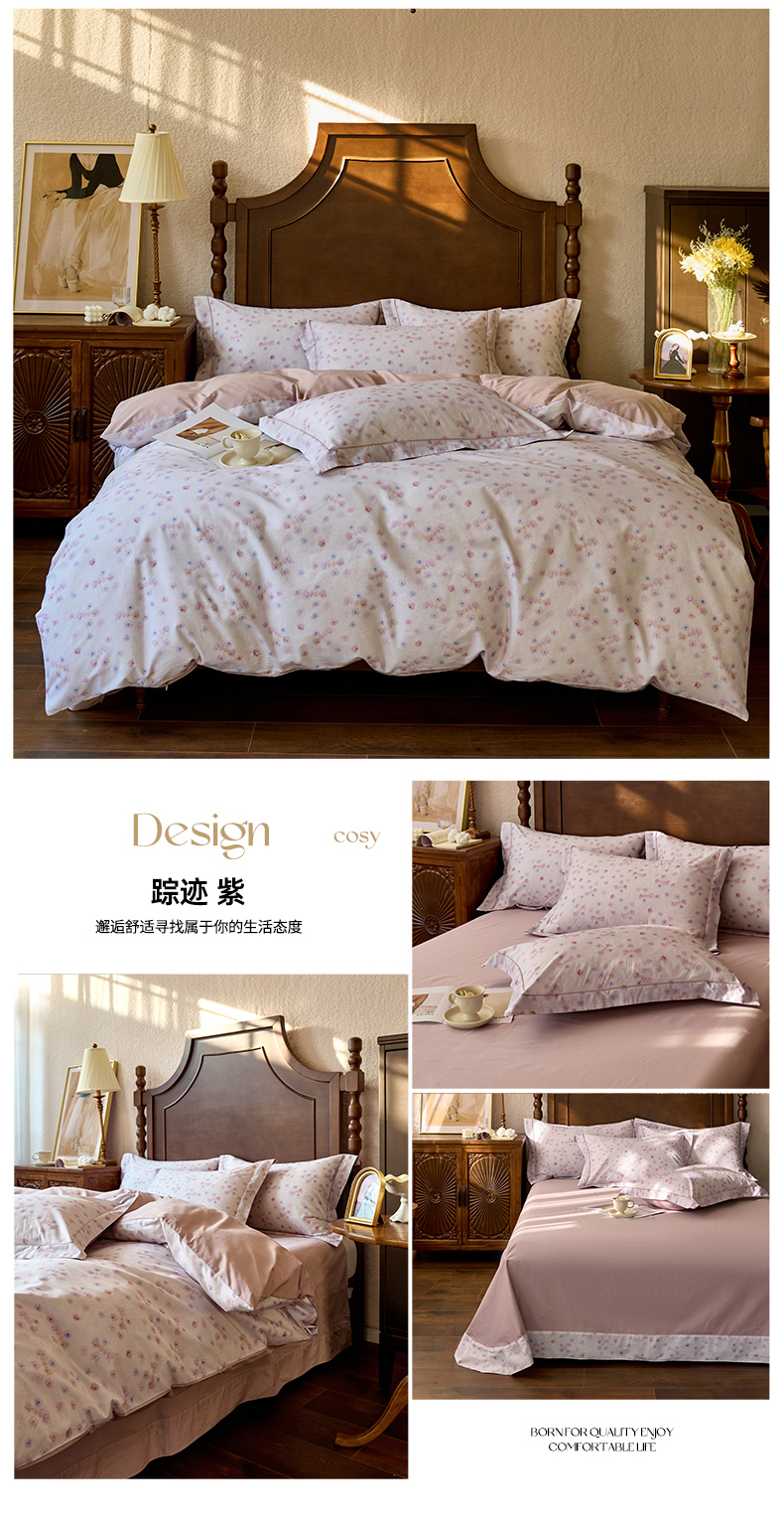 由丽家纺 由丽家纺 2025新款柔棉数码印花四件套系列 踪迹 紫