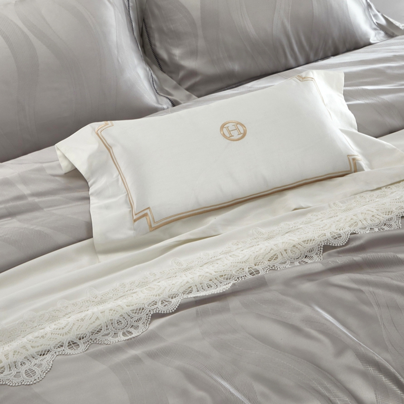 商品名称:赫本真丝馆(珍丝纺) 2025新款真丝提花系列四件套 维度空间
