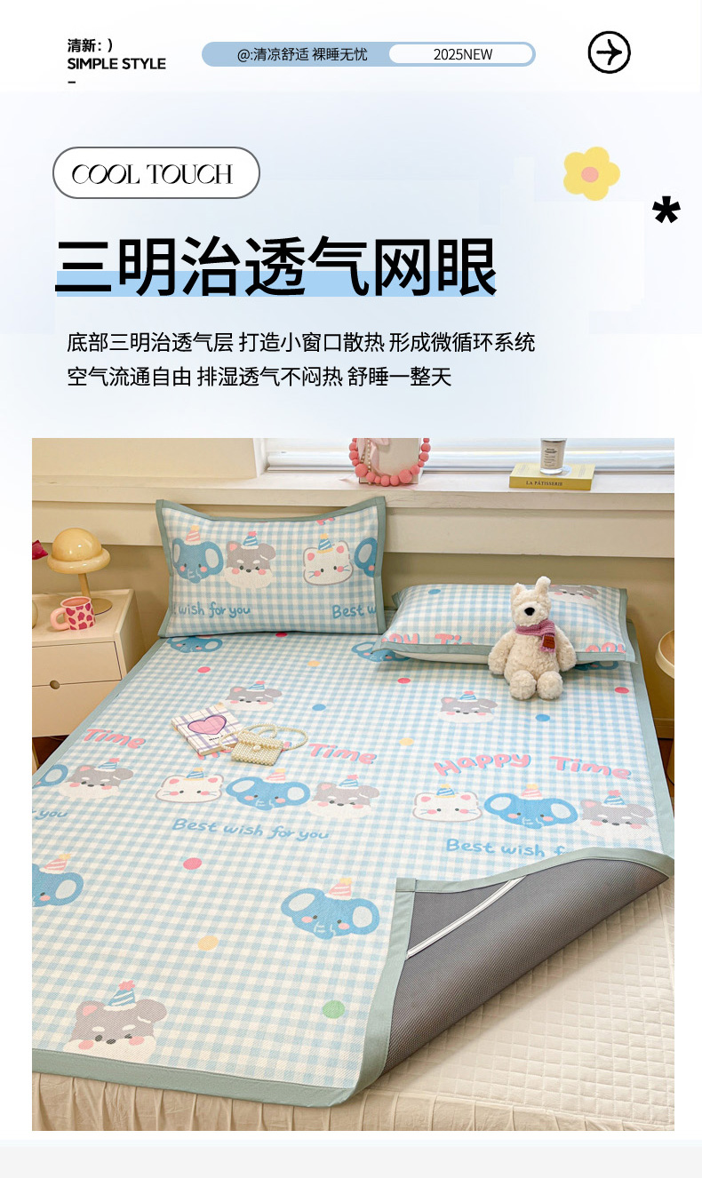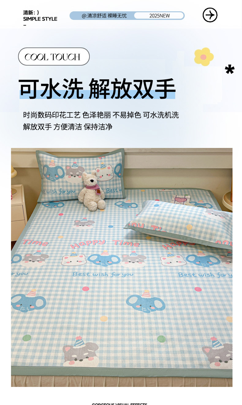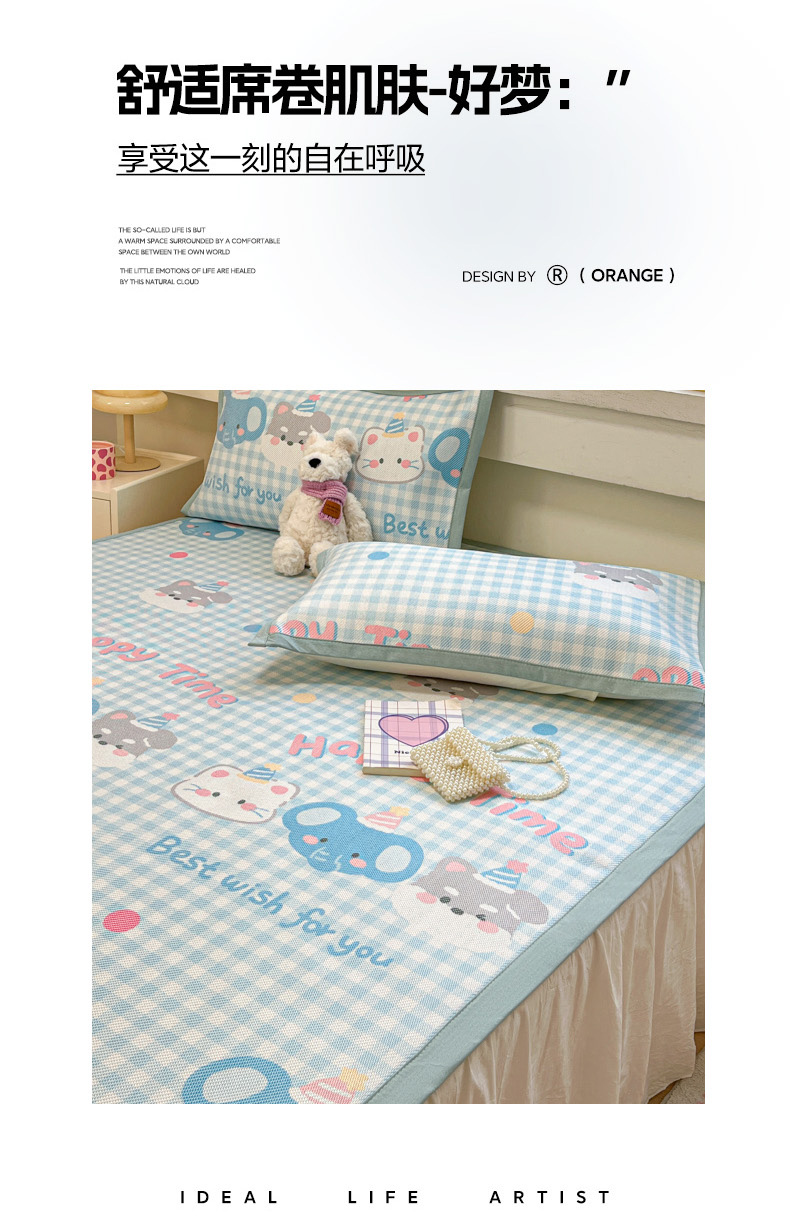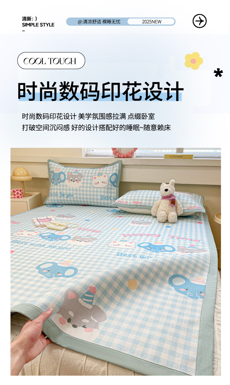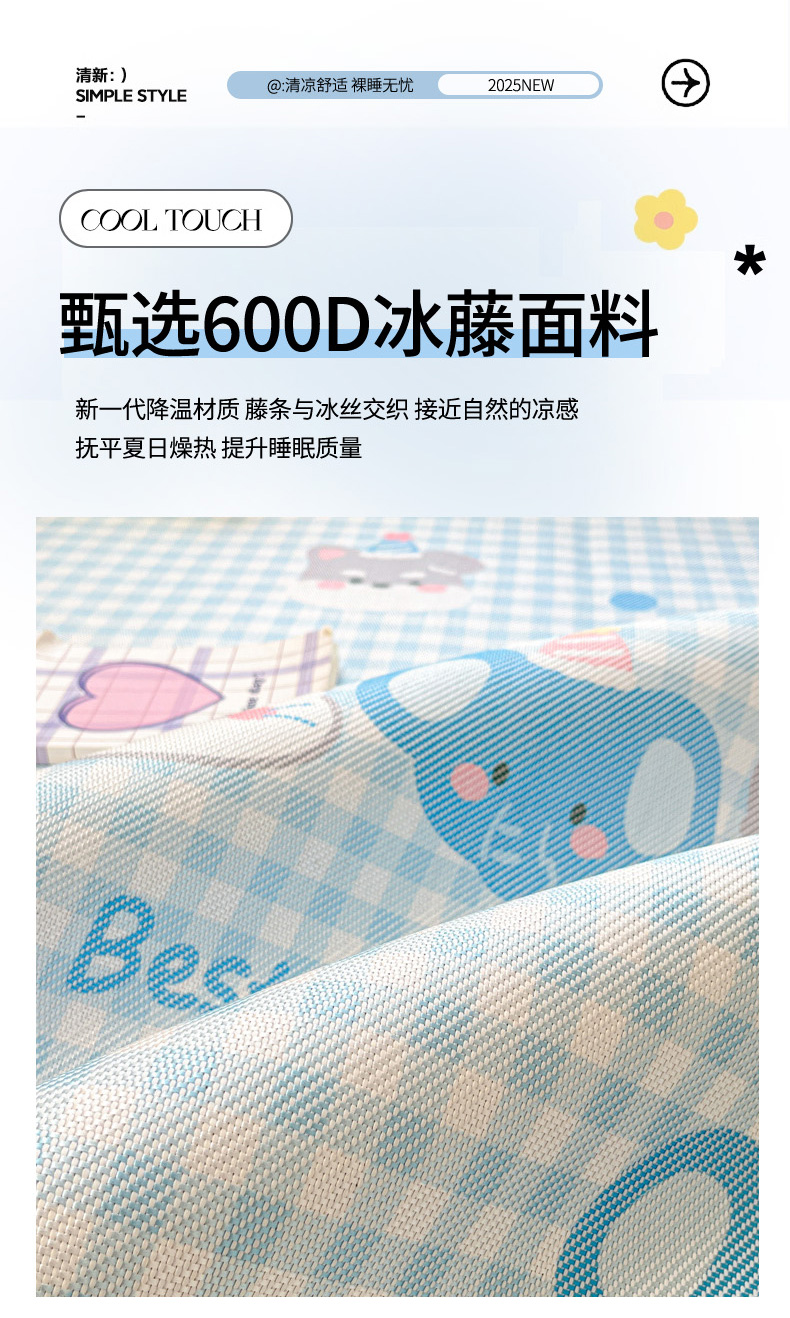 慕澄家纺 2025新款小清新印花真冰藤系列凉席床席款 床席-趣乐园