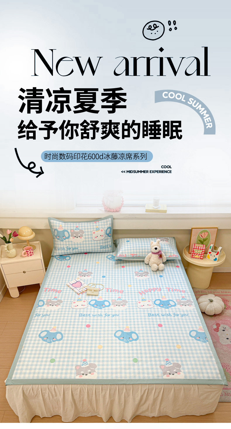 商品名称:慕澄家纺 2025新款小清新印花真冰藤系列凉席床席款 床席-趣乐园