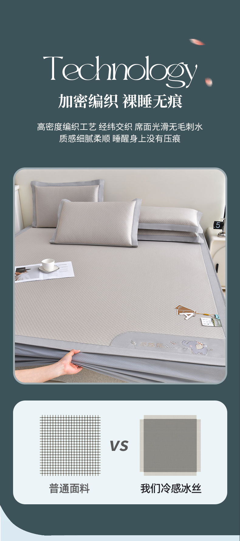 (总)2023新款超精密冰丝席-小斜纹系列-床笠款藤席凉席竹席,粉色,蓝色,绿色,银灰