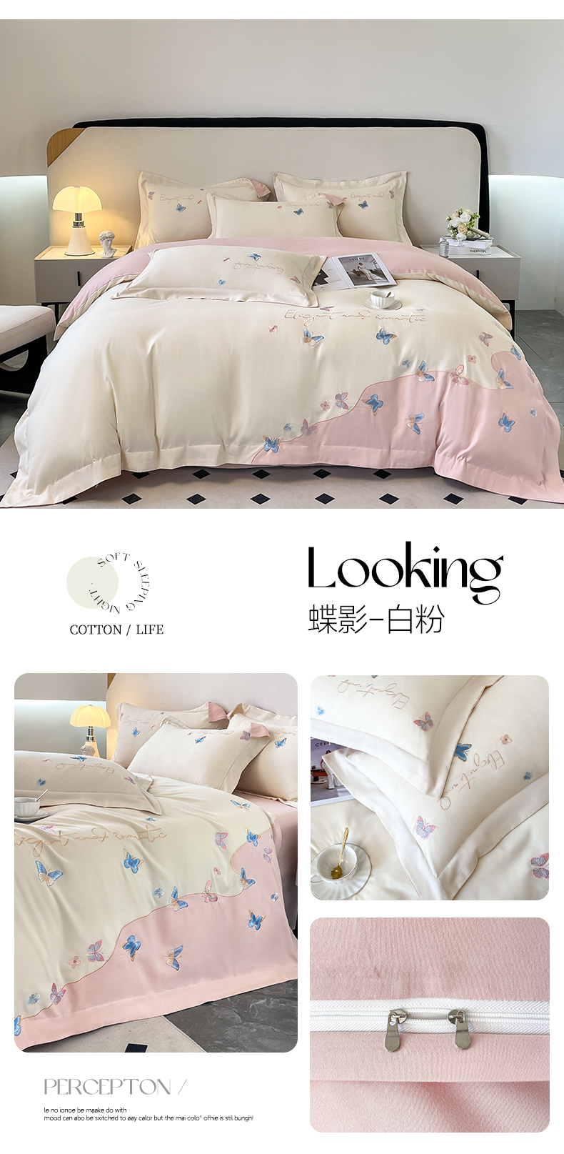 当前位置: 91家纺网 > 商品网购 > 床品套件 > 四件套 > 磨毛活性四件套 > 2025新款青柚蝶影磨毛刺绣四件套 蝶影-白粉