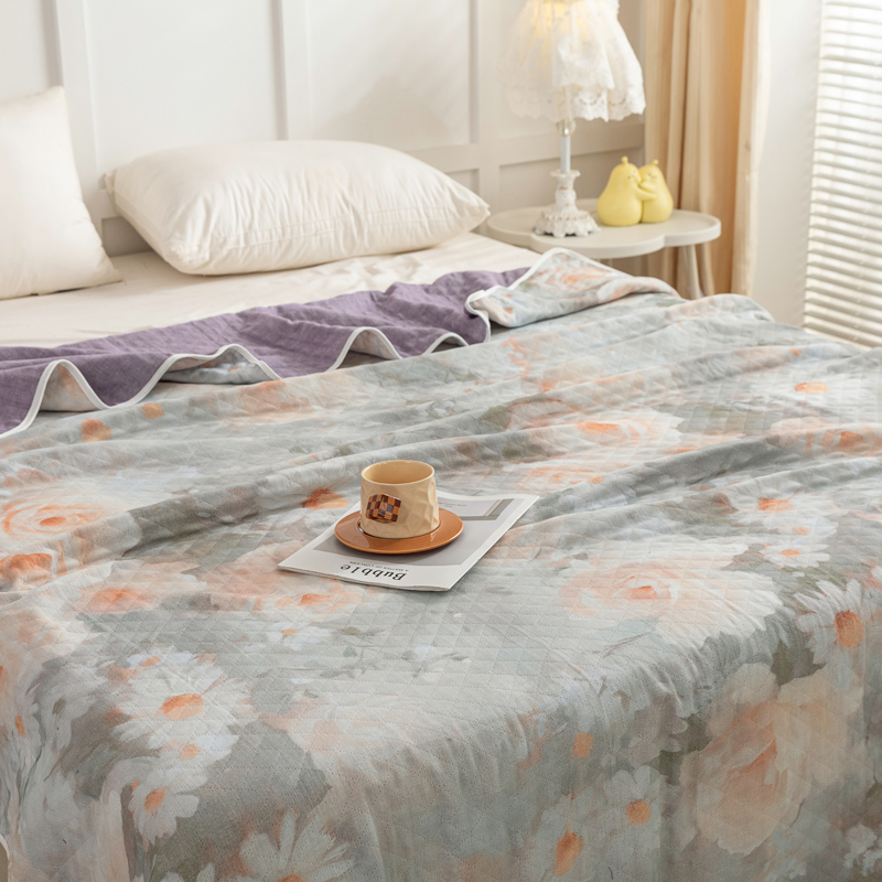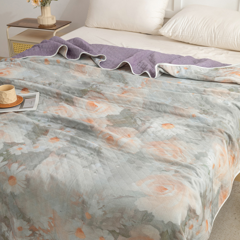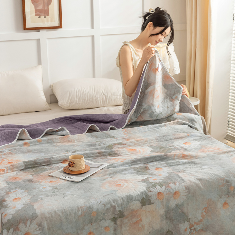 商品名称:乐家毛巾被(工厂自产自销) 2025新款A类全棉六层纱印花毛巾被 油画雏菊