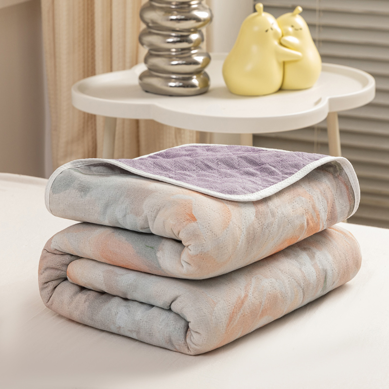 (总)乐家毛巾被(工厂自产自销) 2025新款A类全棉六层纱印花毛巾被,白色棉朵,彩蝶,彩虹小熊,动物派对,多彩南瓜,格子花花,黄油小熊,简笔森林,卡通狗狗,绿色茶花,莫比乌斯环,水墨花开,兔子小狗,吴丹花开,向日葵,尤加利,油画雏菊,happy腊肠狗