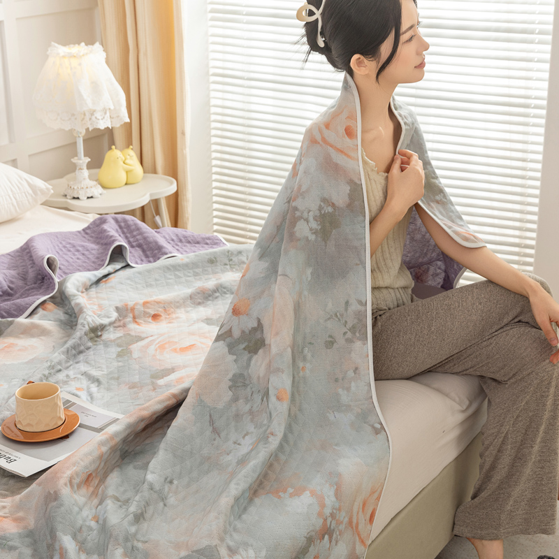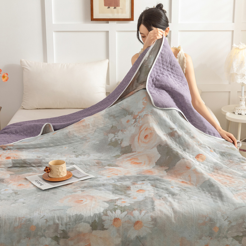 乐家毛巾被(工厂自产自销) 2025新款A类全棉六层纱印花毛巾被 油画雏菊