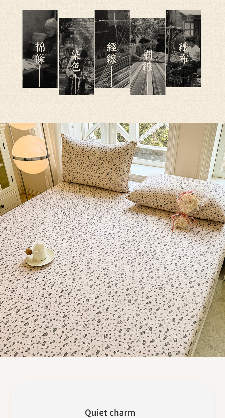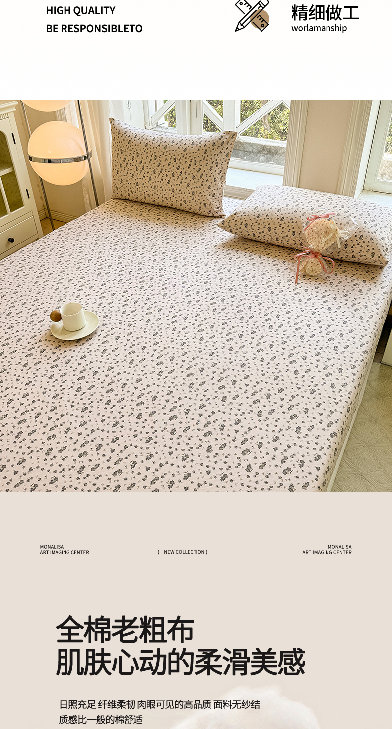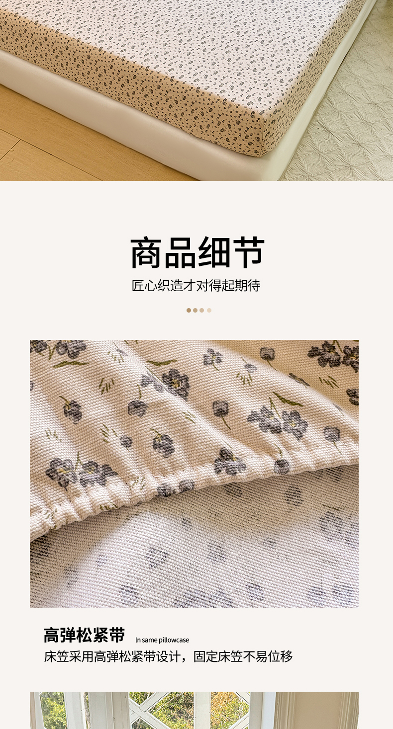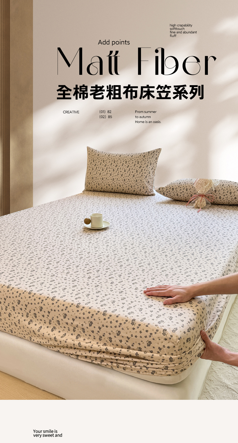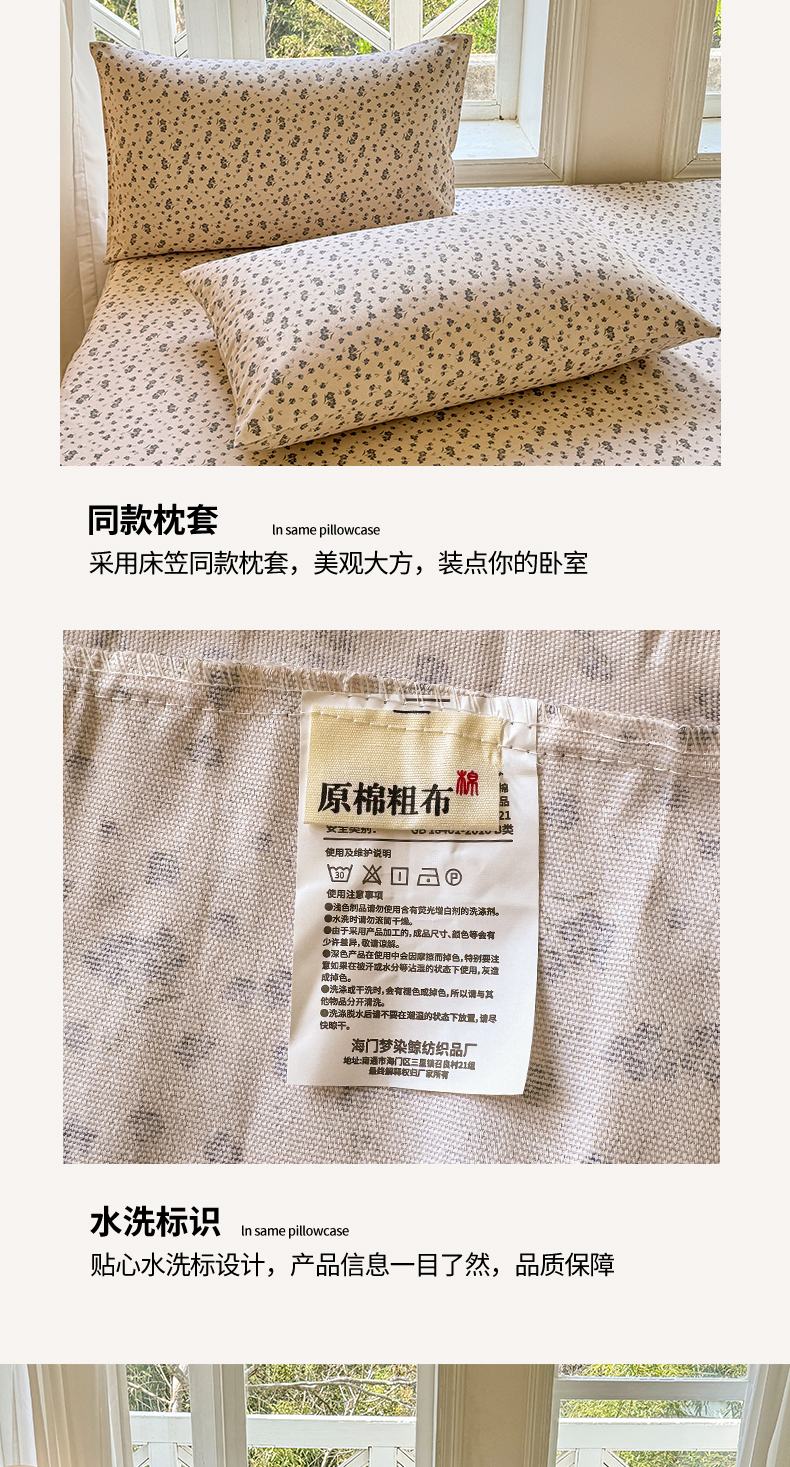 • 91家纺网 家纺一手货源 找家纺 韩巢家纺 2025新款全棉纯棉田园小清新花卉老粗布席子凉席夏季凉席席子床笠款床套 紫韵