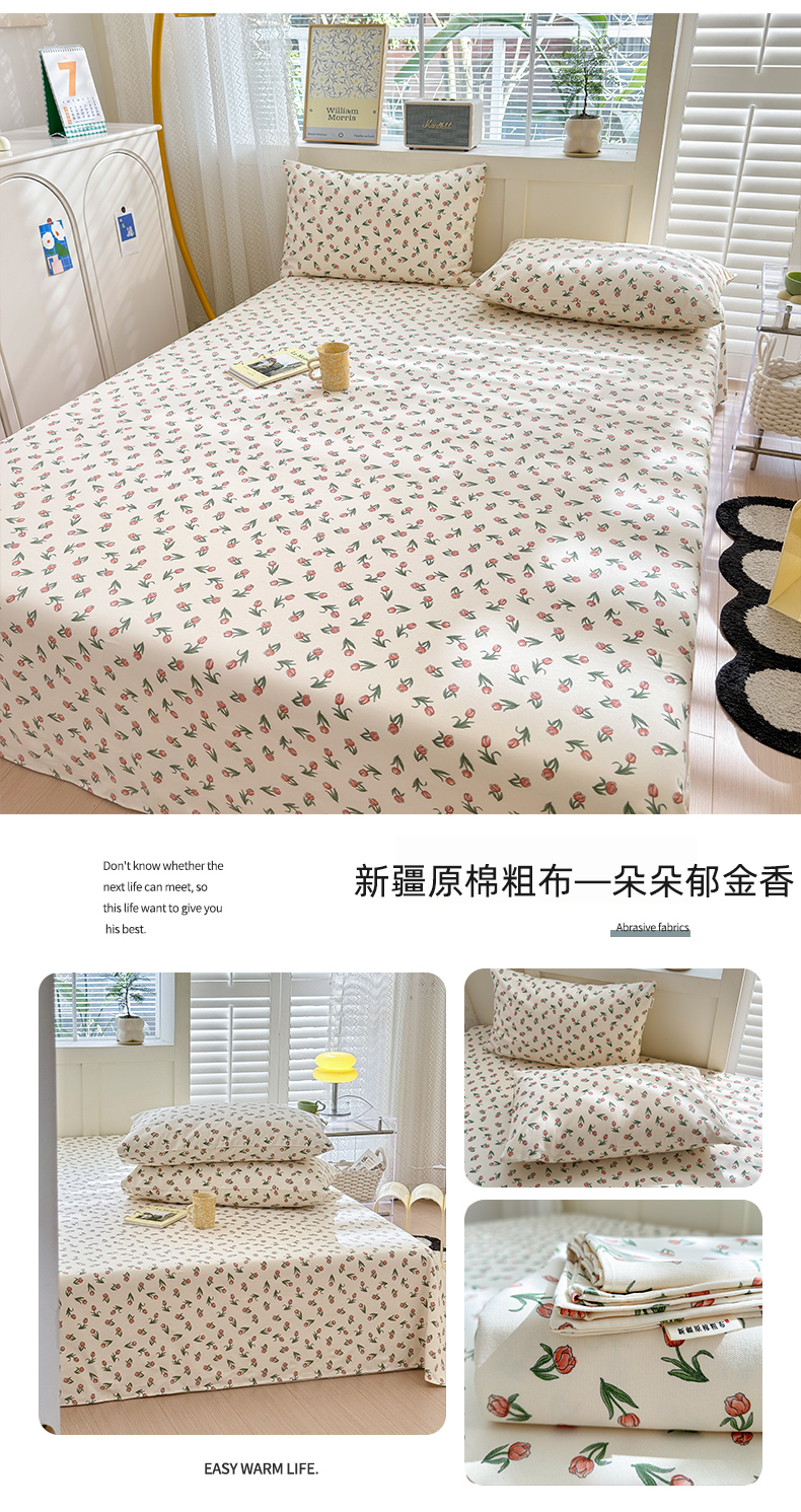 吉象家纺 2025新款老粗布三件套-床单款 朵朵郁金香