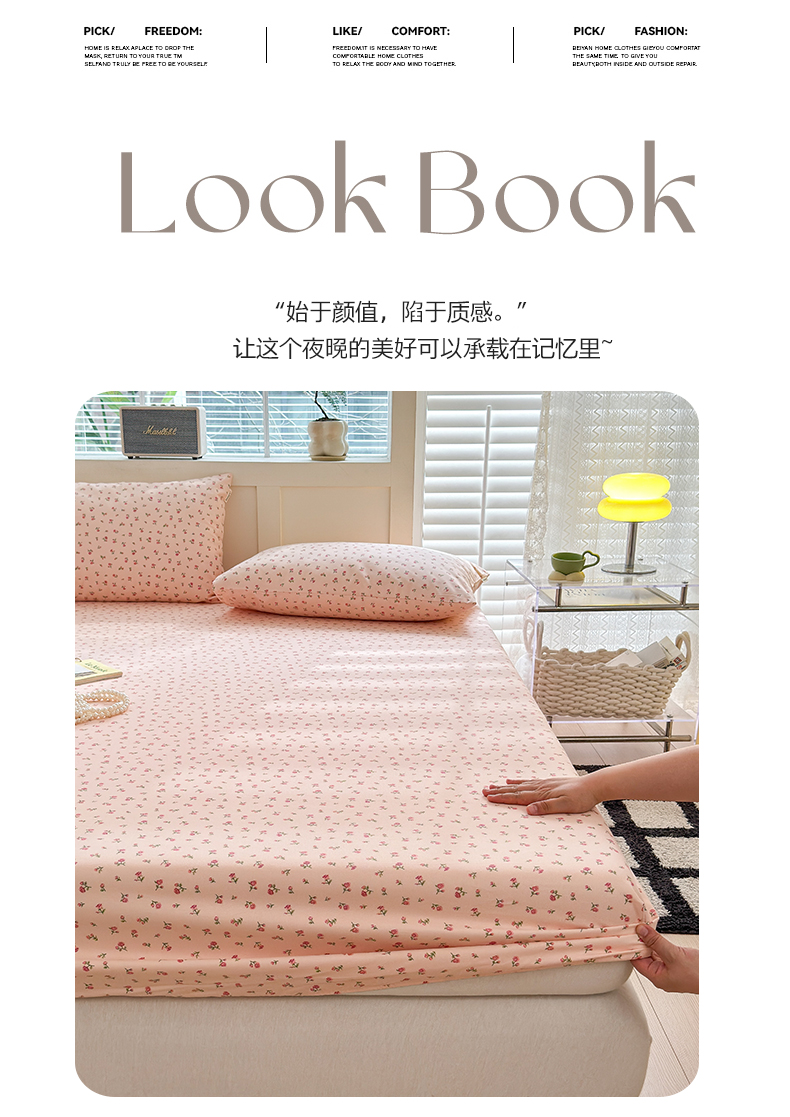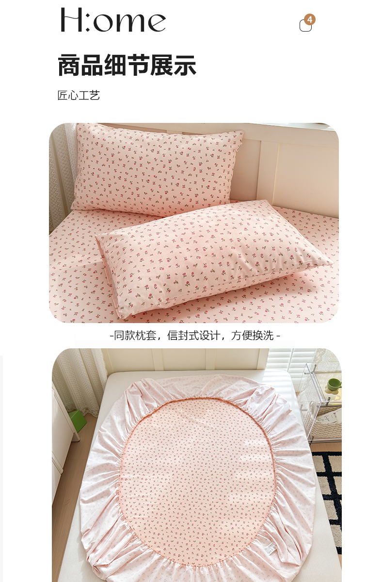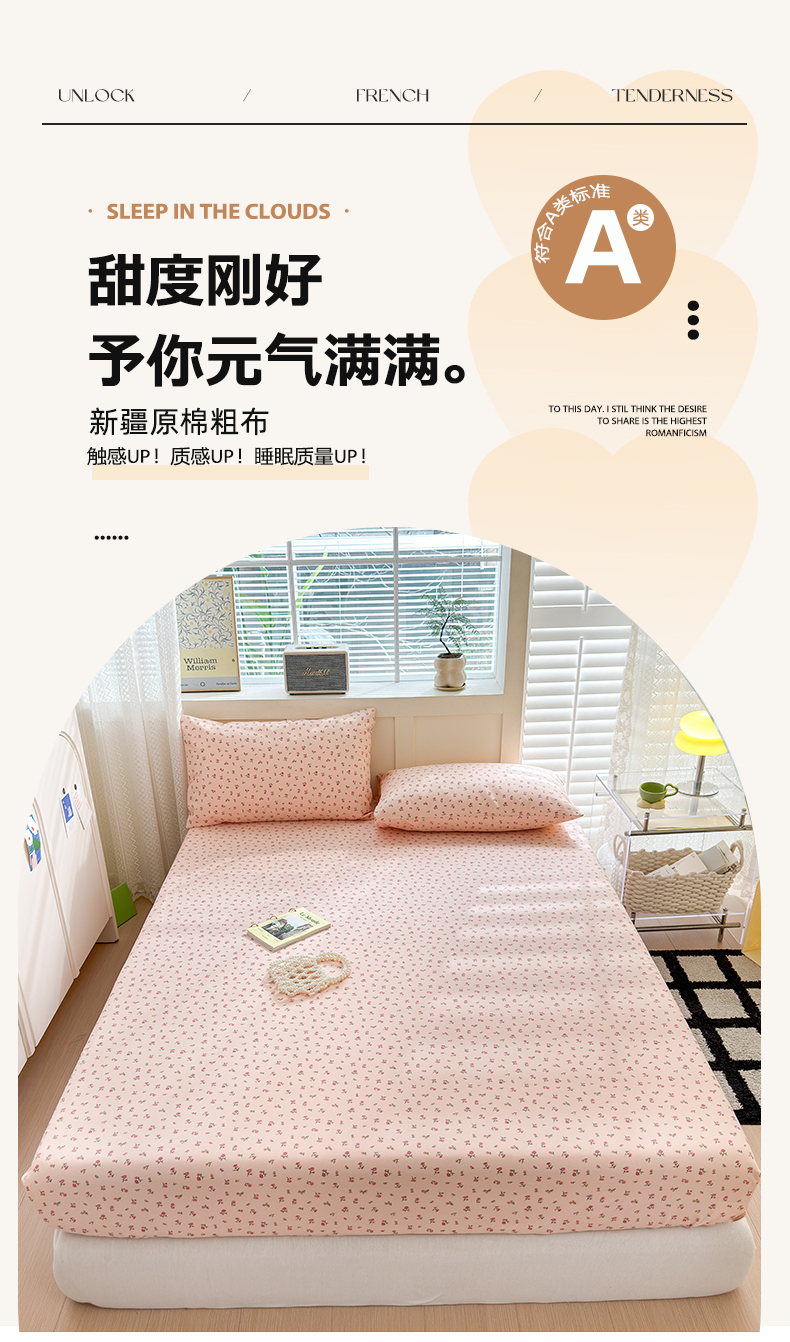• 91家纺网 家纺一手货源 找家纺 2025新款老粗布三件套-床笠款 粉玫瑰