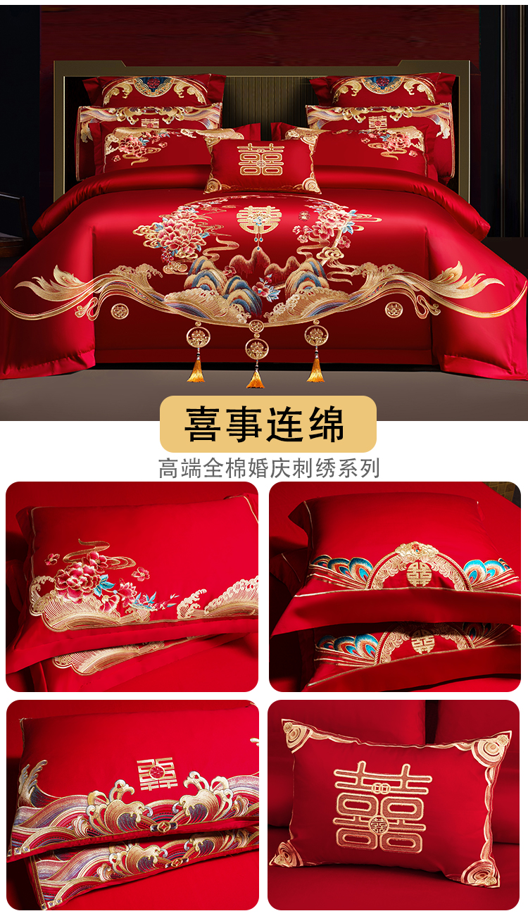 当前位置: 91家纺网 > 商品网购 > 床品套件 > 四件套 > 婚庆四件套 > (总)芊囍纺 2025新款婚庆全棉刺绣套件-喜事连绵