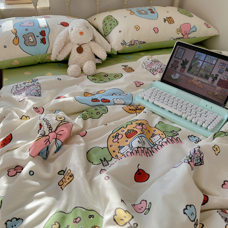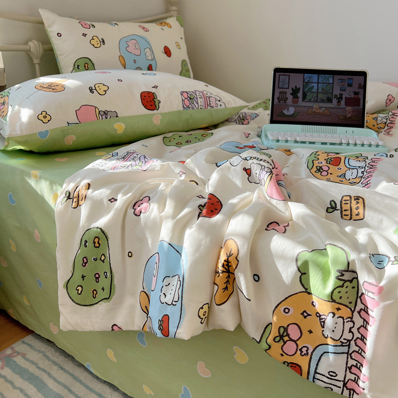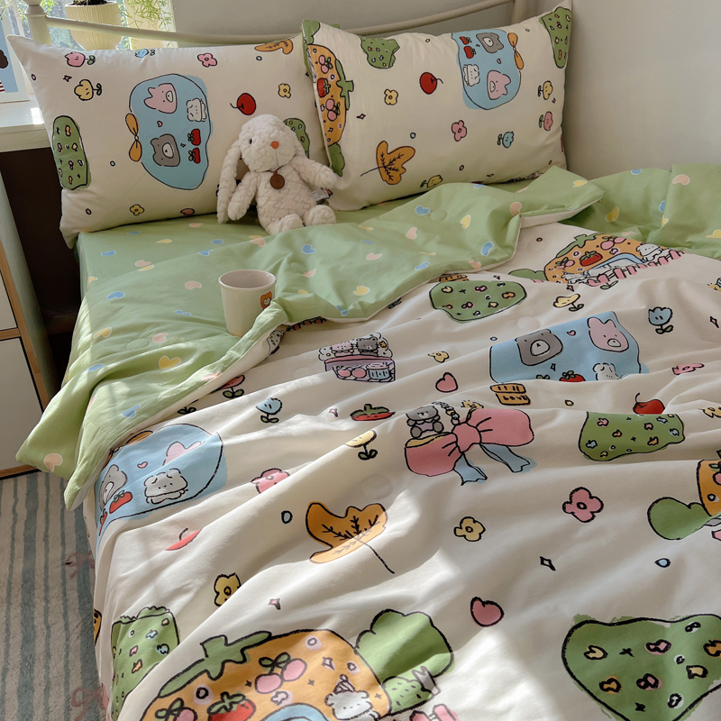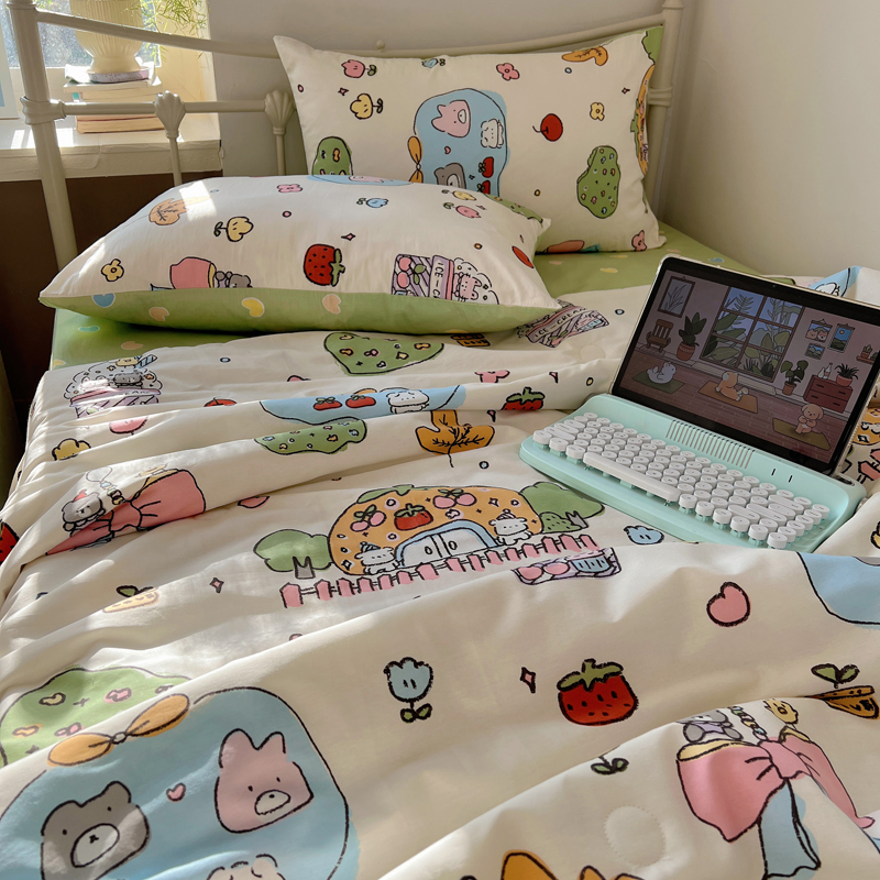 (总)桃喜 2026新款全棉混搭卡通印花学生三件套四件套,费尔岛蝴蝶结小狗,费尔岛小熊,可爱动物团,可爱小兔子,星星猫咪