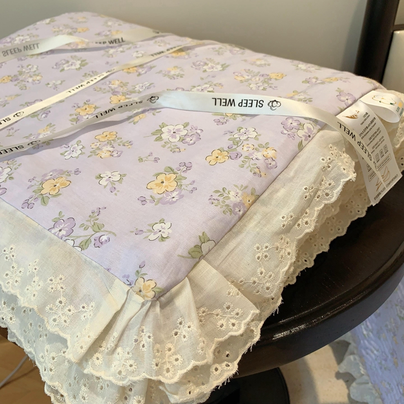 奈萝家纺 2025春夏新款全棉纯棉蕾丝花边款夏被夏凉被空调被 花语紫