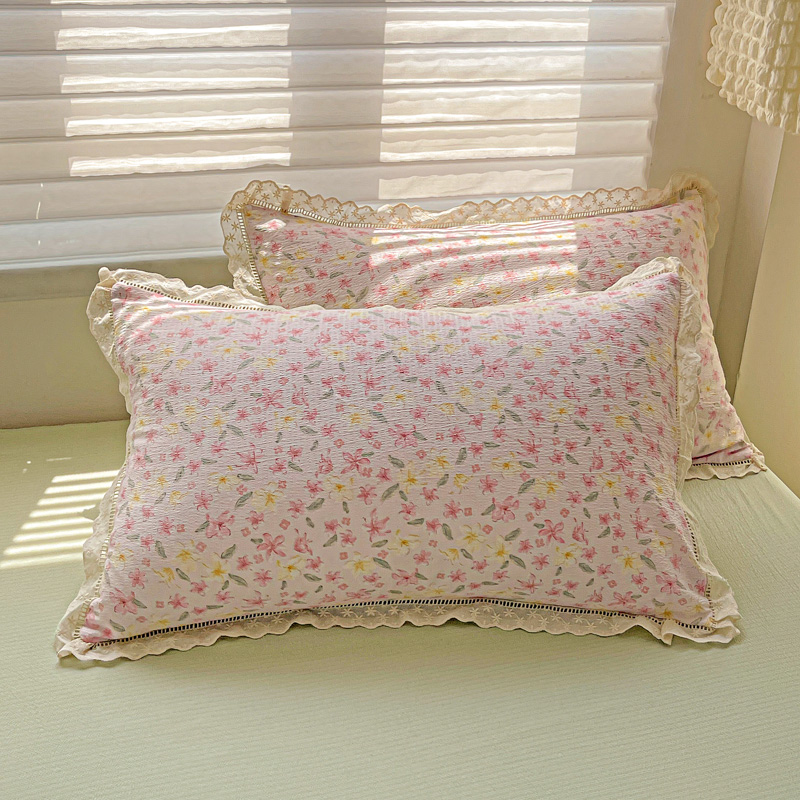 金梦拉家纺 2025新款提花纱布皱皱纱枕套(全棉镂空花边款) 梨落