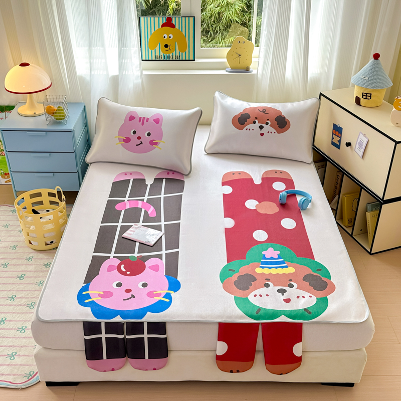一霖家纺 2025新款大版300D冰藤席席子凉席三件套 小浣熊