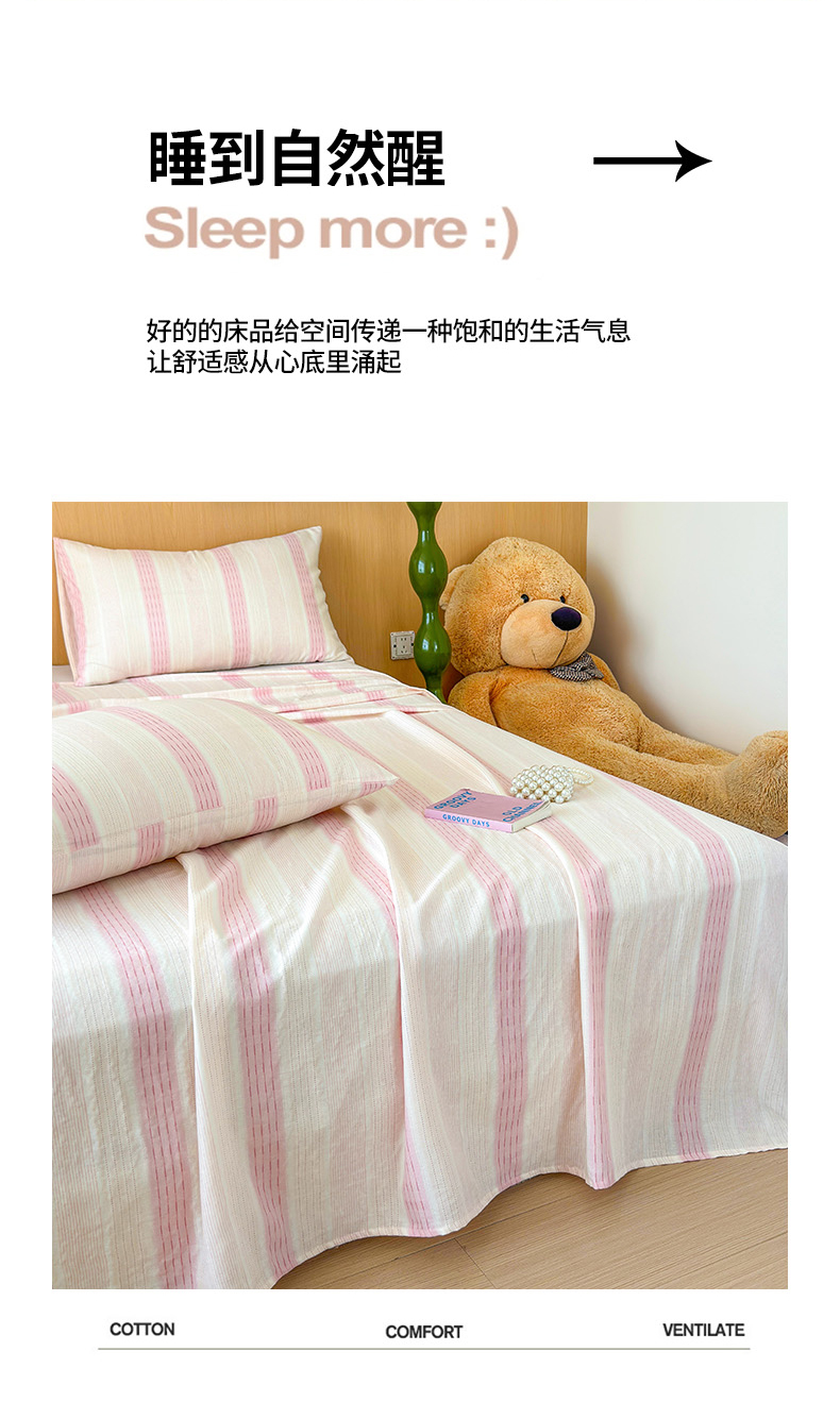 商品名称:感遇家纺 2025新款全棉双层纱单品床单床笠枕套-单床笠 简爱粉