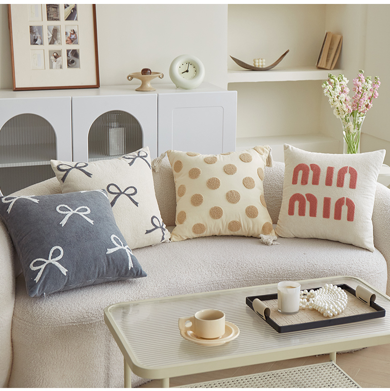 商品名称:乐坊 2025新款棉麻花式抱枕 流苏-米