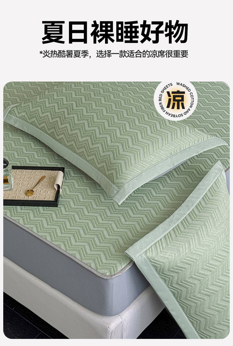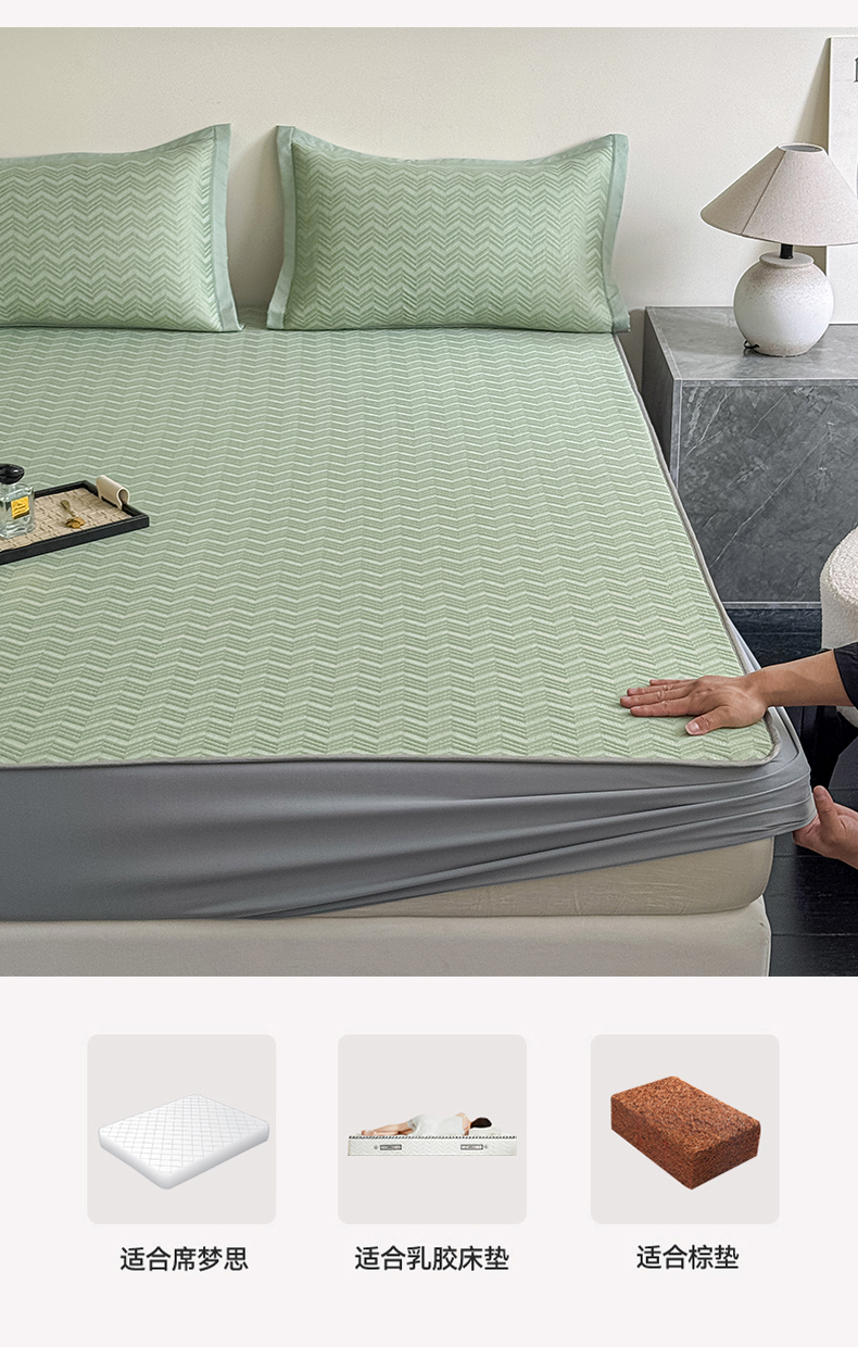 瑞兴纺 2025新款高分子PE软凉席绣花款床笠款 床笠款-风尚-绿