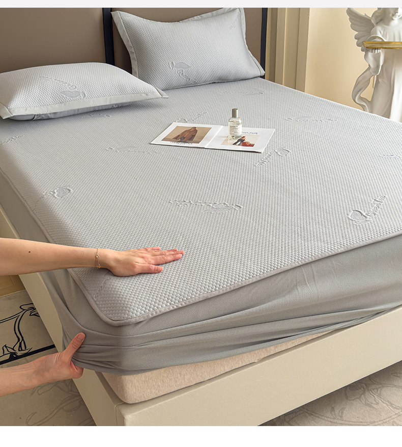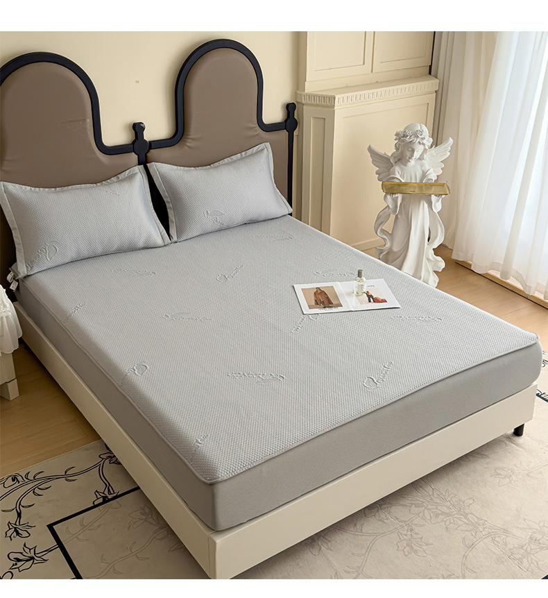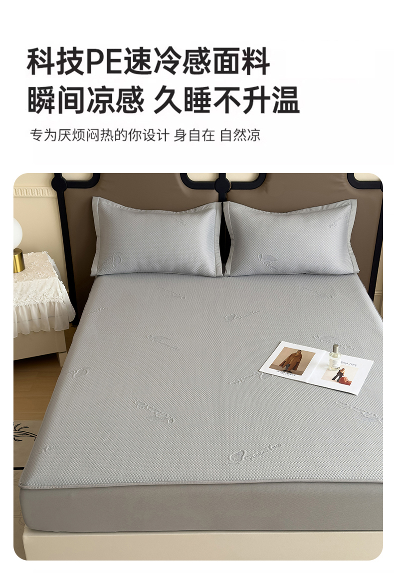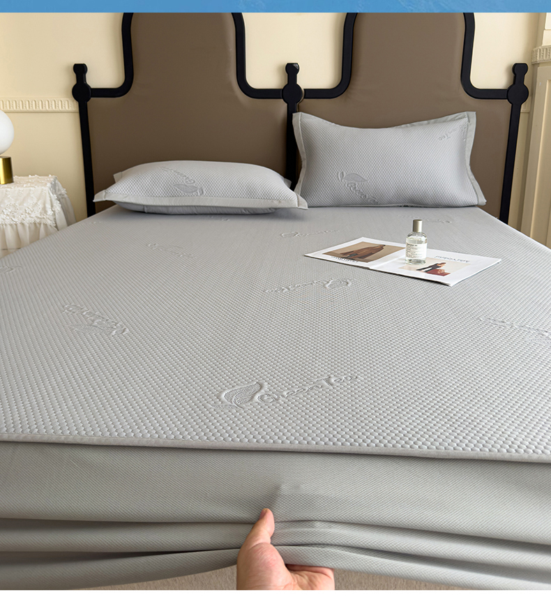 瑞兴纺 2025新款高分子PE软凉席绣花款床笠款 床笠款-沐夕-灰