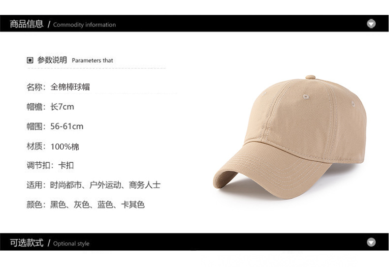 商品名称:良品汇馆 2025春夏新款日式无印全棉纯棉棒球帽良品情侣男女四季透气户外鸭舌帽防晒遮阳休闲 灰色