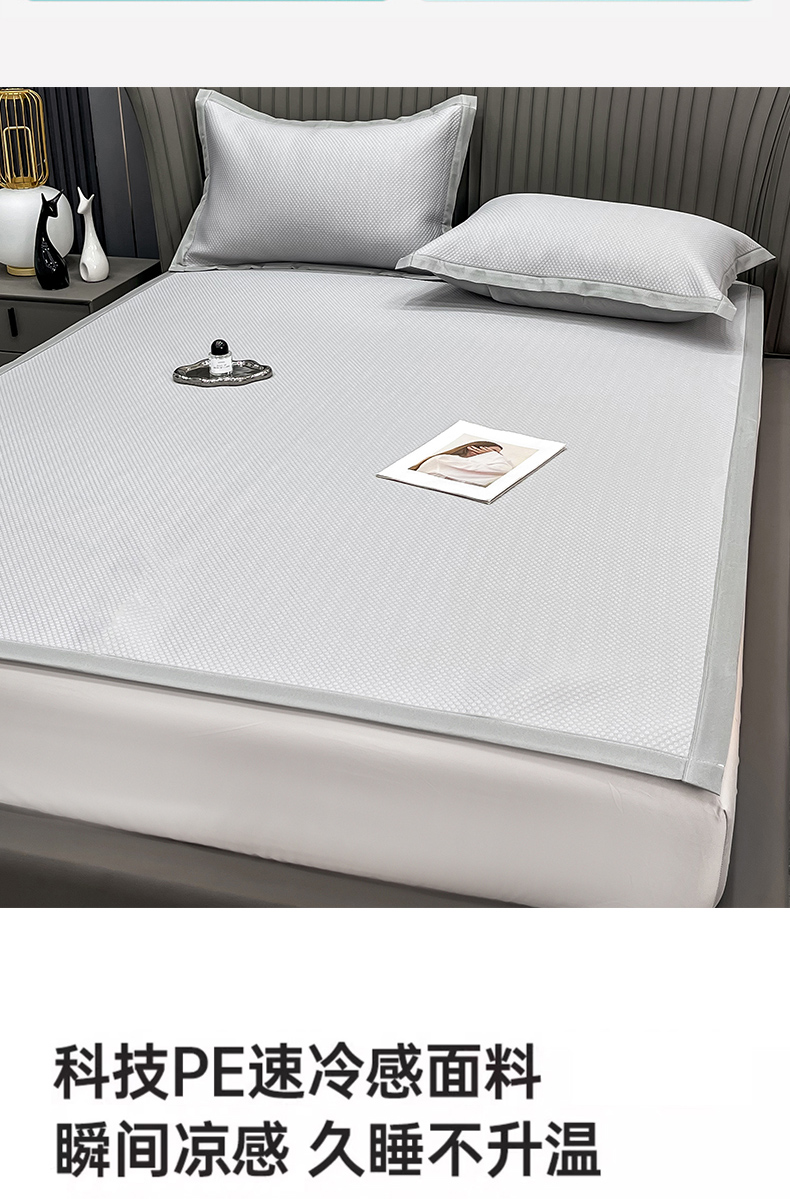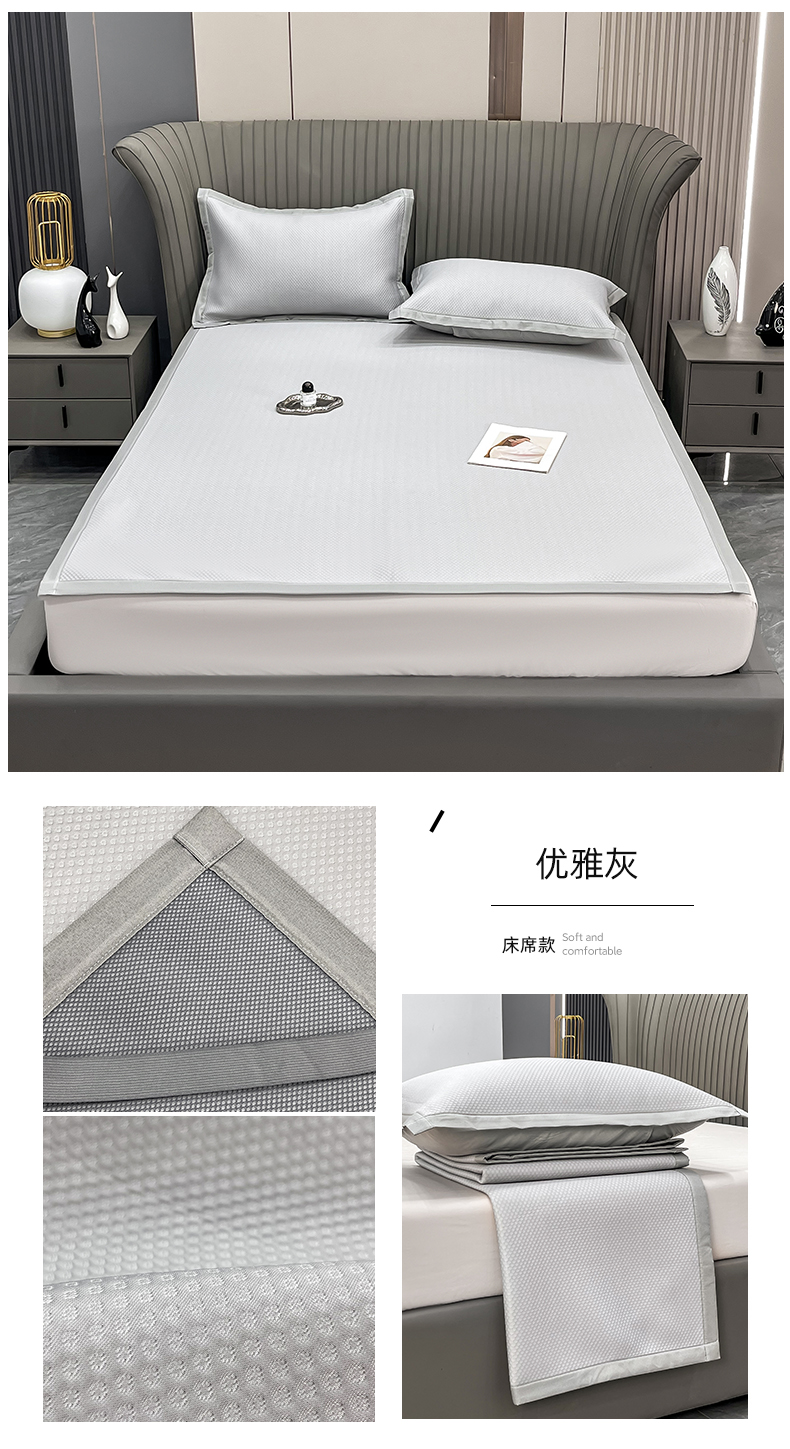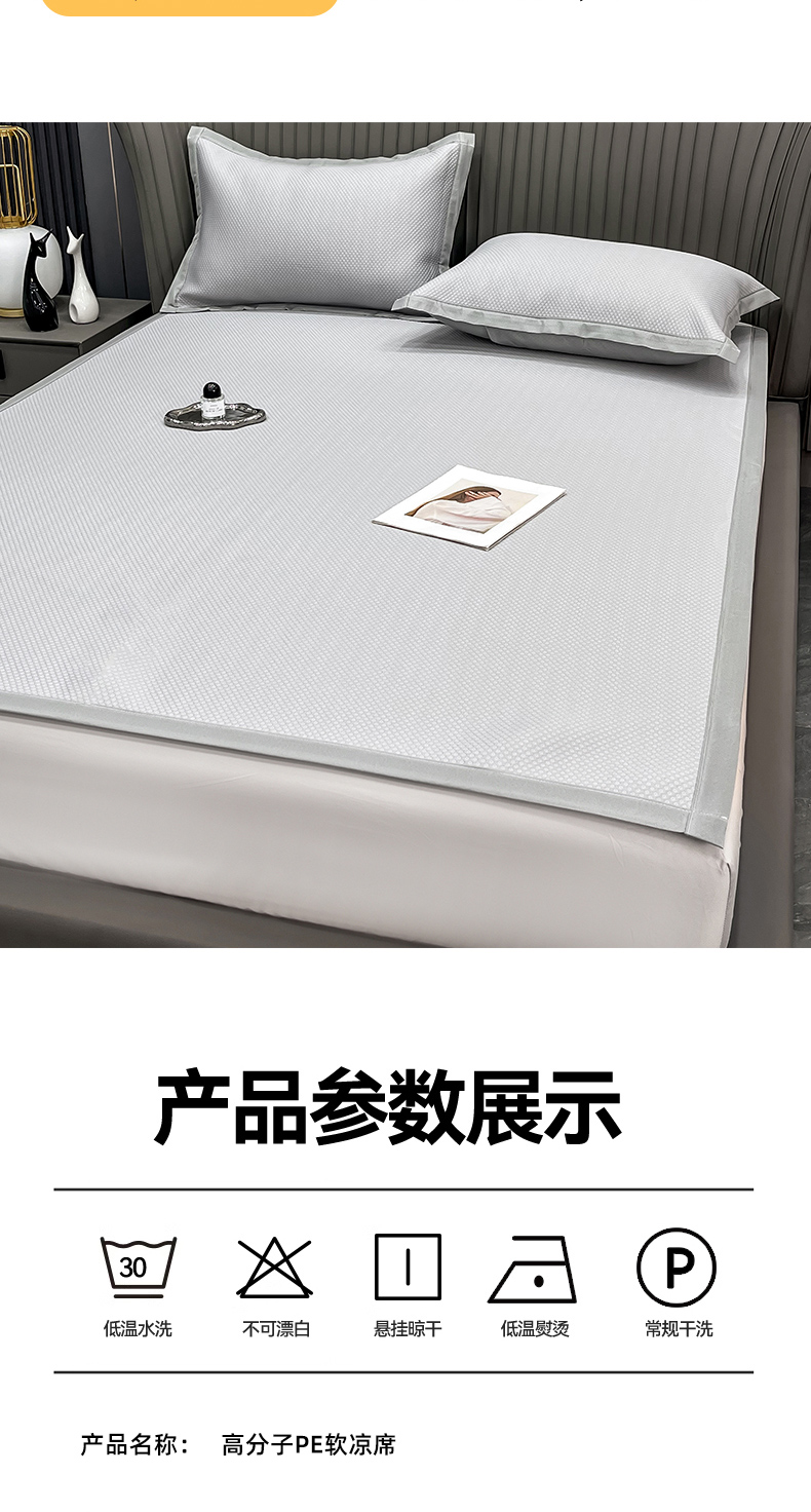 商品名称:瑞兴纺 2025新款高分子PE软凉席绣花款床单款 床单款-华夫格-灰