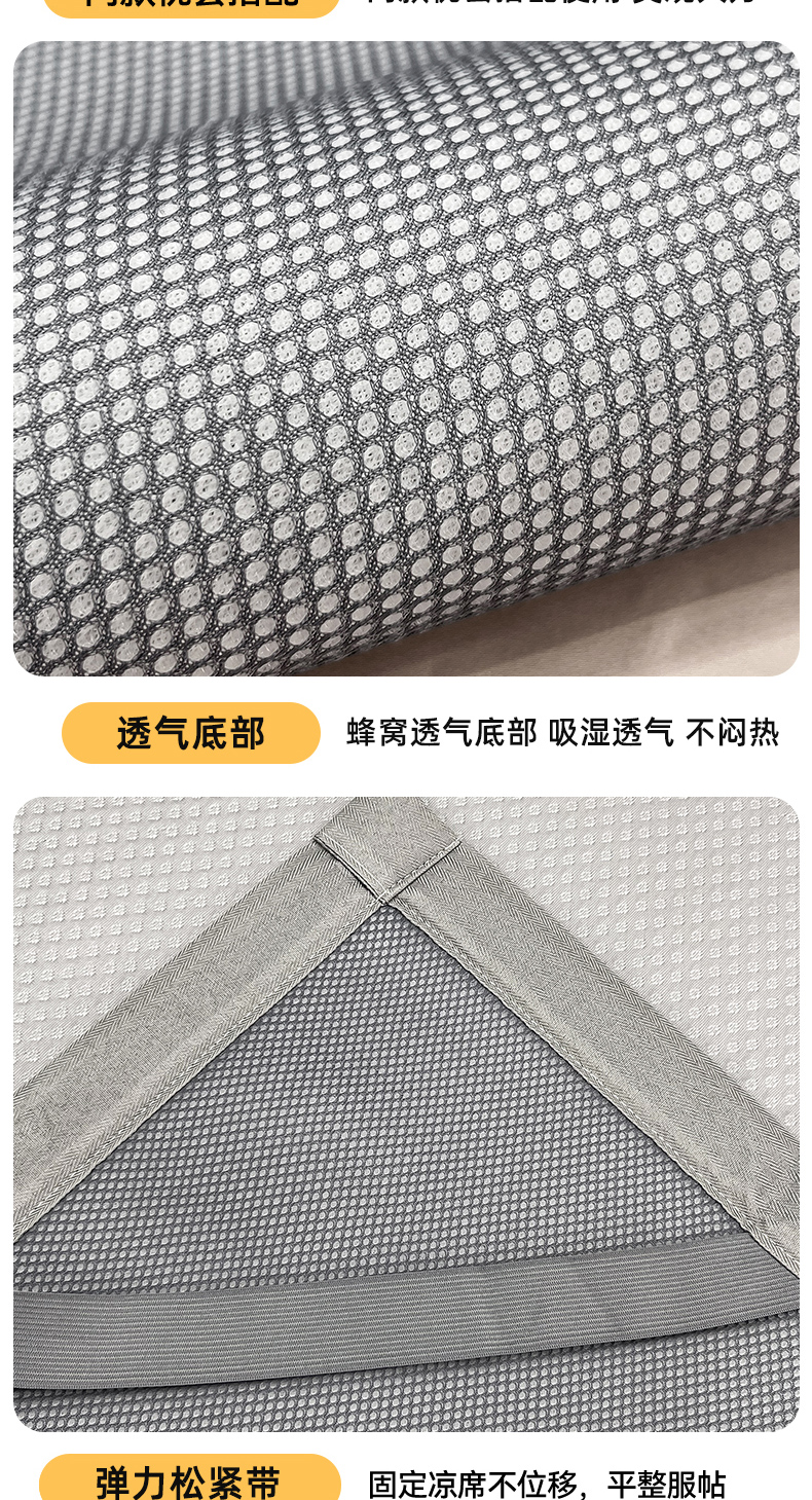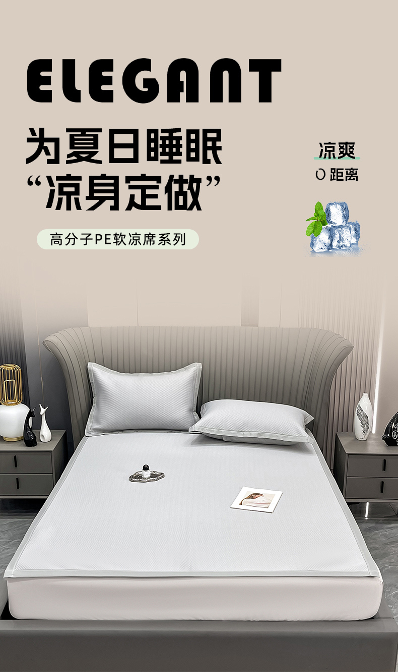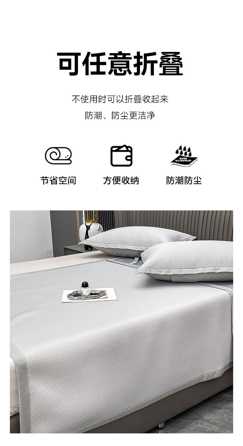 商品名称:瑞兴纺 2025新款高分子PE软凉席绣花款床单款 床单款-华夫格-灰