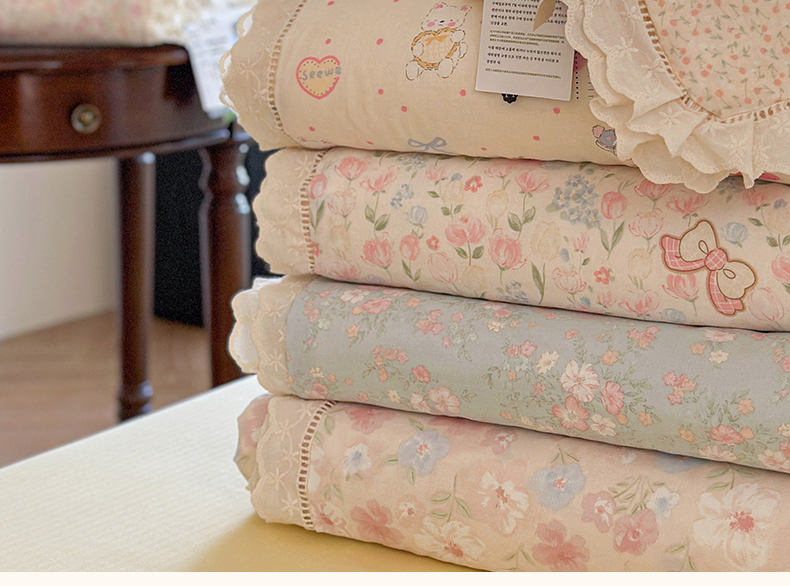 • 91家纺网 家纺一手货源 找家纺 (总)麦伦家居 2025多功能床品全棉纯棉A类有氧双层纱+豆豆绒四件套荷叶边系列,组合图仅供展示不可下单,星星人,童梦木马,糖炒栗子,花田粉兔,白月光,桃夭夭,豹纹猫咪,空谷幽兰,晚秋,花棠,莫奈花园,蒂芙尼-粉,青芜,花样年华,椿野