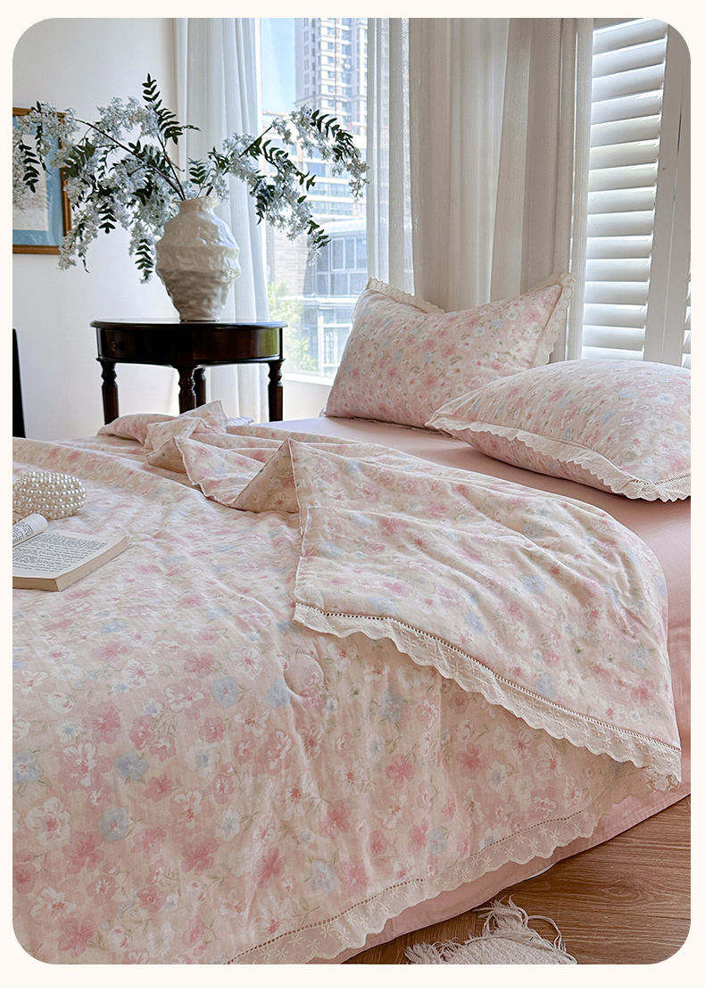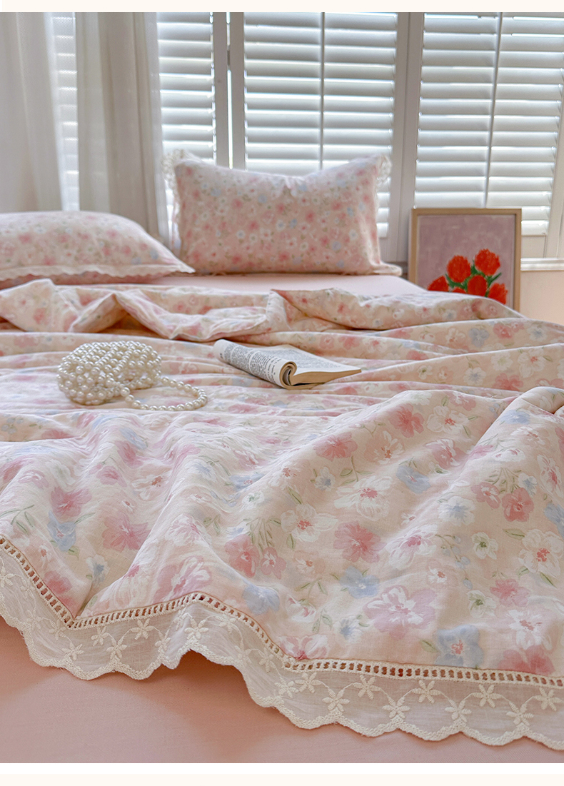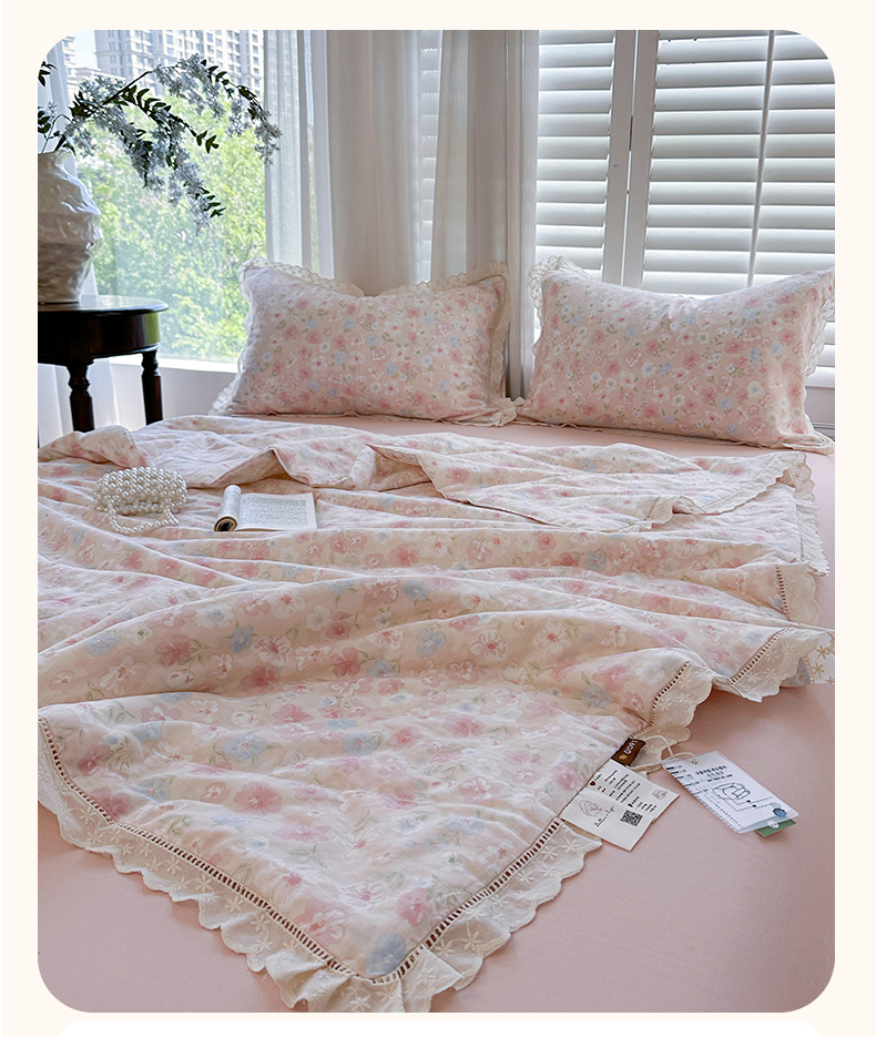 麦伦家居 2025新款全棉双层纱镂空花边夏被夏凉被空调被-系列二 夏被-花丛狗狗
